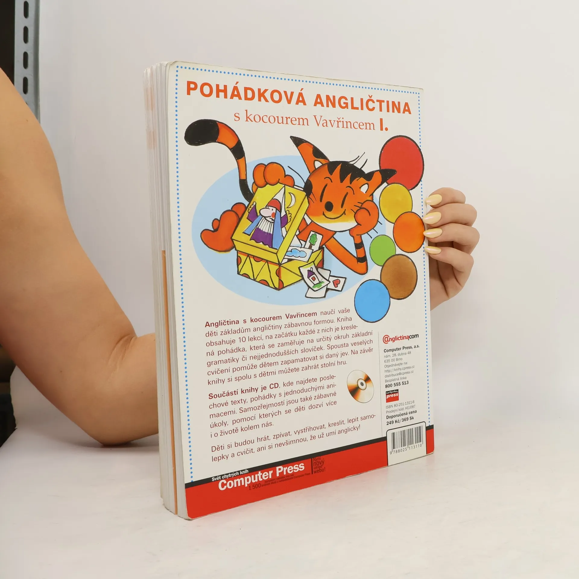 Pohádková angličtina s kocourem Vavřincem I. naučí vaše děti základům angličtiny zábavnou formou. Kniha je určena pro děti od 4 do 7 let. První díl učebnice obsahuje 10 lekcí, na začátku každé z nich je kreslená pohádka, která se zaměřuje na určitý okruh základní gramatiky či nejjednodušších slovíček. Spousta veselých cvičení pomůže dětem zapamatovat si daný jev. Na závěr knihy si spolu s dětmi můžete zahrát stolní hru. Samozřejmostí jsou také zábavné úkoly, pomocí kterých se děti dozví více i o životě kolem nás a naučí se pracovat s počítačem. Děti si budou hrát, zpívat, vystřihovat, kreslit, lepit samolepky a cvičit, ani si nevšimnou, že už umí anglicky!