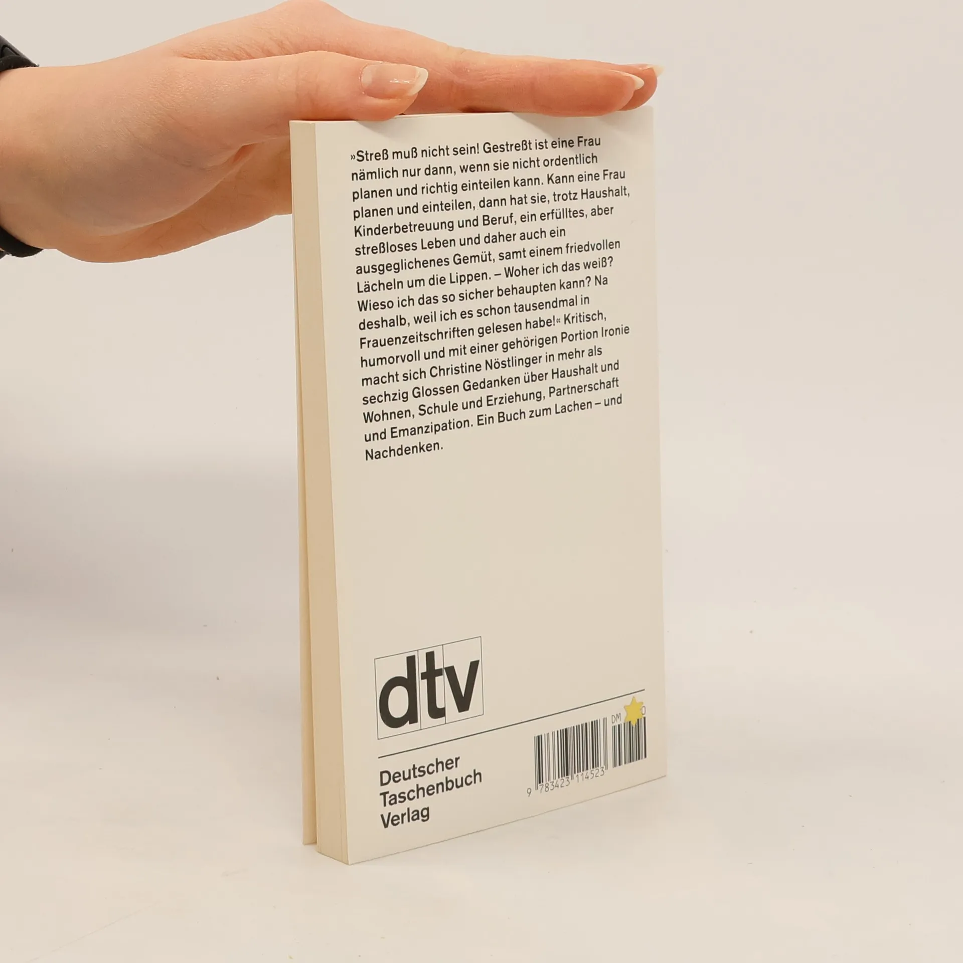 "Stress muss nicht sein! Gestresst ist eine Frau nämlich nur dann, wenn sie nicht ordentlich planen und richtig einteilen kann. Kann eine Frau planen und einteilen, dann hat sie, trotz Haushalt, Kinderbetreuung und Beruf, ein erfülltes, aber stressloses Leben und daher auch ein ausgeglichenes Gemüt, samt einem friedvollen Lächeln um die Lippen. - Woher ich das weiß? Wieso ich das so sicher behaupten kann? Na deshalb, weil ich es schon tausendmal in Frauenzeitschriften gelesen habe!" Kritisch, humorvoll und mit einer gehörigen Portion Ironie macht sich Christine Nöstlinger in mehr als sechzig Glossen Gedanken über Haushalt und Wohnen, Schule und Erziehung, Partnerschaft und Emanzipation. Ein Buch zum Lachen - und Nachdenken.