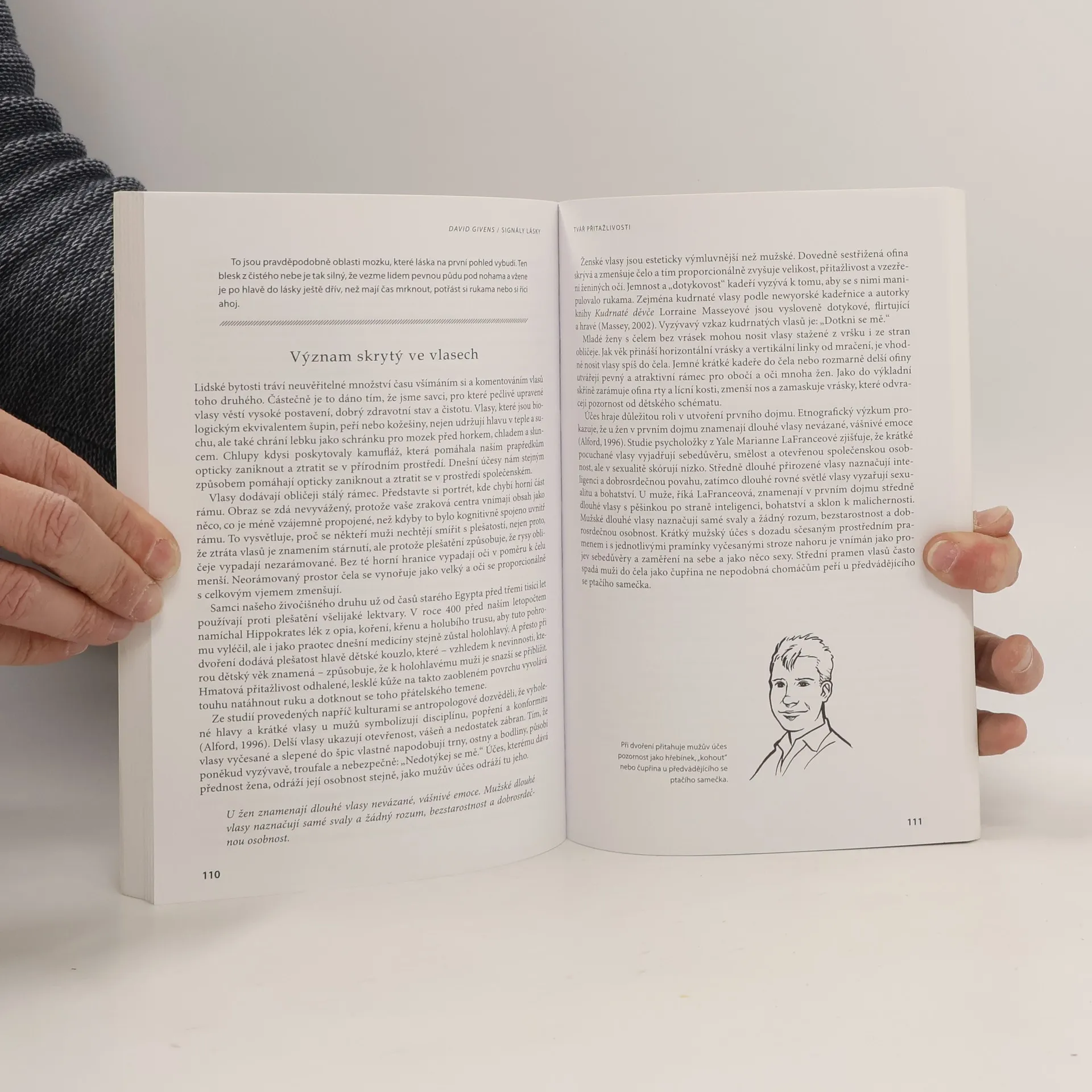 Signály lásky nám naznačují, jak se nejlépe upřeně dívat, jak číst význam pohledů přes celou místnost, jak sedět, stát, srovnat se do jedné linie, chodit, jak se oblékat, a jak pozvednout sklenku a připít si na to, že se účastníme toho fascinujícího dobrodružství, jímž je nalezení, získání a udržení životního partnera. Když budete znát „slovník“ signálů lásky, poskytne vám to jistou výhodu. Naučíte se, jak číst nevyslovené motivy, emoce a city. Čím více toho budete vědět o neverbálních „jazykových obratech“ přitažlivosti, tím pravděpodobněji a o to snáze naleznete milujícího a trvalého partnera. .