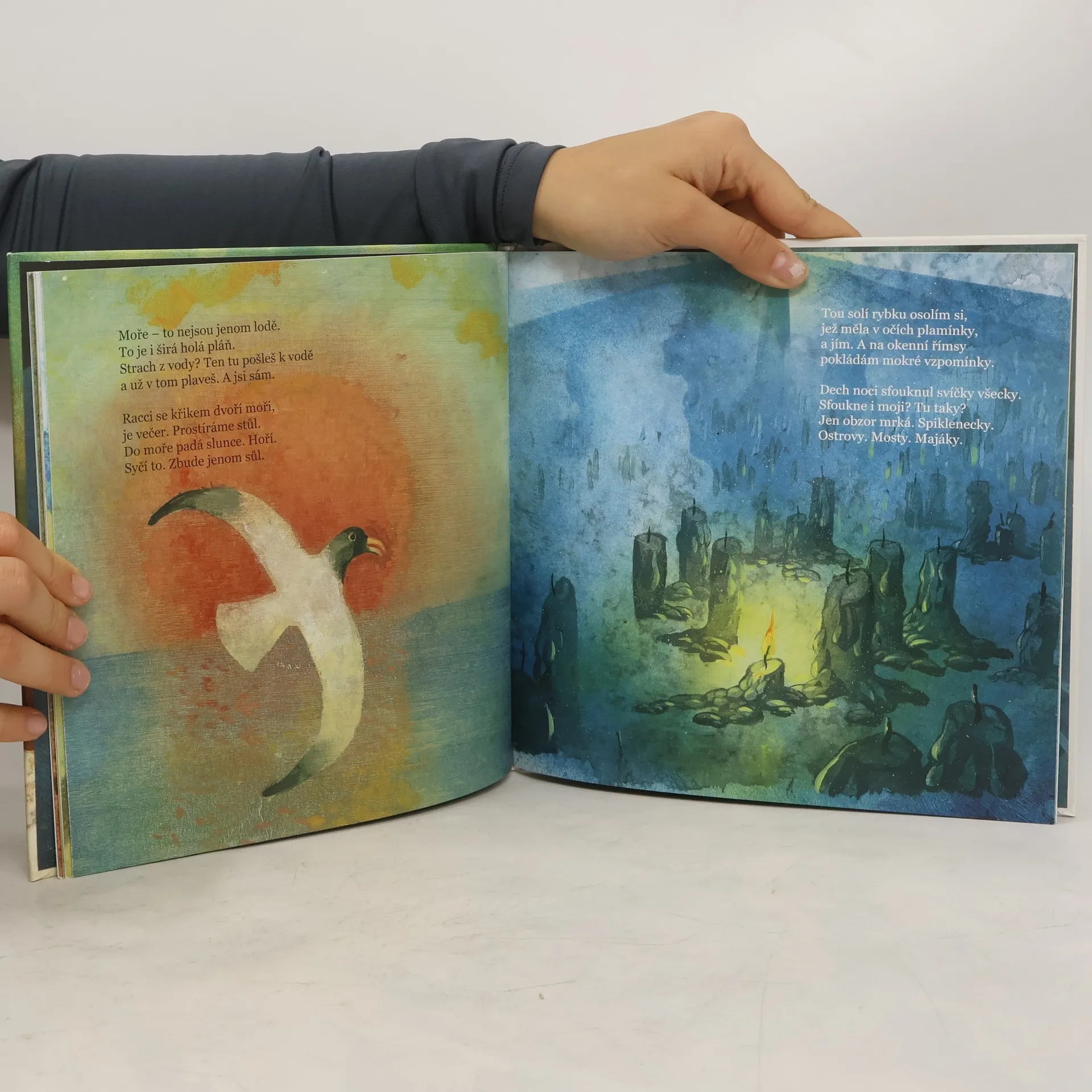 Nová kniha veršů originálního básníka Radka Malého, který získal za sbírku Listonoš vítr cenu Magnesia Litera. Tentokrát se autor věnuje tajemstvím moře, jeho krutosti, nádheře i velkoleposti. Jeho verše jako v případě minulé sbírky doslova podkreslil, dotvořil a ozdobil malíř a ilustrátor Pavel Čech. Vychází tak nádherná knížka vonící široširými dálkami a oceánem – nádherný dárek pro všechny milovníky moře, dobrodružství a poezie.