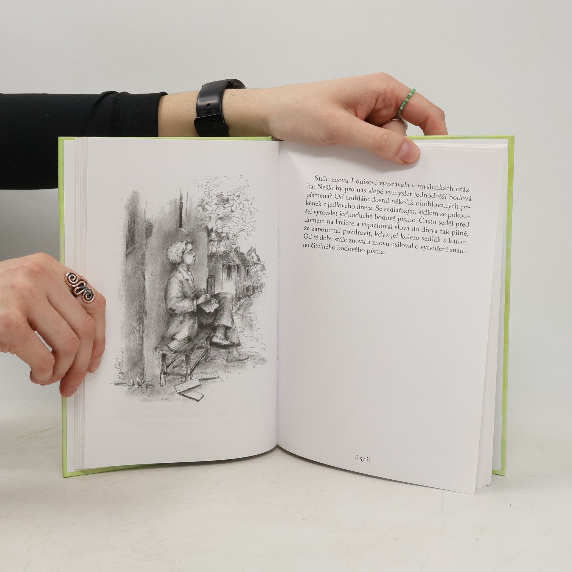 Louis Braille jako malý chlapec oslepl a ve svých šestnácti letech pak vynalezl slepecké písmo. Jakob Streit vykresluje pohnutý životní příběh tohoto chlapce a muže, který je díky své srdečnosti, radosti ze života a rozhodnosti pro všechny kolem sebe darem. Nakonec se mu po vytrvalém úsilí podaří přinést ten největší sar pro všechny slepce světa - písmo, které mohou číst svýma rukama. Kniha oblíbeného autora literatury pro děti a mládež upoutá především mladé čtenáře. Svou atmosférou a detaily ze života Louise Braille si ale získala i srdce mnoha dospělých čtenářů. Vyšla již v řadě jazyků i jako autokniha.