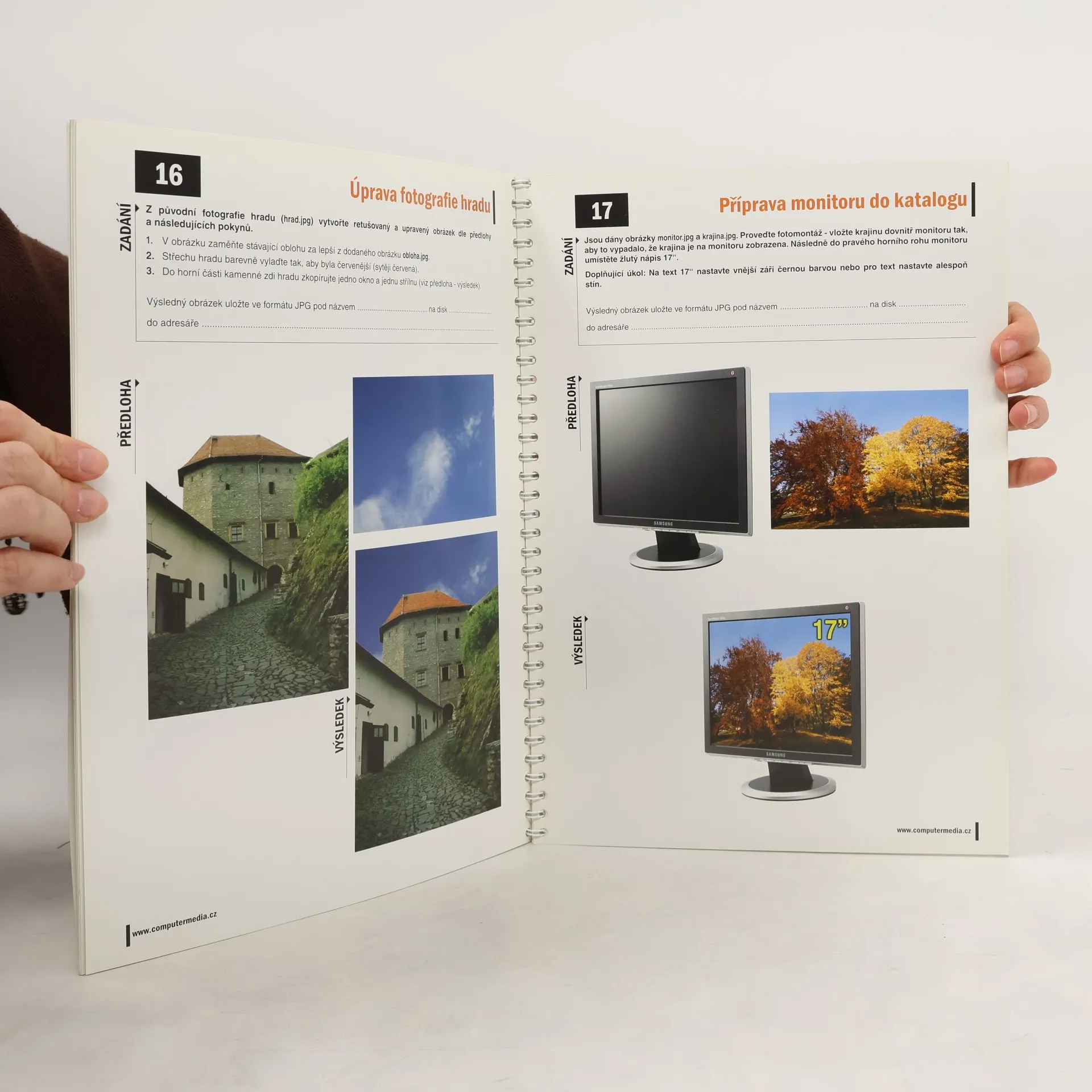 Sada obsahuje 50 řešených příkladů včetně všech podkladů, které jsou potřeba k úspěšnému vyřešení. Příklady jsou rozděleny následovně: první 3 příklady jsou čistě teoretické, dalších 22 příkladů je určeno pro procvičení rastrové grafiky a zbylých 25 příkladů pak slouží k procvičení vektorové počítačové grafiky.