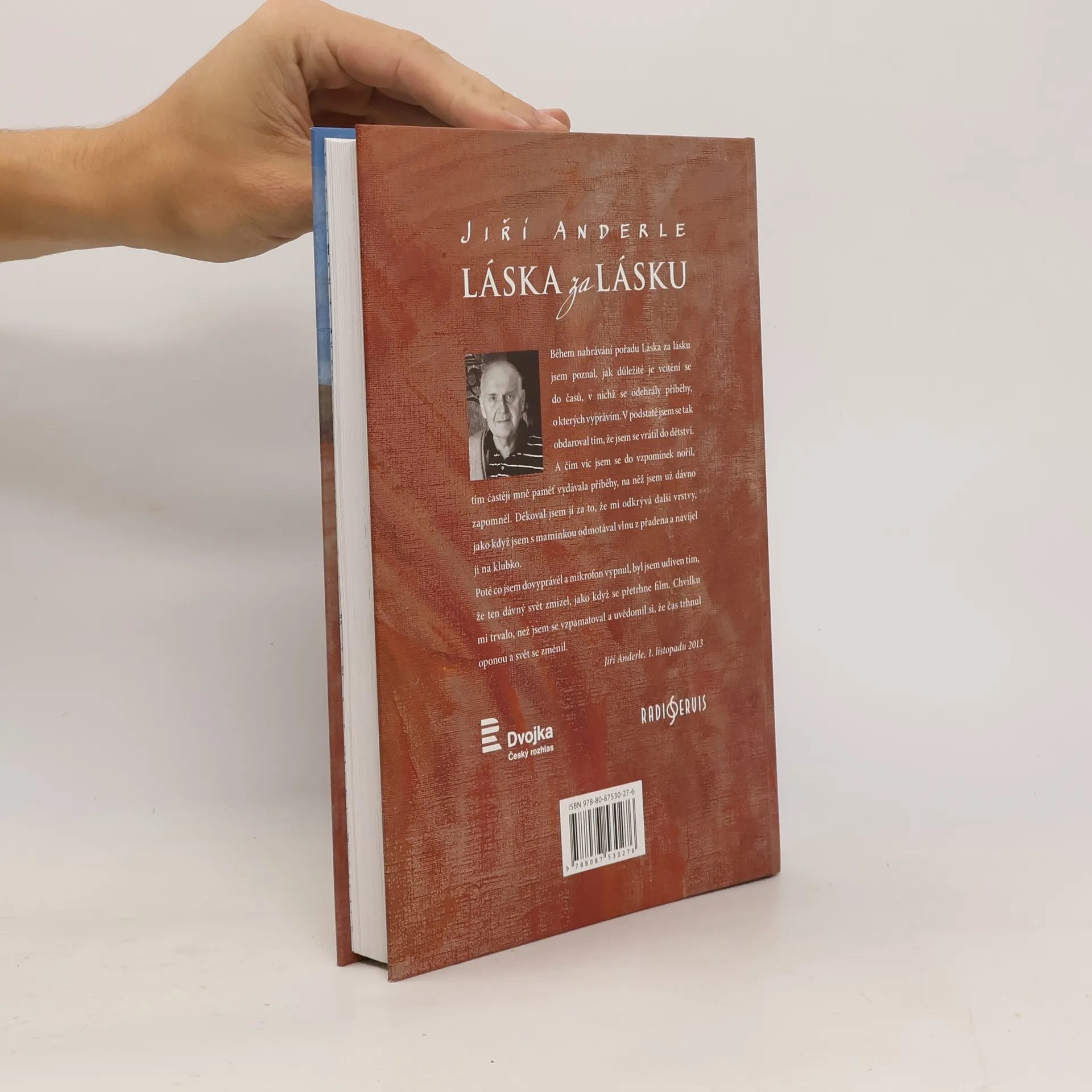 Knižní podoba rozhlasového pořadu Láska za lásku, vysílaného od roku 1997, který Jiří Anderle spolu se svým rozhlasovým kolegou Vladem Príkazským daroval svým posluchačům. Vzpomínky akademického malíře a grafika, které dosud vyšly na dvou CD, vydává Radioservis knižně s exklusivním obrazovým doprovodem. Vyprávění o výtvarníkově dětství, které kouzlem důvěrně známé, leč neopakovatelné všednodennosti upoutá každého čtenáře, citlivě doplňují malířovy nové ilustrace.