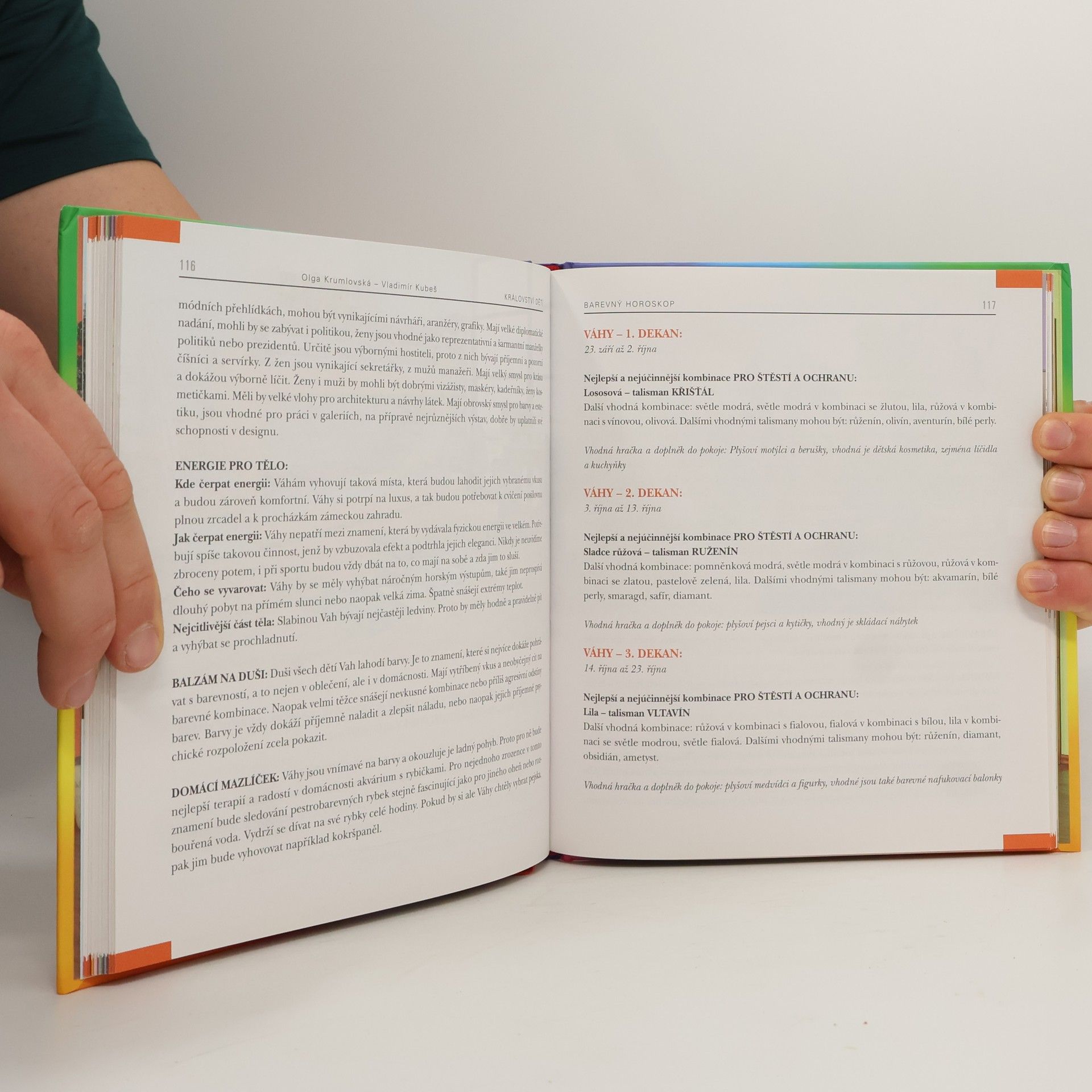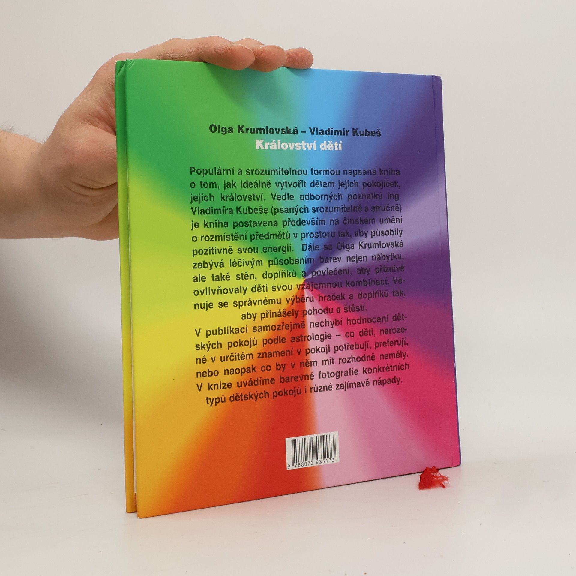 Populární a srozumitelnou formou napsaná kniha o tom, jak ideálně vytvořit dětem jejich království. Vedle odborných poznatků ing. Vladimíra Kubeše (psaných srozumitelně a stručně) je kniha postavena především na kouzelném čínském umění feng-shui (neboli rozmístění předmětů v prostoru tak, aby působily pozitivně svou energií). Dále se Olga Krumlovská zabývá léčivým působením barev nejen nábytku, ale také stěn, doplňků a povlečení tak, aby působily svou vzájemnou kombinací příznivě. Věnuje se správnému výběru hraček a doplňků tak, aby přinášely pohodu a štěstí. V publikaci samozřejmě nechybí hodnocení dětských pokojů podle astrologie – co které znamení v pokoji potřebuje, preferuje, nebo naopak by mít rozhodně nemělo. V knize nechybí barevné fotografie konkrétních typů dětského pokoje i různé zajímavé nápady.