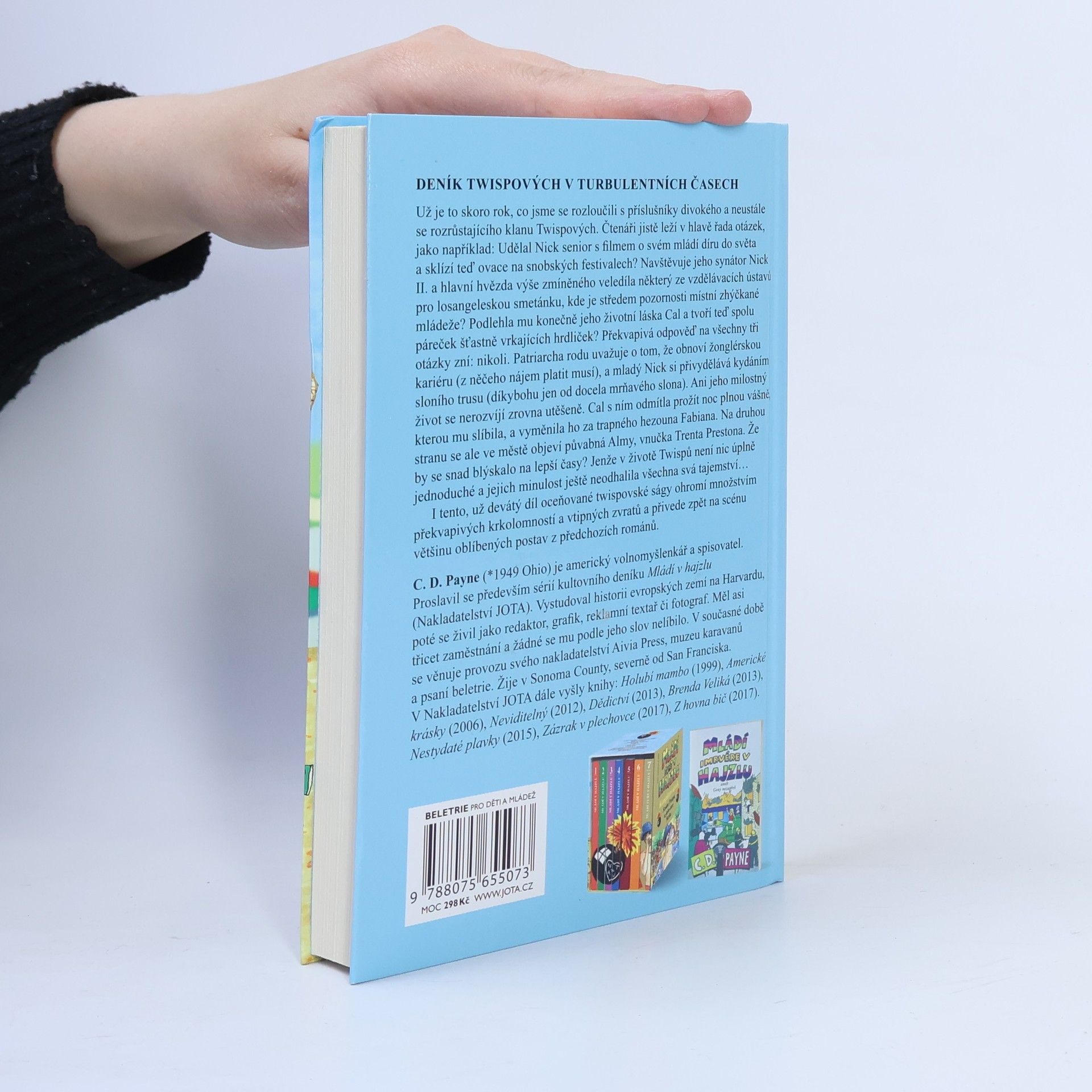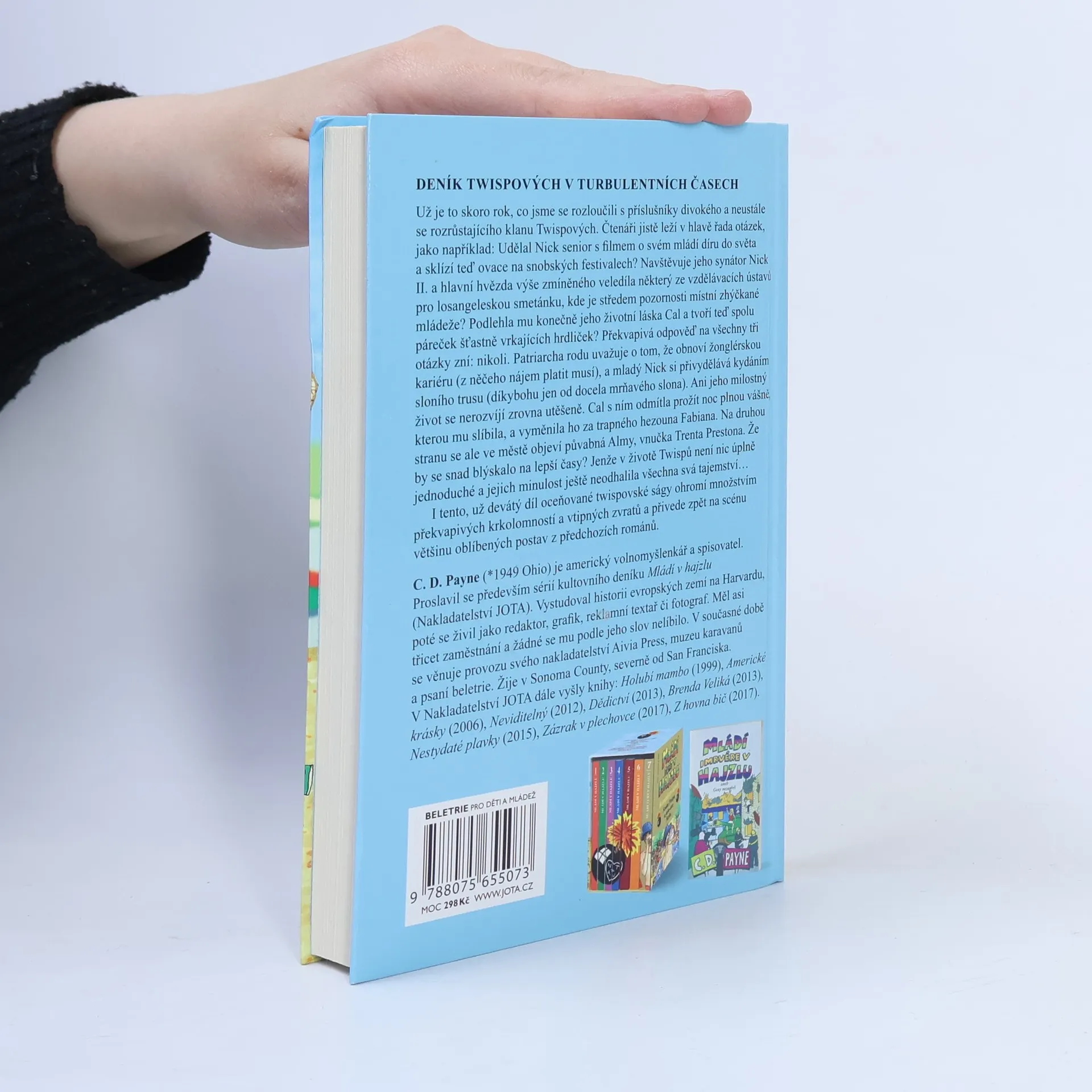 Divoká jízda Nicka Twispa a jeho rodiny pokračuje, držte si klobouky jedeme z kopce! Už je to skoro rok, co jsme se rozloučili s příslušníky divokého a neustále se rozrůstajícího klanu Twispových. Jistě vám leží v hlavě řada otázek jako například: Udělal Nick senior s filmem o svém mládí díru do světa a sklízí teď ovace na snobských festivalech? Navštěvuje jeho synátor Nick II. a hlavní hvězda výše zmíněného veledíla některý ze vzdělávacích ústavů pro losangeleskou smetánku, kde je středem pozornosti místní zhýčkané mládeže? Podlehla mu konečně jeho životní láska Cal a tvoří teď spolu páreček šťastně vrkajících hrdliček? Překvapivá odpověď na všechny tři otázky zní: nikoli. Patriarcha rodu uvažuje o tom, že obnoví žonglérskou kariéru (z něčeho nájem platit musí) a mladý Nick si přivydělává kydáním sloního trusu (díkybohu jen od docela mrňavého slona). Ani jeho milostný život se nerozvíjí zrovna utěšeně. Cal s ním odmítla prožít noc plnou vášně, kterou mu slíbila, a vyměnila ho za trapného hezouna Fabiana. Na druhou stranu se ale ve městě objeví půvabná Almy, vnučka Trenta Prestona. Že by se snad blýskalo na lepší časy? Jenže v životě Twispů není nic úplně jednoduché a jejich minulost ještě neodhalila všechna svá tajemství… I tento, už devátý díl oceňované twispovské ságy ohromí množstvím překvapivých krkolomností a vtipných zvratů a přivede zpět na scénu většinu oblíbených postav z předchozích románů.