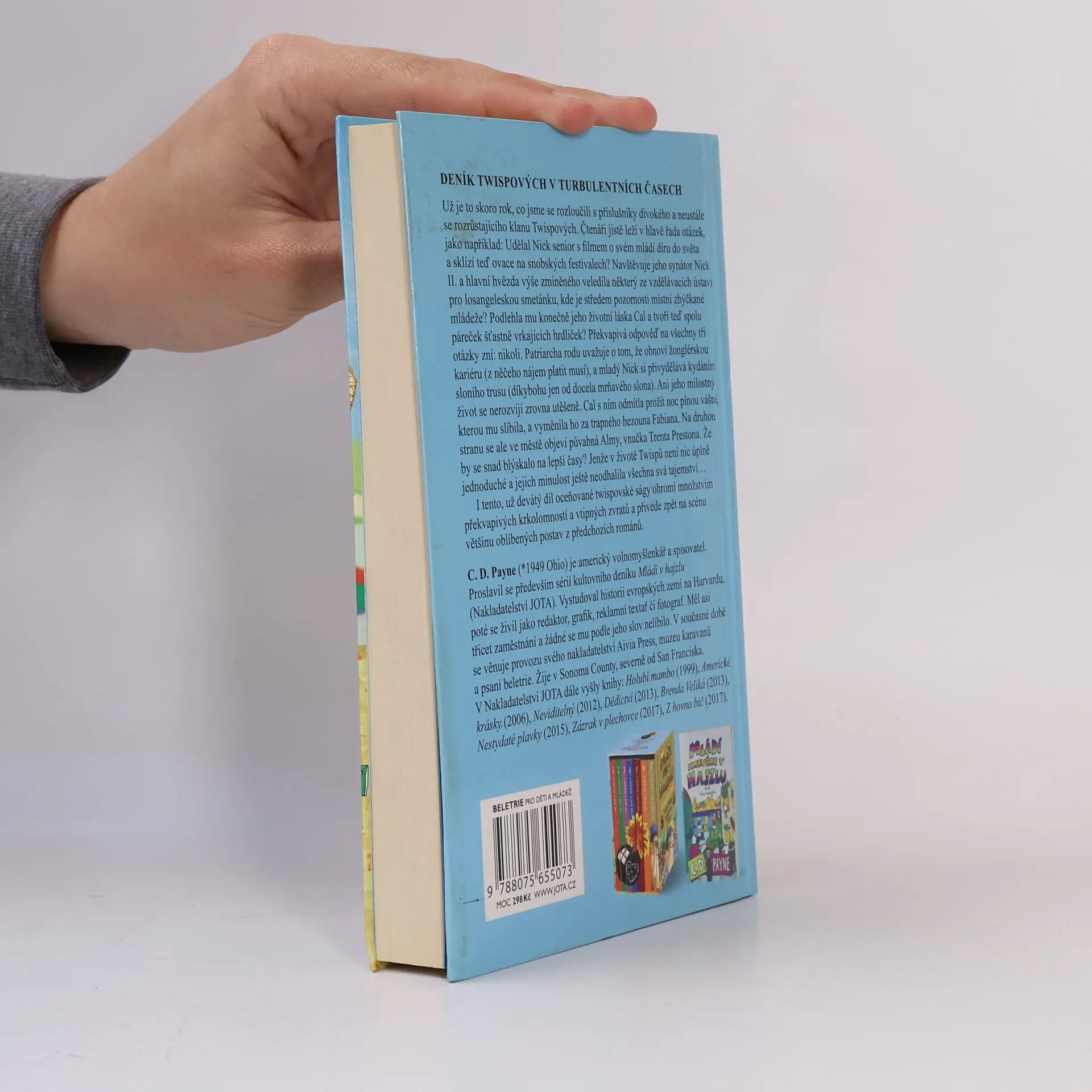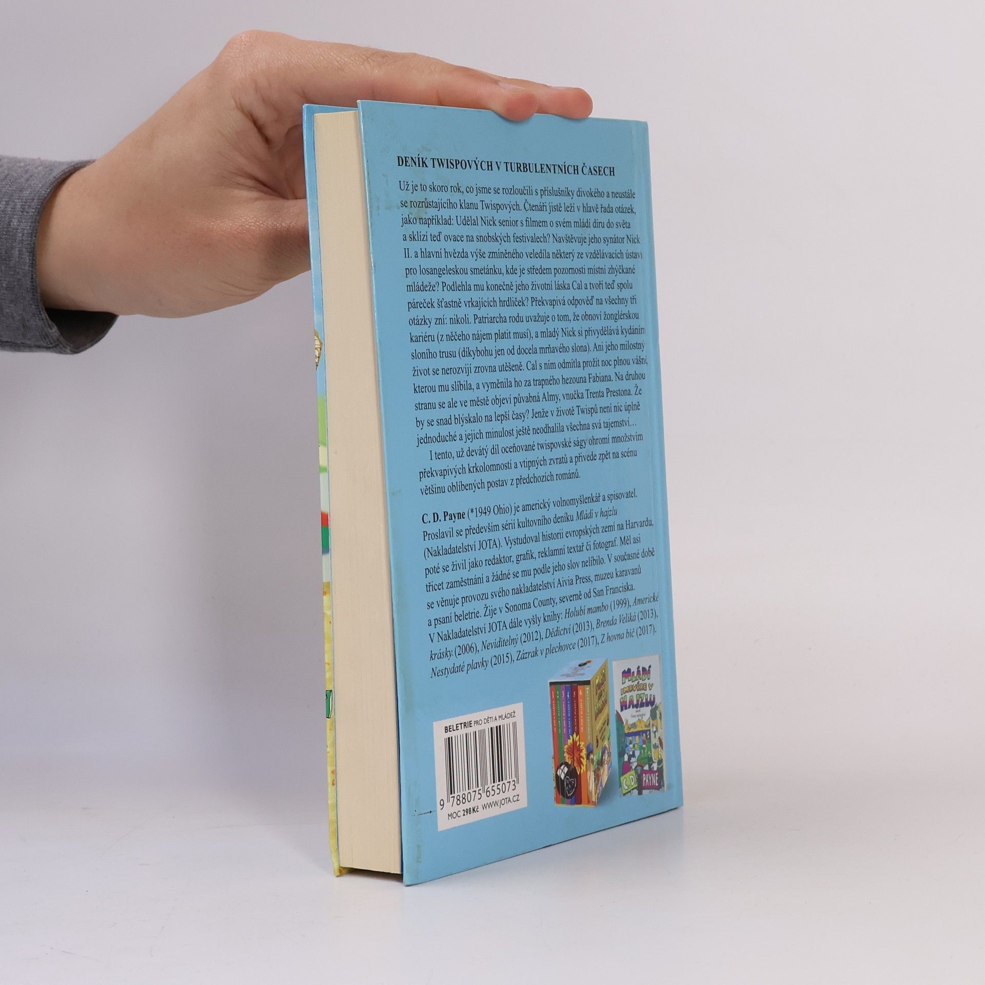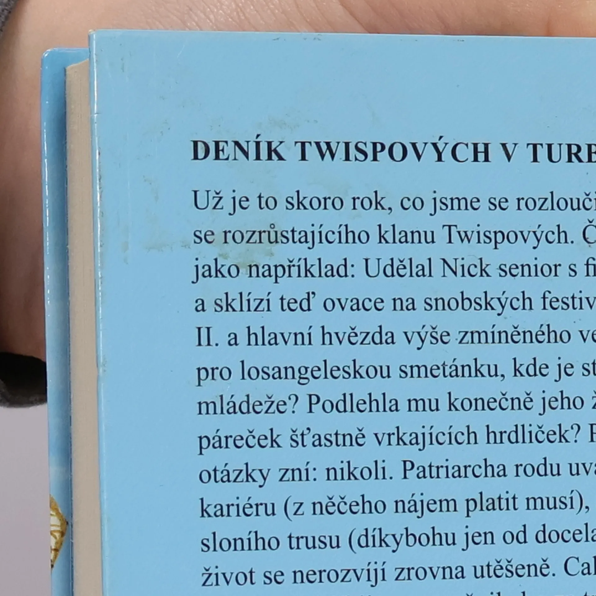 Divoká jízda Nicka Twispa a jeho rodiny pokračuje, držte si klobouky jedeme z kopce! Už je to skoro rok, co jsme se rozloučili s příslušníky divokého a neustále se rozrůstajícího klanu Twispových. Jistě vám leží v hlavě řada otázek jako například: Udělal Nick senior s filmem o svém mládí díru do světa a sklízí teď ovace na snobských festivalech? Navštěvuje jeho synátor Nick II. a hlavní hvězda výše zmíněného veledíla některý ze vzdělávacích ústavů pro losangeleskou smetánku, kde je středem pozornosti místní zhýčkané mládeže? Podlehla mu konečně jeho životní láska Cal a tvoří teď spolu páreček šťastně vrkajících hrdliček? Překvapivá odpověď na všechny tři otázky zní: nikoli. Patriarcha rodu uvažuje o tom, že obnoví žonglérskou kariéru (z něčeho nájem platit musí) a mladý Nick si přivydělává kydáním sloního trusu (díkybohu jen od docela mrňavého slona). Ani jeho milostný život se nerozvíjí zrovna utěšeně. Cal s ním odmítla prožít noc plnou vášně, kterou mu slíbila, a vyměnila ho za trapného hezouna Fabiana. Na druhou stranu se ale ve městě objeví půvabná Almy, vnučka Trenta Prestona. Že by se snad blýskalo na lepší časy? Jenže v životě Twispů není nic úplně jednoduché a jejich minulost ještě neodhalila všechna svá tajemství… I tento, už devátý díl oceňované twispovské ságy ohromí množstvím překvapivých krkolomností a vtipných zvratů a přivede zpět na scénu většinu oblíbených postav z předchozích románů.