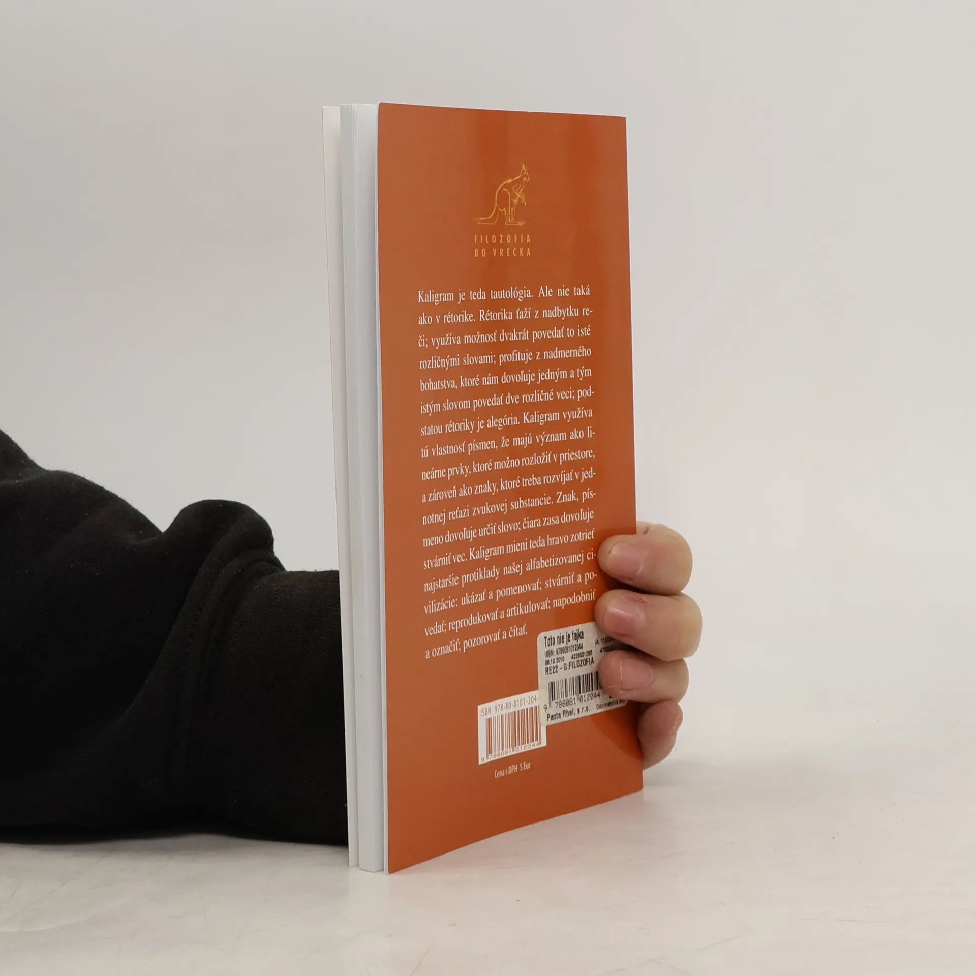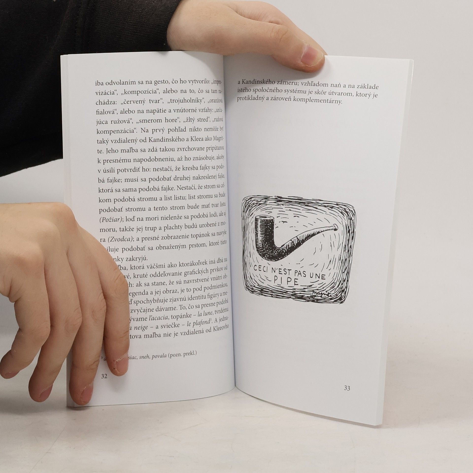 V Magrittovom obraze, kde je fajka a pod ňou nápis Toto nie je fajka, našiel autor knižky spochybnenie princípu napodobňovania, ktorý dlho vládol v západnom maliarstve a nielen tam. V Magrittovom maliarstve sa podľa Foucaulta dostáva do obehu obraz bez vonkajšieho vzoru, bez imitácie niečoho daného. Takýto obraz Platón nazval simulakrom a jeho tvorcov odsúdil ako výrobcov preludov. A práve pojem simulakra nám umožňuje chápať mnohé fenomény súčasnej vizuálnej kultúry. Kaligram je teda tautológia. Ale nie taká ako v rétorike. Rétorika ťaží z nadbytku reči; využíva možnosť dvakrát povedať to isté rozličnými slovami; profituje z nadmerného bohatstva, ktoré nám dovoľuje jedným a tým istým slovom povedať dve rozličné veci; podstatou rétoriky je alegória. Kaligram využíva tú vlastnosť písmen, že majú význam ako lineárne prvky, ktoré možno rozložiť v priestore, a zároveň ako znaky, ktoré treba rozvíjať v jednotnej reťazi zvukovej substancie. Znak, písmeno dovoľuje určiť slovo; čiara zasa dovoľuje stvárniť vec. Kaligram mieni teda hravo zotrieť najstaršie protiklady našej alfabetizovanej civilizácie: ukázať a pomenovať; stvárniť a povedať; reprodukovať a artikulovať; napodobniť a označiť; pozorovať a čítať.