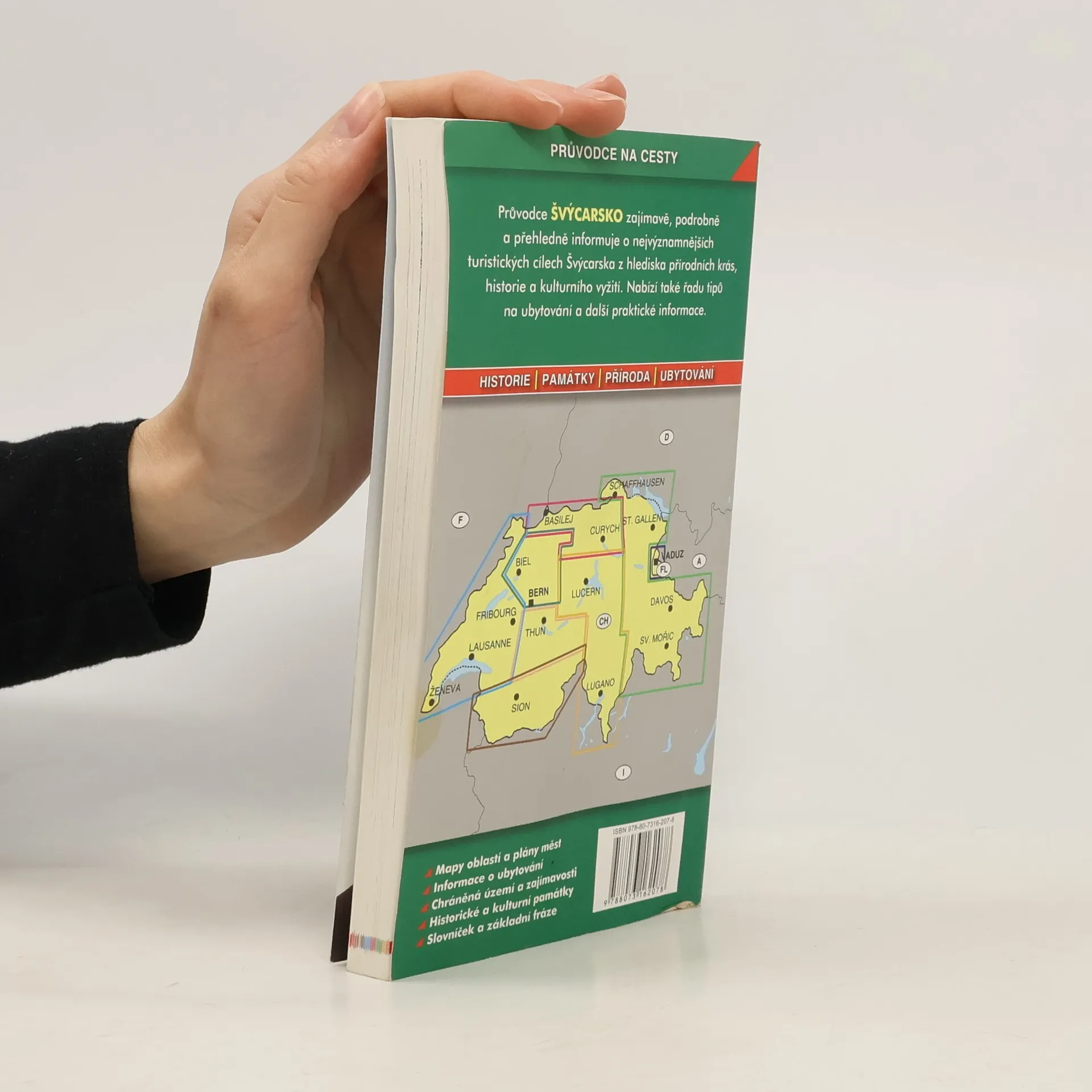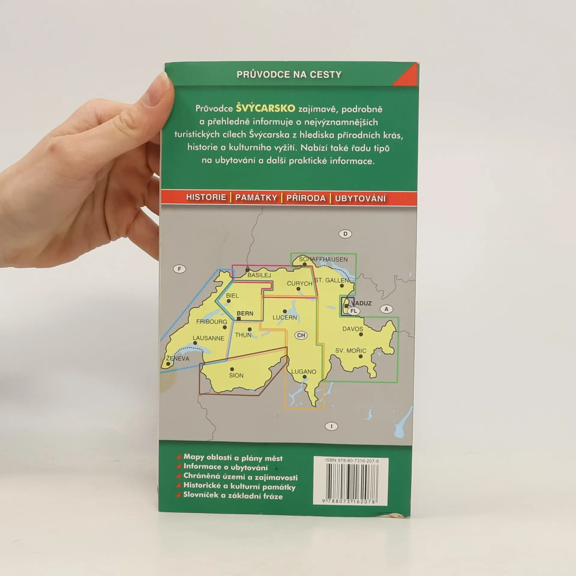 Průvodce přehledně a podrobně seznamuje s nejvýznamnějšími turistickými cíli Švýcarska. Popisuje atraktivní území švýcarské části Alp včetně světoznámých středisek jako jsou Grindelwald, Zermatt či Saas Fee, dále všechna důležitá švýcarská města i oblast Švýcarského Jury. Jedna kapitola je věnována také Lichtenštejnsku. Podrobná charakteristika obsahuje všeobecné informace o historii, přírodě a památkách Švýcarska, stejně jako řadu praktických rad pro turisty, včetně možností ubytování a užitečných kontaktů. Publikace je přehledně členěna podle jednotlivých turistických oblastí, popis nejzajímavějších míst doplňují mapy, plány měst a množství fotografií. Nechybí slovníček místních pojmů a rejstřík.