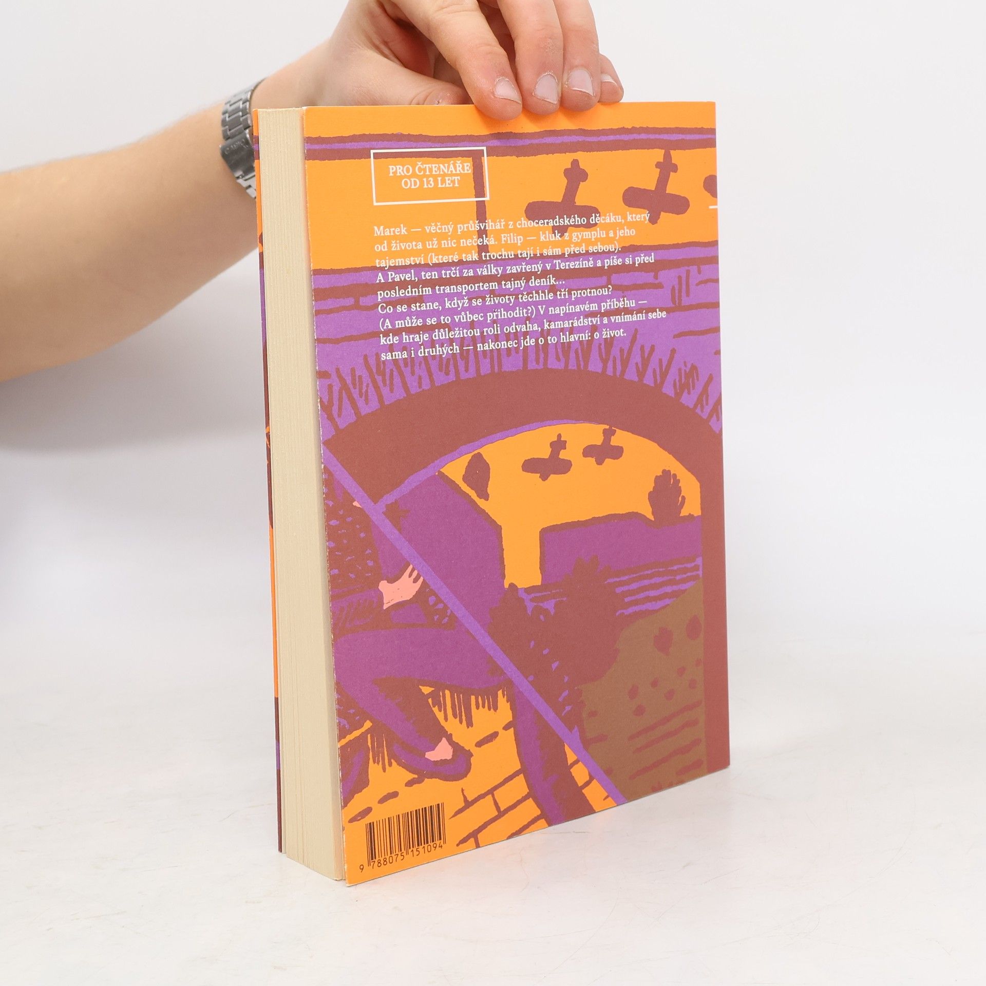 Marek – věčný průšvihář z choceradského děcáku, který od života už nic nečeká. Filip – kluk z gymplu a jeho tajemství (které tak trochu tají i sám před sebou). Starý deník (psaný před posledním transportem) nalezený na terezínské půdě… a chvíle, ve které se celý život obrátí naruby. Dobrodružný příběh ze současného i protektorátního Terezína se nevyhýbá vážným tématům a klade otázky, na něž není snadné najít odpověď. Tak jako pro tři dospívající kluky není snadné najít sama sebe.