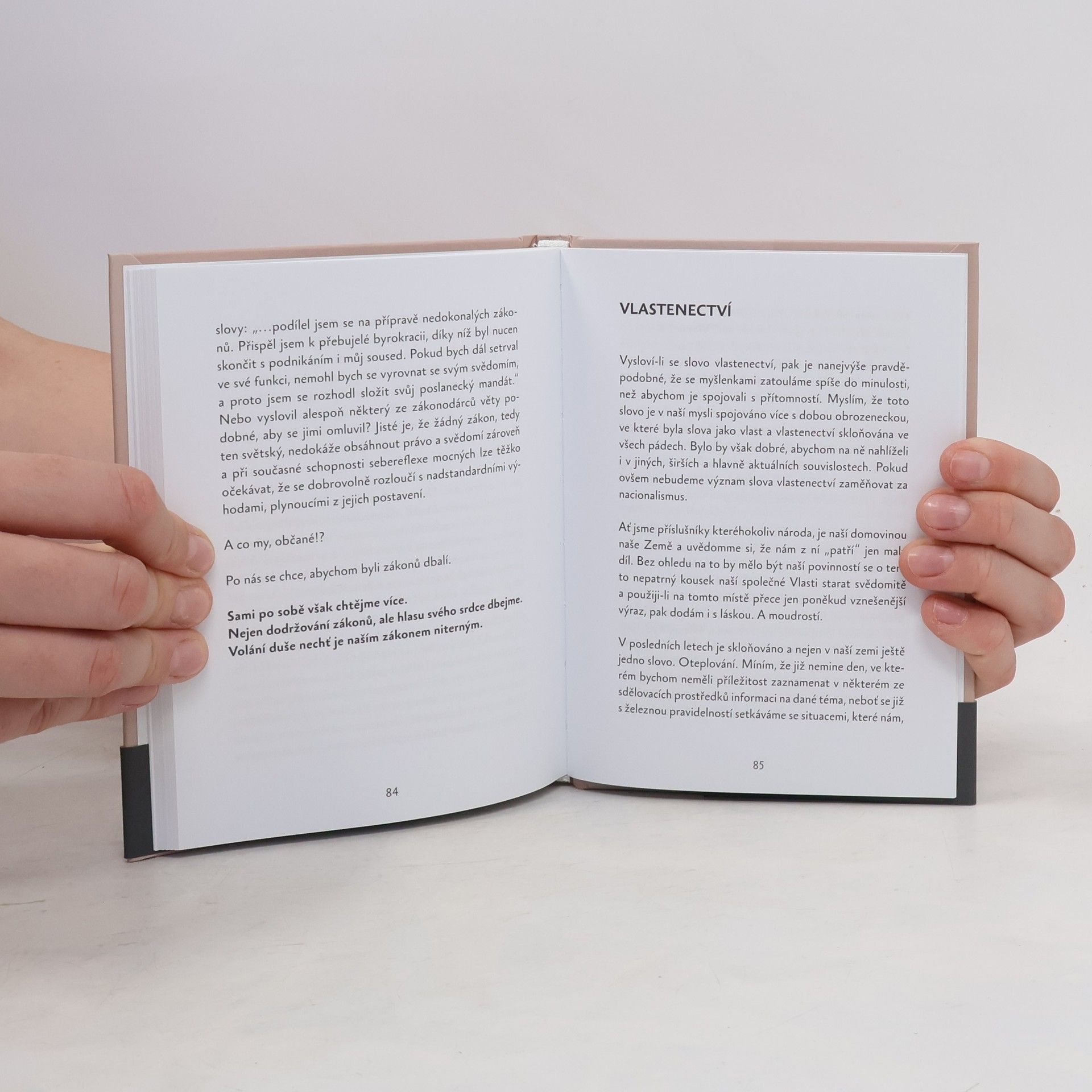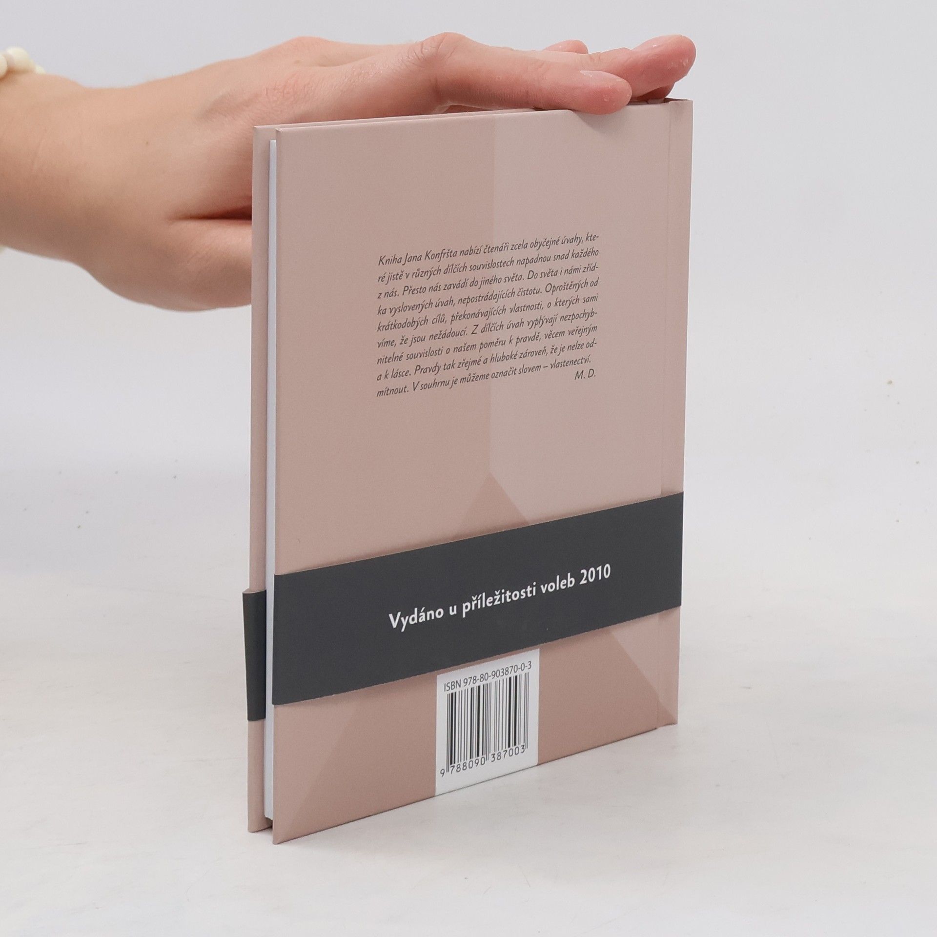Kniha Jana Konfršta nabízí čtenáři zcela obyčejné úvahy, které jistě v různých dílčích souvislostech napadnou snad každého z nás. Přesto nás zavádí do jiného světa. Do světa i námi zřídka vyslovených úvah, nepostrádajících čistotu. Oproštěných od krátkodobých cílů, překonávajících vlastnosti, o kterých sami víme, že jsou nežádoucí. Z dílčích úvah vyplývají nezpochybnitelné souvislosti o našem poměru k pravdě, věcem veřejným a k lásce. Pravdy tak zřejmé a hluboké zároveň, že je nelze odmítnout. V souhrnu je můžeme označit slovem -vlastenectví.