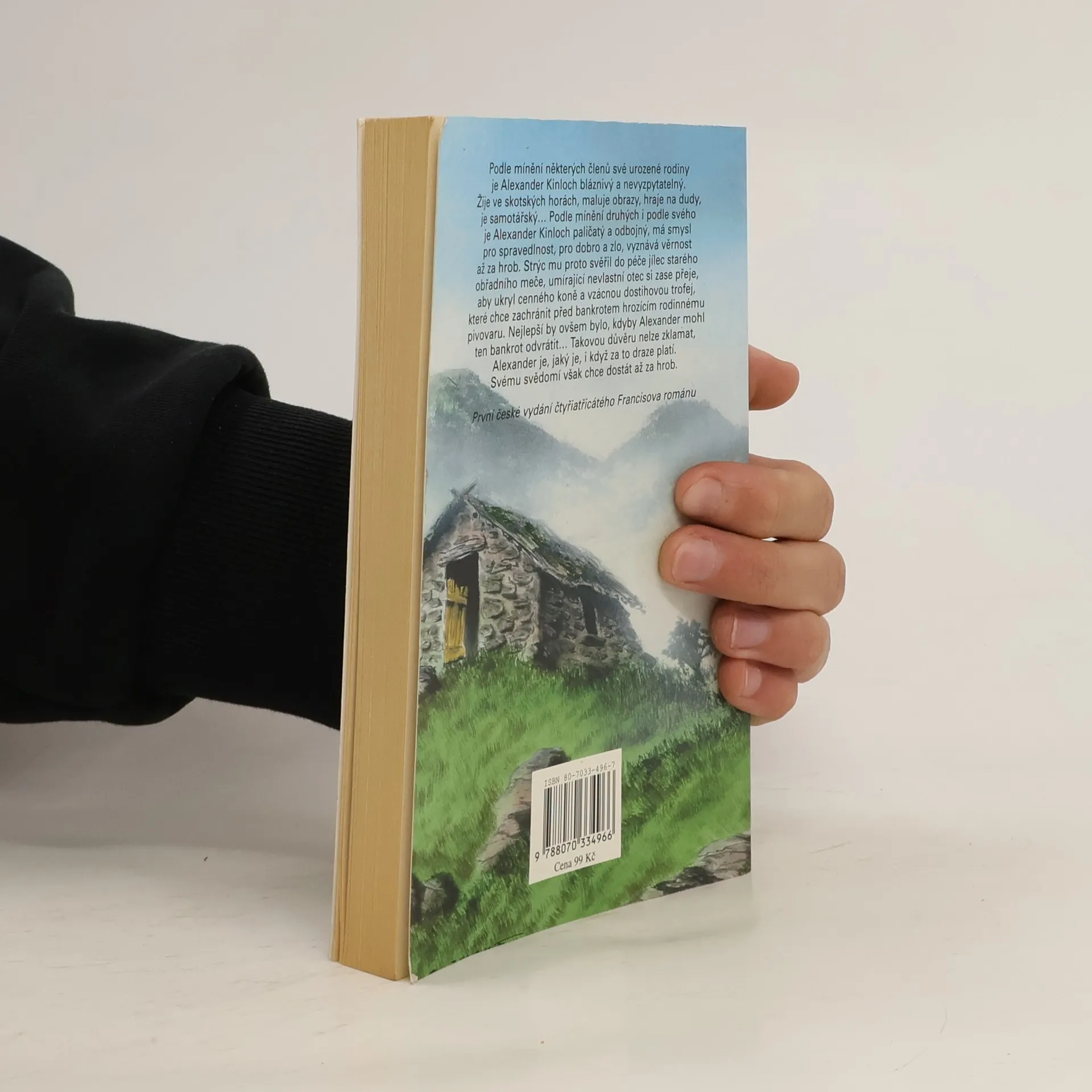 Podle mínění některých členů své urozené rodiny je Alexander Kinloch bláznivý a nevyzpytatelný. Žije ve skotských horách, maluje obrazy, hraje na dudy, je samotářský... Podle mínění druhých i podle svého je Alexander Kinloch paličatý a odbojný, má smysl pro spravedlnost, pro dobro a zlo, vyznává věrnost až za hrob. Strýc mu proto svěřil do péče jílec starého obřadního meče, umírající nevlastní otec si zase přeje, aby ukryl cenného koně a vzácnou dostihovou trofej, které chce zachránit před bankrotem hrozícím rodinnému pivovatu. Nejlepší by ovšem bylo, kdyby Alexander mohl ten bankrot odvrátit... Takovou důvěru nelze zklamat, Alexander je, jeký je, i když za to draze platí. Svému svědomí však chce dostát až za hrob.