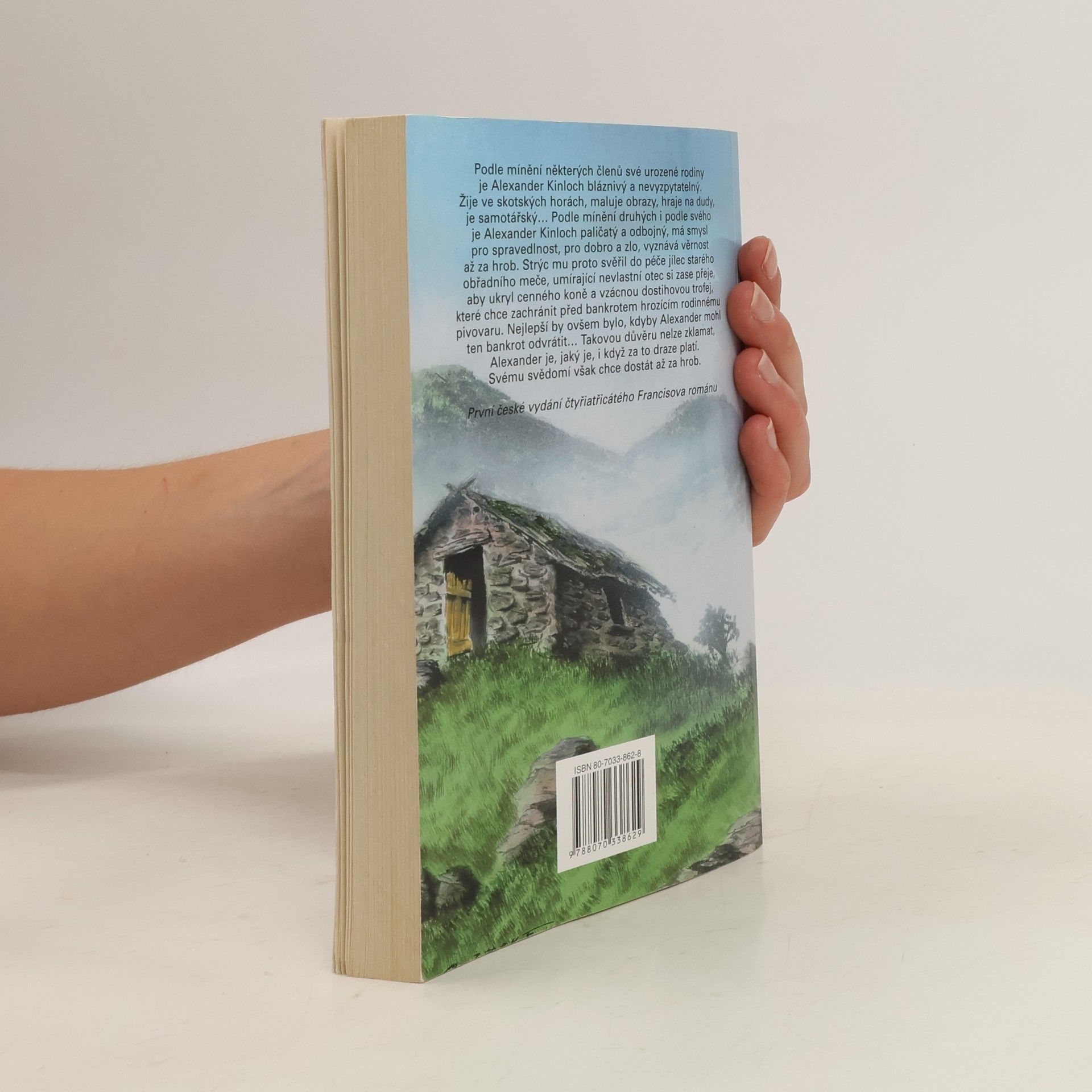 Podle mínění některých členů své urozené rodiny je Alexander Kinloch bláznivý a nevyzpytatelný. Žije ve skotských horách, maluje obrazy, hraje na dudy, je samotářský... Podle mínění druhých i podle svého je Alexander Kinloch paličatý a odbojný, má smysl pro spravedlnost, pro dobro a zlo, vyznává věrnost až za hrob. Strýc mu proto svěřil do péče jílec starého obřadního meče, umírající nevlastní otec si zase přeje, aby ukryl cenného koně a vzácnou dostihovou trofej, které chce zachránit před bankrotem hrozícím rodinnému pivovaru. Nejlepší by ovšem bylo, kdyby Alexander mohl ten bankrot odvrátit... Takovou důvěru nelze zklamat, Alexander je, jaký je, i když za to draze platí. Svému svědomí však chce dostát až za hrob. Detektivní román z dostihového prostředí.