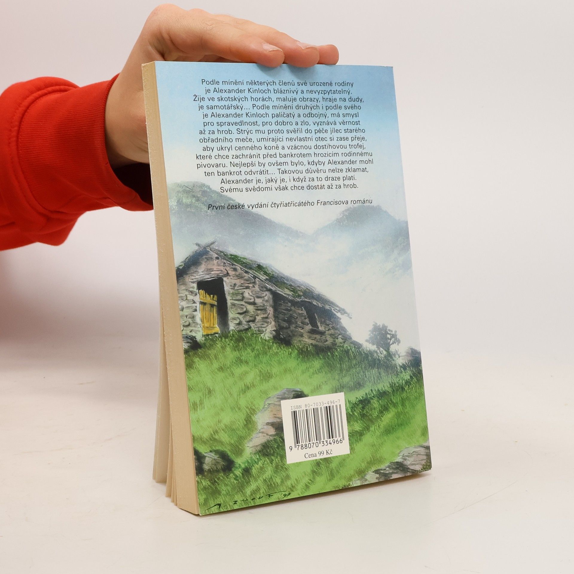 Podle mínění některých členů své urozené rodiny je Alexander Kinloch bláznivý a nevyzpytatelný. Žije ve skotských horách, maluje obrazy, hraje na dudy, je samotářský... Podle mínění druhých i podle svého je Alexander Kinloch paličatý a odbojný, má smysl pro spravedlnost, pro dobro a zlo, vyznává věrnost až za hrob. Strýc mu proto svěřil do péče jílec starého obřadního meče, umírající nevlastní otec si zase přeje, aby ukryl cenného koně a vzácnou dostihovou trofej, které chce zachránit před bankrotem hrozícím rodinnému pivovatu. Nejlepší by ovšem bylo, kdyby Alexander mohl ten bankrot odvrátit... Takovou důvěru nelze zklamat, Alexander je, jeký je, i když za to draze platí. Svému svědomí však chce dostát až za hrob.