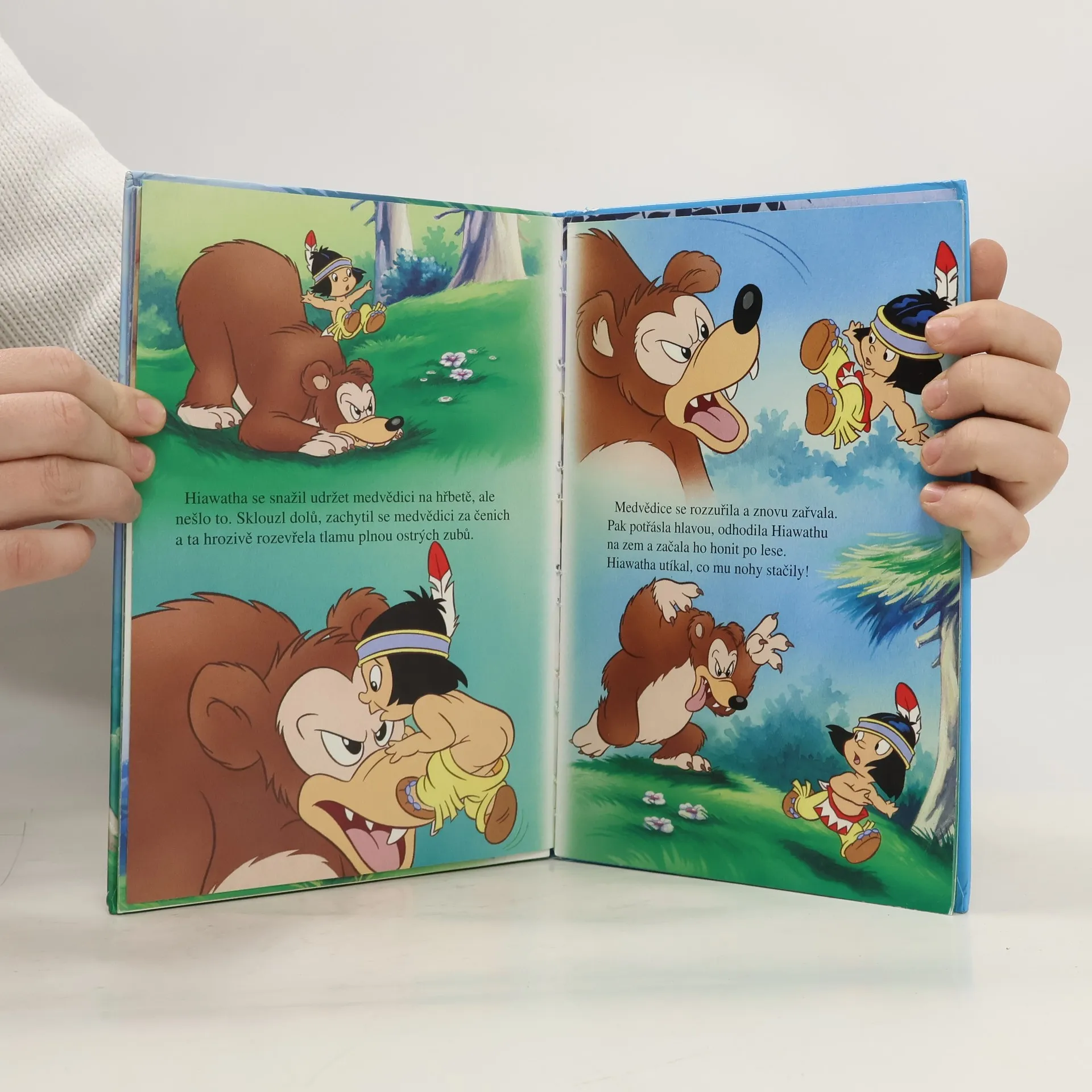 Malý indián Hiawatha touží být slavným lovcem a nebojácným bojovníkem jako jeho otec.Proto se vydá do lesa s lukema šípem,aby se něco naučil.Setkáníns lesními zvířaty ale vůbec není takové,jak si představoval.A když se navíc setká s velkým medvědem,zažije napínavé dobrodružství.