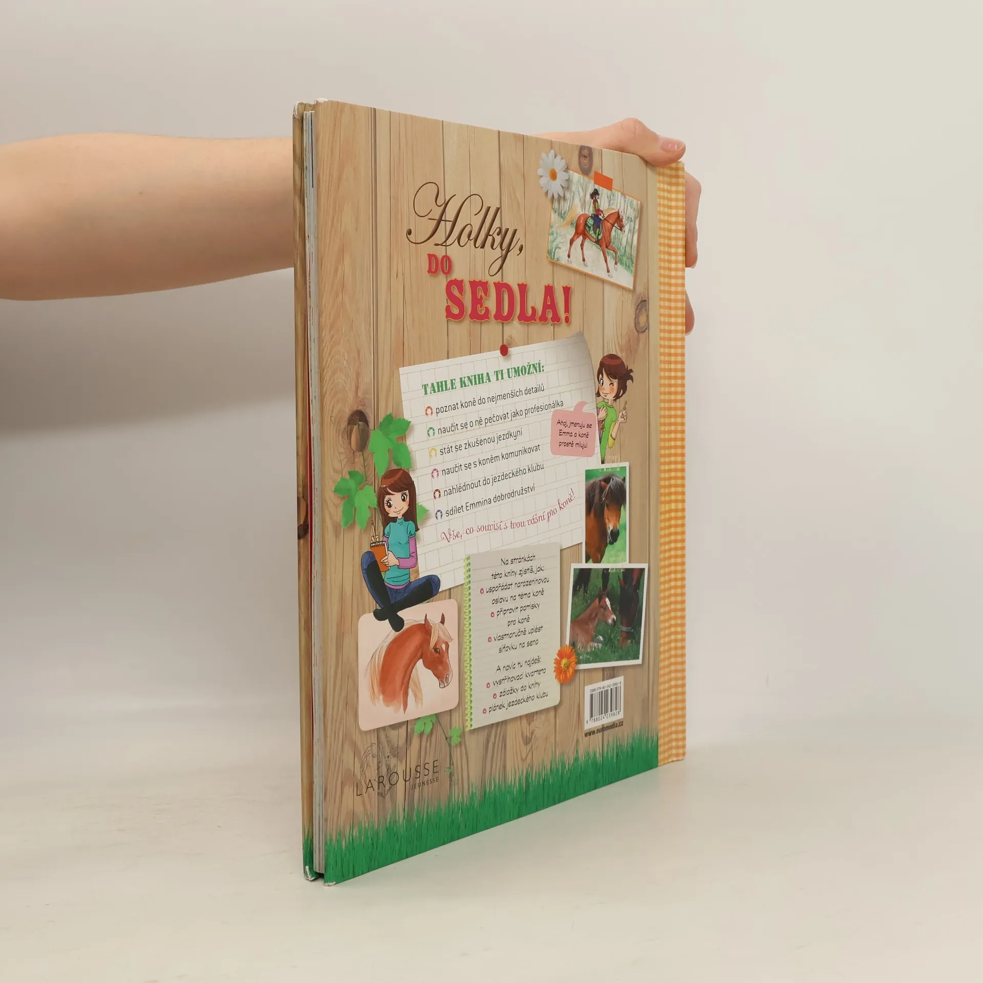 Emmě je dvanáct a už od sedmi let nadšeně jezdí na koni. Ve svém jezdeckém klubu má svého oblíbeného koně a v této knížce se z ní stává zábavná a poučená průvodkyně pro všechny začátečnice, kterým ukazuje, co všechno je třeba zvládnout, aby se z nich mohly stát opravdové jezdkyně. Nejen užitečné rady, nápady a tipy, ale také hry, vystřihovánky, hry a spousta dalších zajímavostí pro všechny malé koňačky. Zdroj: www.neoluxor.cz