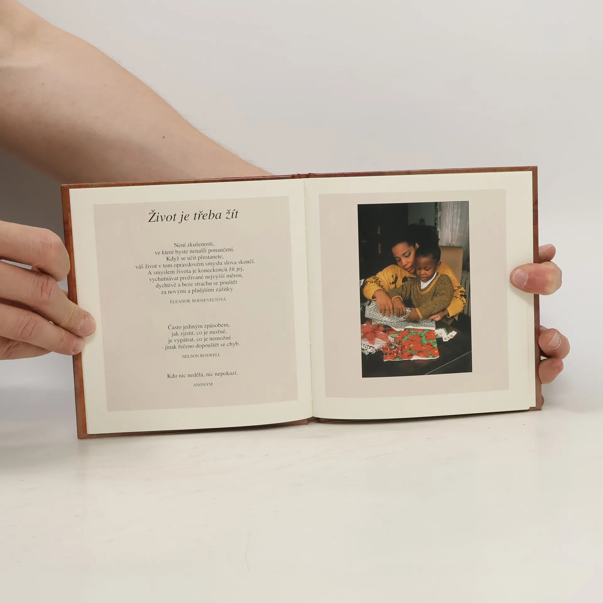 Děkujeme Ti Bože, / že konečně máme našeho prvního vnoučka! / Pokládám telefon a mám velkou radost. / Kouknu se z okna, jsem oslněna a v úžasu. / "Před chvilkou," řekli mi, "krásná holčička." / Přišla na svět s východem slunce, Pane. / Nebe je růžové Tvou slávou. / Světlo ozařuje tento svět. / Samotné stromy zvedají své větve, / jako by jí chtěli jít vstříc. / A mně se chce také rozpřáhnout paže radostí, pýchou / a vítat ji. / Moje paže a srdce ji zvedají k Tobě pro požehnání. / Ach Bože, děkujeme Ti za ni, / požehnej prosím novému životu, / jehož první den začíná. (ukázka)