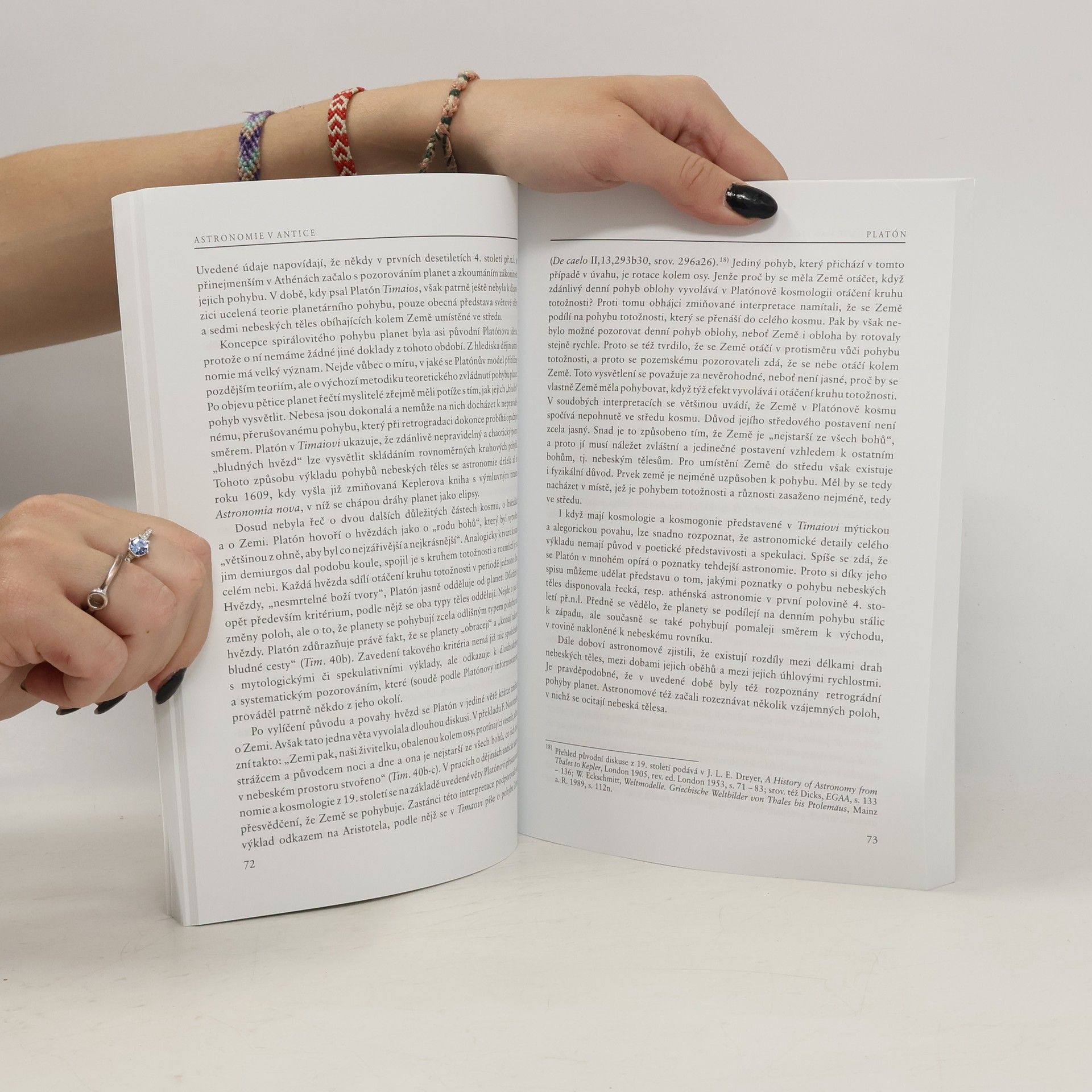 Kniha podává základní přehled o proměnách astronomie ve starověku od prvních pokusů o vysvětlení nebeských jevů až k rozvinuté matematické astronomii helénistické doby, která dokázala předpovídat polohy nebeských těles s udivující přesností. Práce se nesoustředí pouze na matematickou astronomii, ale věnuje se také kosmologickým koncepcím řecké filozofie a jejich důsledkům pro antropologii. Kromě toho objasňuje, jaké úkoly, funkce a metody byly astronomii v antice přisuzovány. Jen tak lze totiž pochopit, proč v té době nedošlo k takové události jako byla Koperníkova reforma astronomie.