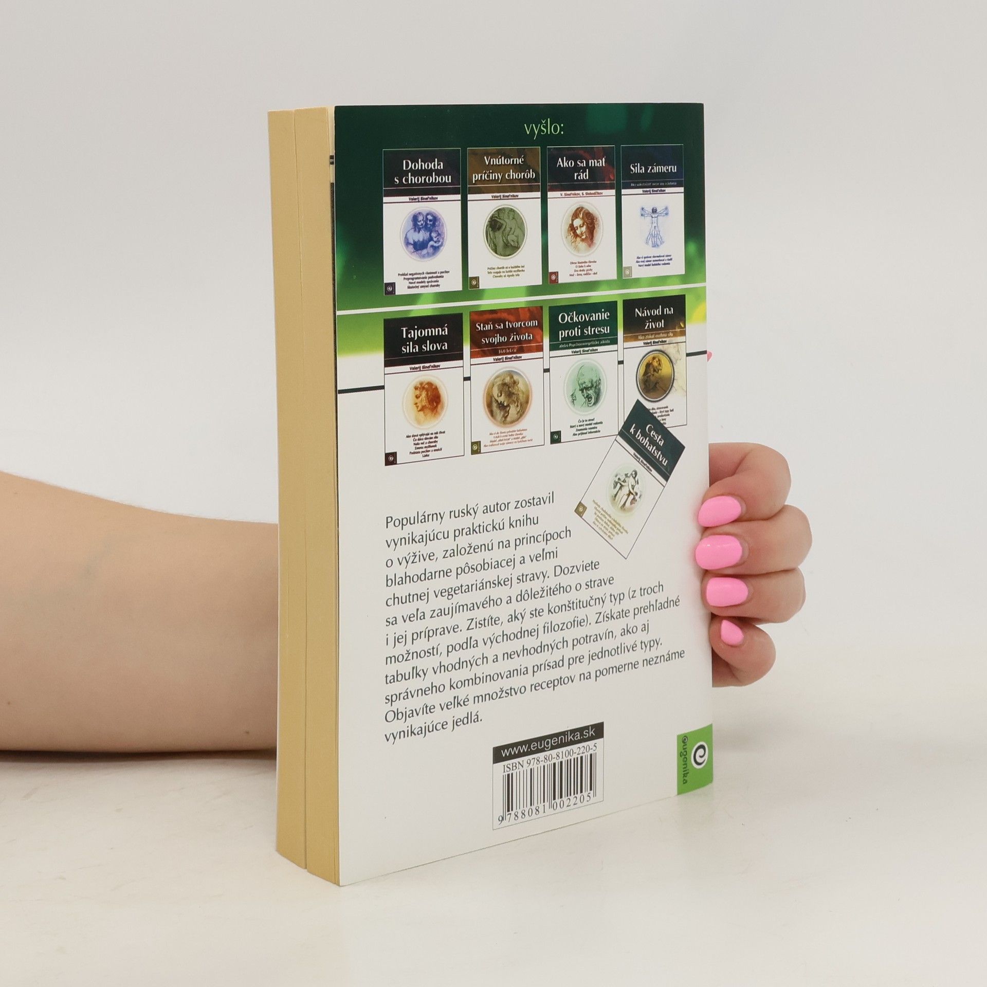 Populárny ruský autor zostavil vynikajúcu praktickú kuchársku knihu, založenú na princípoch blahodárne pôsobiacej a veľmi chutnej vegetariánskej stravy. Dozviete sa veľa zaujímavého a dôležitého o strave i jej príprave. Zistíte, aký ste konštitučný typ (z troch možností, podľa východnej filozofie). Získate prehľadné tabuľky vhodných a nevhodných potravín, ako aj správneho kombinovania prísad pre jednotlivé typy. Objavíte veľké množstvo receptov na pomerne neznáme vynikajúce jedlá, z ktorých mnohé sú tradičné ruské.
