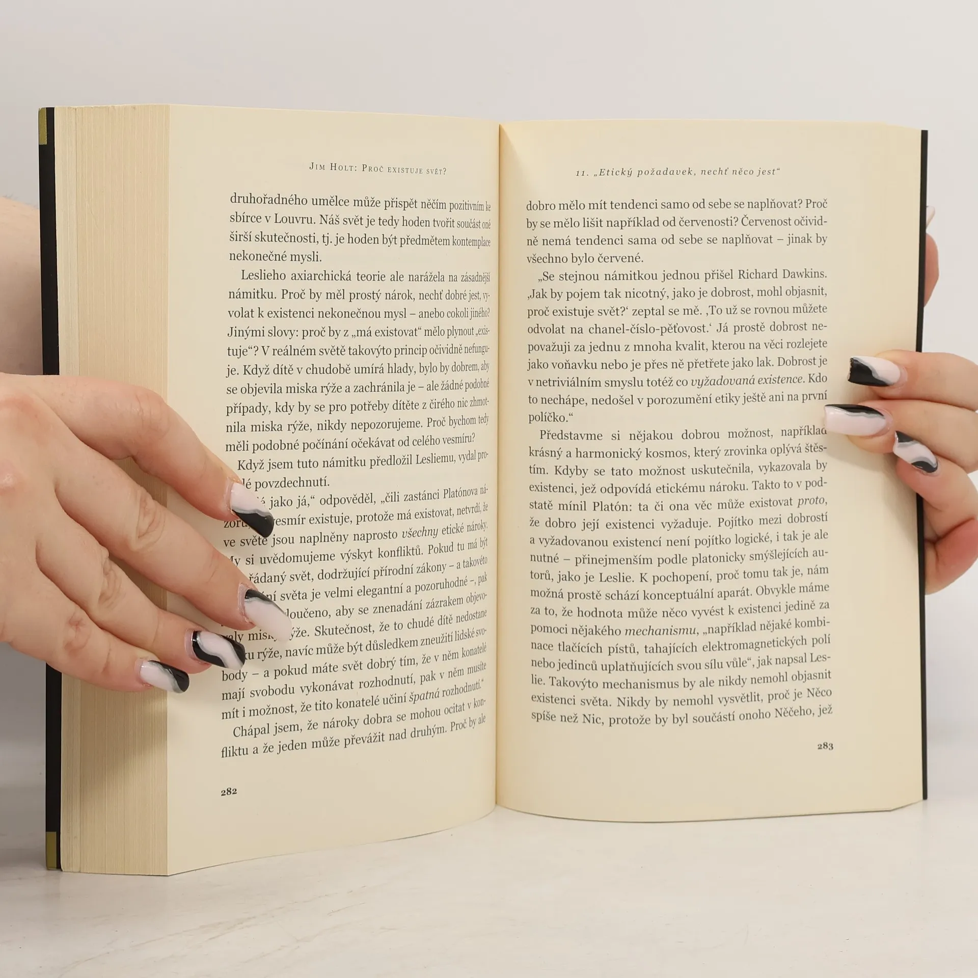 Titul a podtitul knihy přesně vystihují ústřední téma této monografie, která není odbornou, filozofickou ani kosmologickou prací, ale vznikla z osobní potřeby a je určena všem, kdo se ptají „Proč je svět?“ nebo „Existuje Bůh?“. Autor se soustředěně zabývá záhadou existence, formulovanou jako otázku: „Proč je něco spíše než nic?“ Nejprve načrtává historické přístupy filozofie a teologie k této problematice, přičemž situace se změnila po přijetí teorie velkého třesku. Následně se věnuje podrobnějšímu zkoumání různých aspektů, jako je nicota, popírání Boha, ontologický důkaz Boží existence, nekonečnost, věčnost, osobní existence a smrt. Kniha, psaná jako napínavá detektivka, zahrnuje autorovo pátrání po odpovědích, včetně rozhovorů s významnými osobnostmi, jako jsou filozof Adolf Grünbaum, biolog Richard Dawkins, fyzik Steven Weinberg, filozof Richard Swinburne a spisovatel John Updike. Holtův smysl pro humor, osobní tón textu a literární nadání přidávají na atraktivitě. Časopis The New York Times Book Review ji zařadil mezi deset nejlepších knih roku. České vydání obsahuje úvodní slovo Tomáše Halíka.