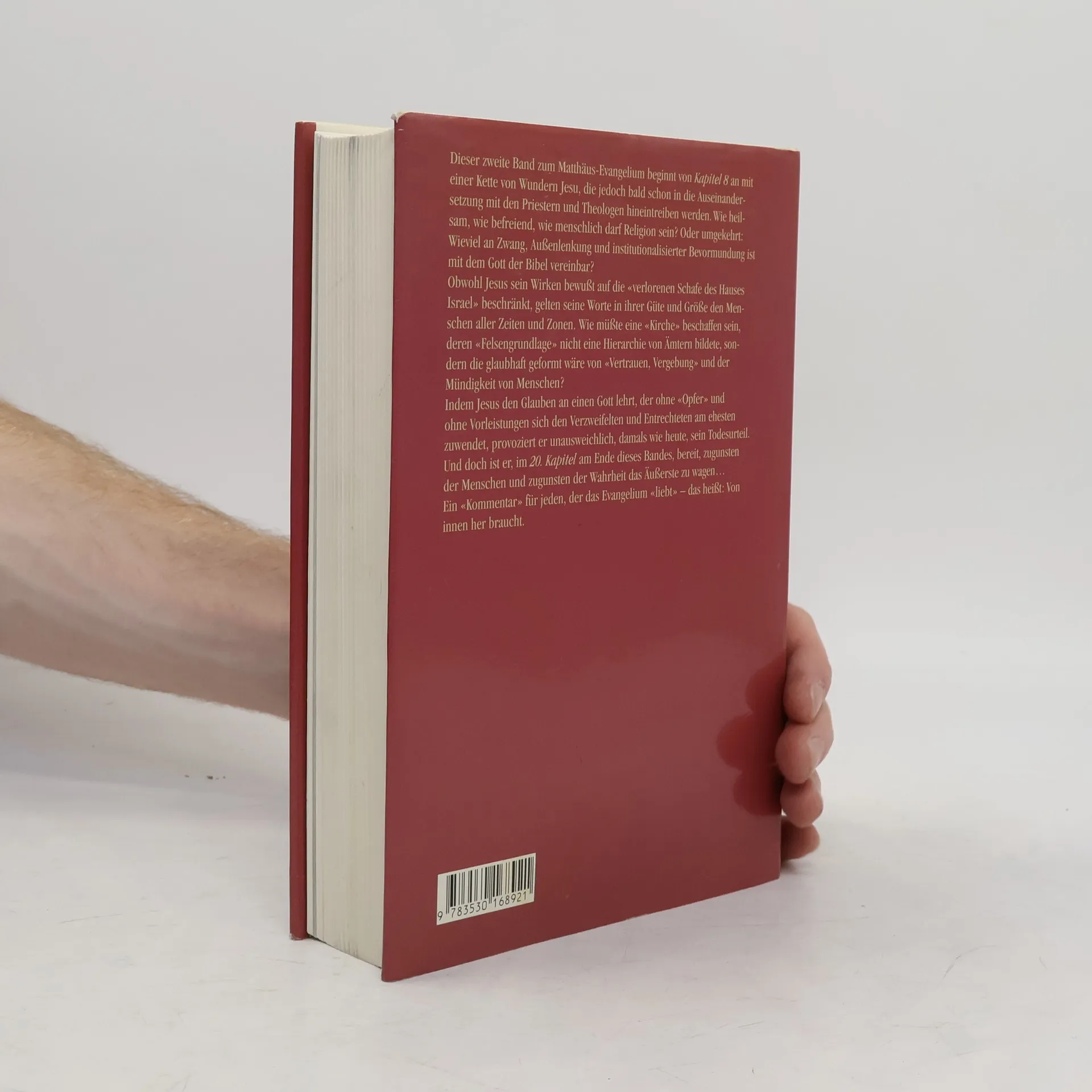 Dieser zweite Band zum Matthäus-Evangelium beginnt von Kapitel 8 an mit einer Kette von Wundern Jesu, die jedoch bald schon in die Auseinandersetzung mit den Priestern und Theologen hineintrieben werden. Wie heilsam, wie befreiend, wir menschlich darf Religion sein? Oder umgekehrt: Wieviel an Zwang, Außenlenkung und institutionalisierter Bevormundung ist mit dem Gott der Bibel vereinbar? Obwohl Jesus sein Wirken bewusst auf die „verlorenen Schafe des Hauses Israel“ beschränkt, gelten seine Worte in ihrer Güte und Größe den Menschen aller Zeiten und Zonen. Wie müsste eine „Kirche“ beschaffen sein, deren „Felsengrundlage“ nicht eine Hierarchie von Ämtern bildete, sondern die glaubhaft geformt wäre von „Vertrauen, Vergebung“ und der Mündigkeit von Menschen? Indem Jesus den Glauben an einen Gott lehrt, der ohne „Opfer“ und ohne Vorleistungen sich den Verzweifelten und Entrechteten am ehesten zuwendet, provoziert er unausweichlich, damals wie heute, sein Todesurteil. Und doch ist er, im 20. Kapitel am Ende dieses Bandes, bereit, zugunsten der Menschen und zugunsten der Wahrheit das Äußerste zu wagen… Ein „Kommentar“ für jeden, der das Evangelium „liebt“ – das heißt: Von innen her braucht.