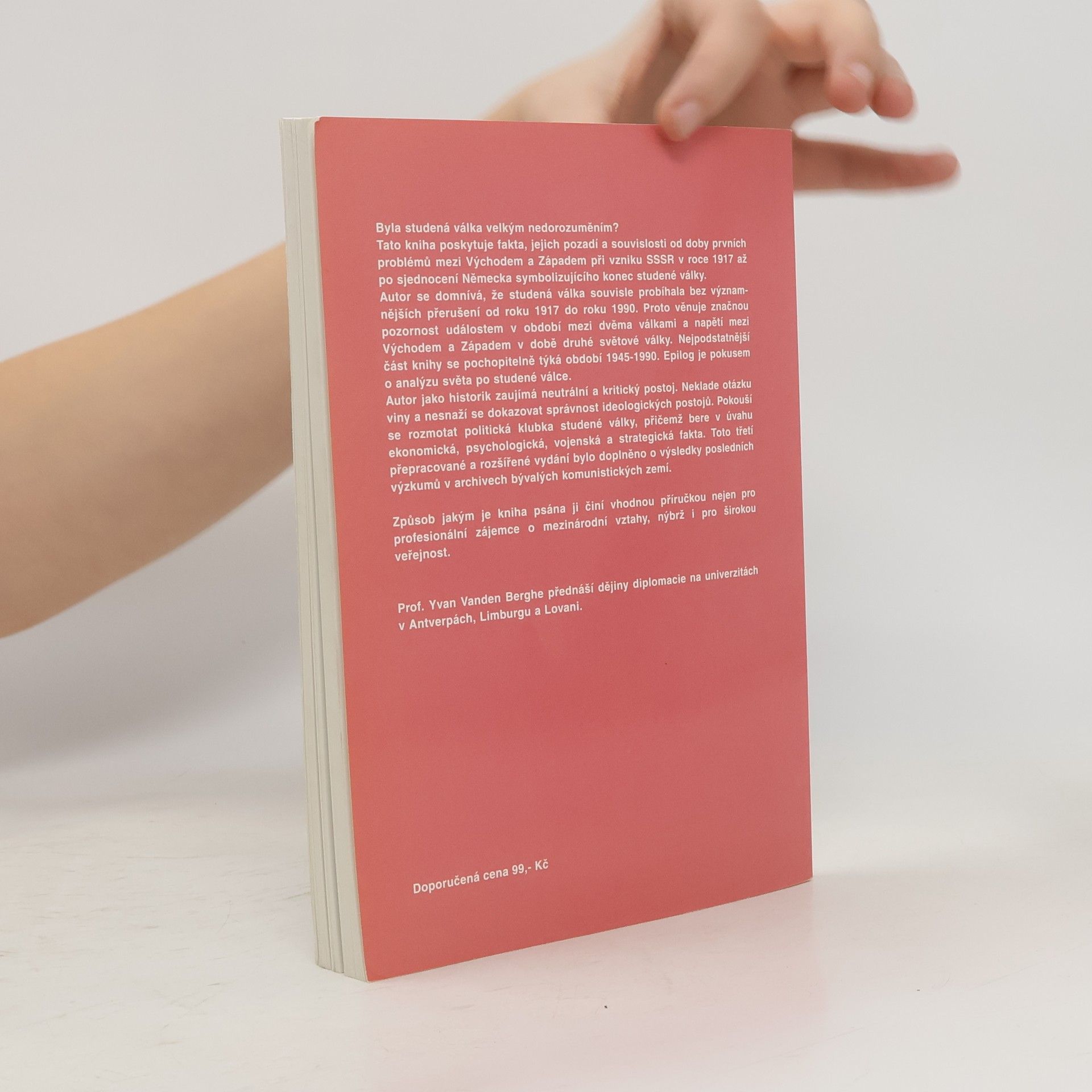 Z nepřeberného množství knih o studené válce vyčnívá práce belgického historika Yvana Vanden Bergheho. Profesor Vanden Berghe, vyučující dějiny diplomacie na univerzitách v Antverpách, Limburku a Lovani, se ve své knize vyhýbá morálnímu hodnocení znesvářených stran a zaujímá neutrální a kritický postoj. Na základě detailního rozboru ekonomických, vojenských, strategických a psychologických faktů se snaží rozmotat složité klubko studené války. Vanden Berghe tvrdí, že studená válka nezačala Churchillovým projevem ve Fultonu, ale již v roce 1917, kdy bolševická revoluce otřásla Ruskem a světem. Před druhou světovou válkou se formovaly dva odlišné bloky, které vedly zdánlivě morální konflikt, ale ve skutečnosti posilovaly své mocenské postavení. Autor zdůrazňuje dlouhodobě zakořeněné nepřátelství mezi carským Ruskem a Velkou Británií, které se stalo jedním z východisek studené války, přičemž Velkou Británii v čele Západu nahradily Spojené státy. Konflikt, který trval od roku 1917, se nakonec nepřerostl ve fatální měření sil díky protinacistické alianci mezi SSSR a Anglosasy, i když hluboká nedůvěra přetrvávala. Kniha, vydaná v roce 1996, je opomíjena, přestože nabízí netradiční pohled na nejnovější dějiny a je vhodná pro profesionální zájemce i širokou veřejnost.