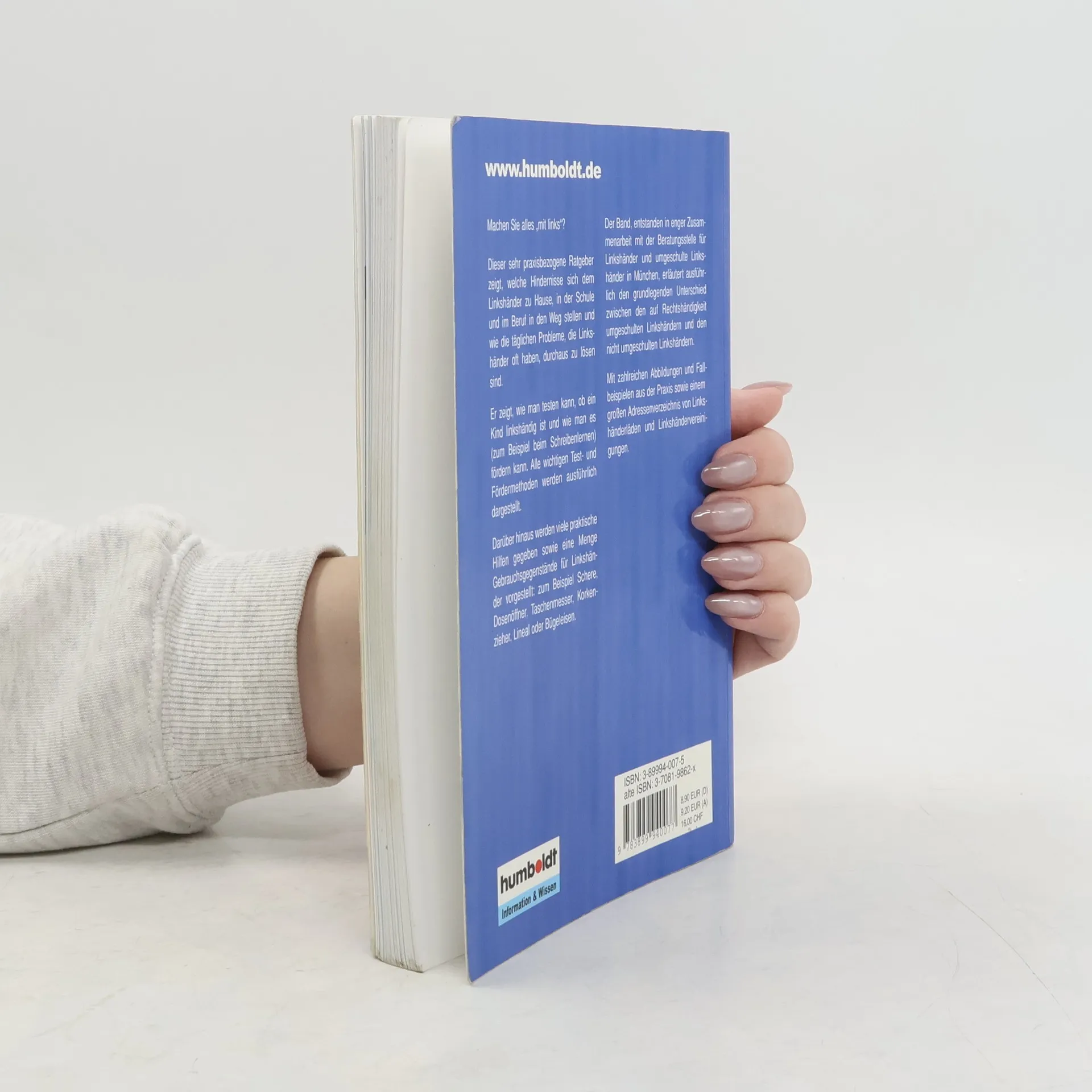 Machen Sie alles „mit links“? Dieser sehr praxisbezogene Ratgeber zeigt, welche Hindernisse sich dem Linkshänder zu Hause, in der Schule und im Beruf in den Weg stellen und wie die täglichen Probleme, die Linkshänder oft haben, durchaus zu lösen sind. Der Band, entstanden in enger Zusammenarbeit mit der Beratungsstelle für Linkshänder und umgeschulte Linkshänder in München, erläutert ausführlich den grundlegenden Unterschied zwischen den auf Rechtshändigkeit umgeschulten Linkshändern und den nicht umgeschulten Linkshändern. Er zeigt, wie man testen kann, ob ein Kind linkshändig ist und wie man es (zum Beispiel beim Schreibenlernen) fördern kann. Alle wichtigen Test- und Fördermethoden werden ausführlich dargestellt. Darüber hinaus werden viele praktische Hilfen gegeben sowie eine Menge Gebrauchsgegenstände für Linkshänder vorgestellt: zum Beispiel Schere, Dosenöffner, Taschenmesser, Korkenzieher, Lineal oder Bügeleisen. Mit zahlreichen Abbildungen und Fallbeispielen aus der Praxis sowie einem großen Adressenverzeichnis von Linkshänderläden und Linkshändervereinigungen.