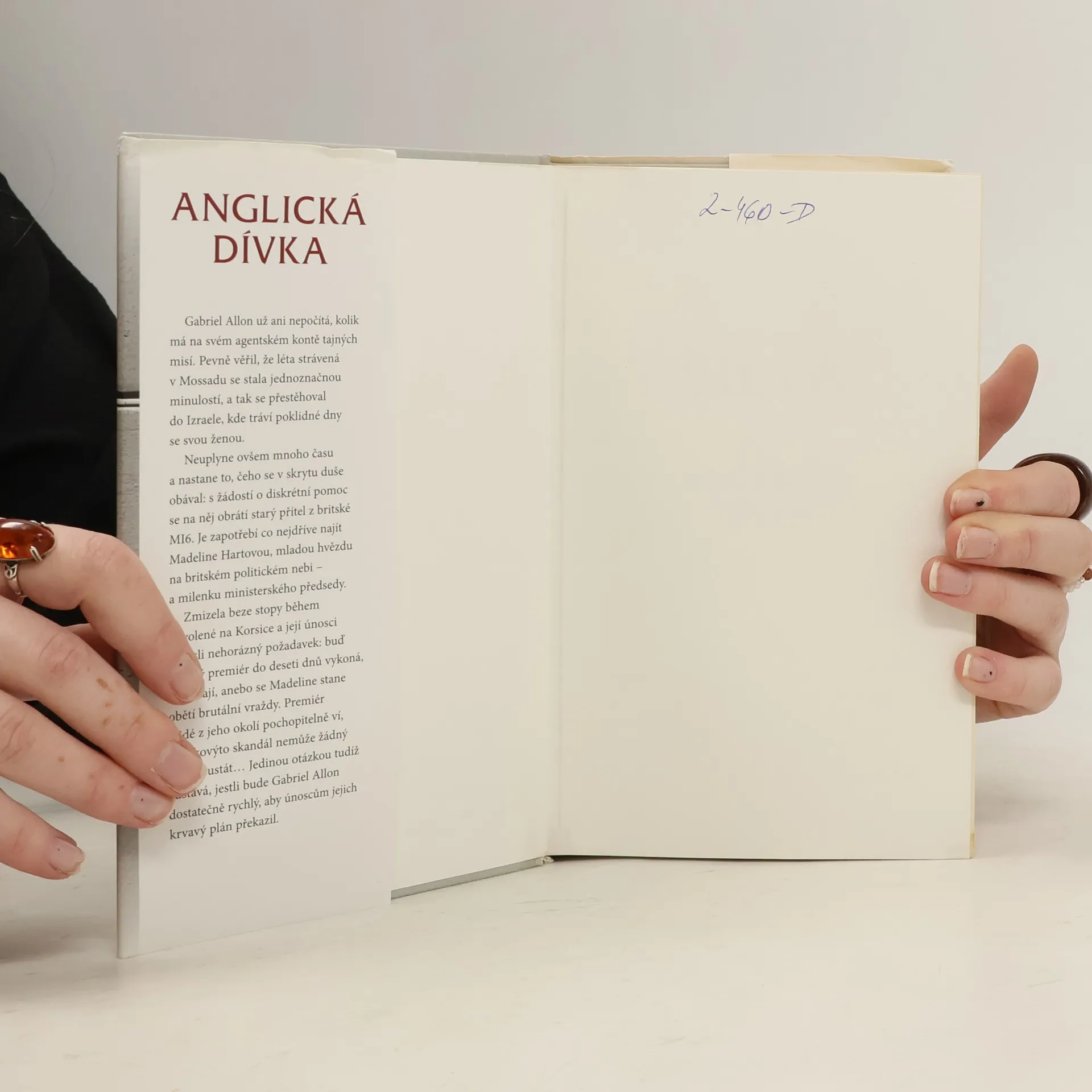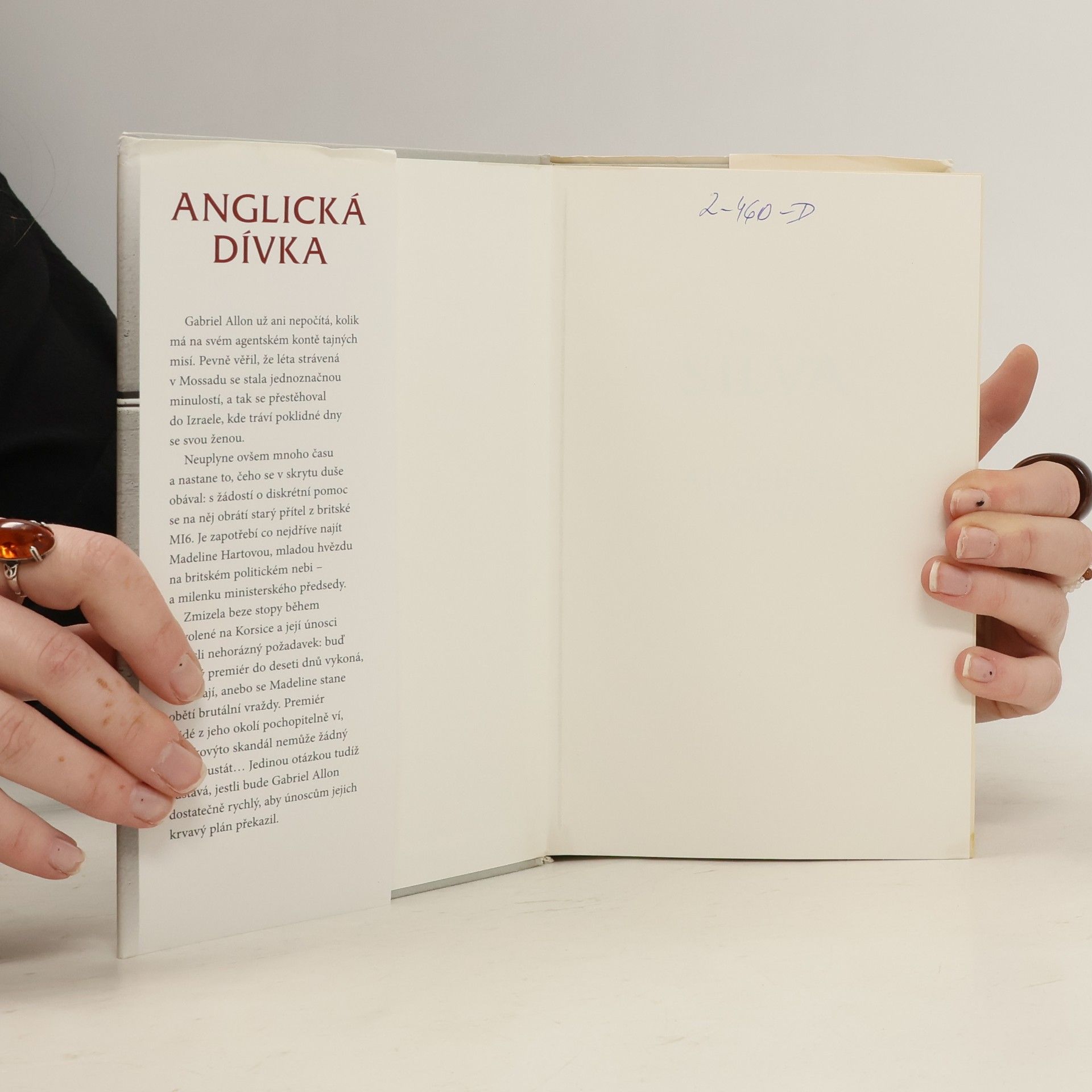 Když jste britský ministerský předseda, může váš milostný poměr zásadně ovlivnit běh světa. Gabriel Allon už ani nepočítá, kolik má na svém agentském kontě tajných misí. Doufá, že léta strávená v Mossadu jsou už minulostí, a tak se přestěhoval do Izraele, kde tráví poklidné dny se svou ženou. Pak ale nastane to, čeho se v skrytu duše obával: s žádostí o diskrétní pomoc se na něj obrátí starý přítel z britské MI6. Je zapotřebí co nejdříve najít Madeline Hartovou, mladou hvězdu na britském politickém nebi – a milenku ministerského předsedy. Zmizela beze stopy během dovolené na Korsice a její únosci vznesli nehorázný požadavek: buď britský premiér do deseti dnů vykoná, oč jej požádali, anebo Madeline brutálně zavraždí. Takovýto skandál pochopitelně nemůže žádný politik ustát... Otázkou zůstává, jestli bude Gabriel Allon dostatečně rychlý, aby únoscům jejich krvavý plán překazil. První vydání.
