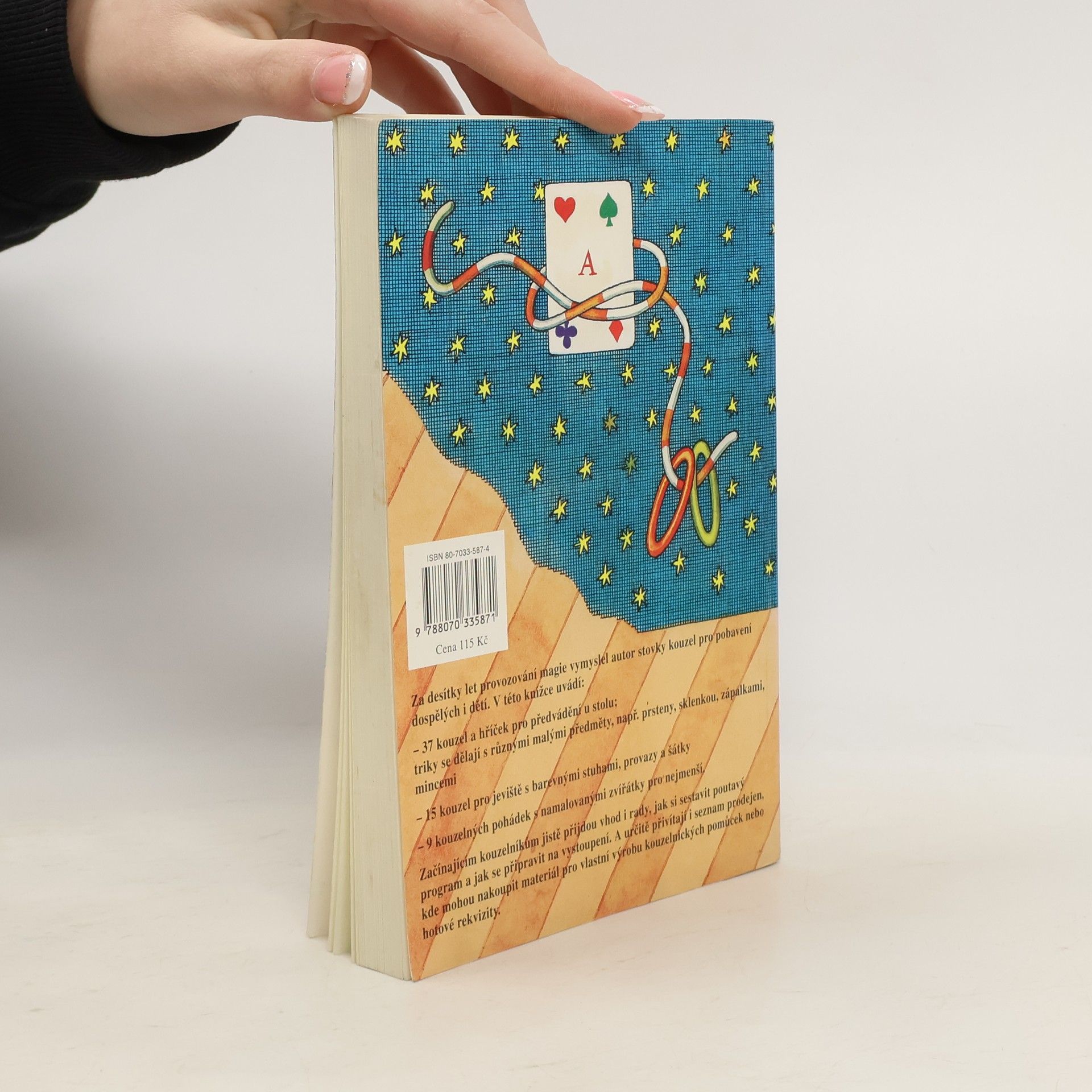 Třetí knížka kouzel pro pobavení dětí i dospělých. Za desítky let provozování magie vymyslel autor stovky kouzel pro pobavení dospělých i dětí. V této knížce uvádí: - 37 kouzel a hříček pro předvádění u stolu, triky se dělají s různými malými předměty, např. prsteny, sklenkou, zápalkami, mincemi - 15 kouzel pro jeviště s barevnými stuhami, provazy a šátky - 9 kouzelných pohádek s namalovanými zvířátky pro nejmenší Začínajícím kouzelníkům jistě přijdou vhod i rady, jak si sestavit poutavý program a jak se připravit na vystoupení. A určitě přivítají i seznam prodejen, kde mohou koupit materiál pro vlastní výrobu kouzelnických pomůcek nebo hotové rekvizity.