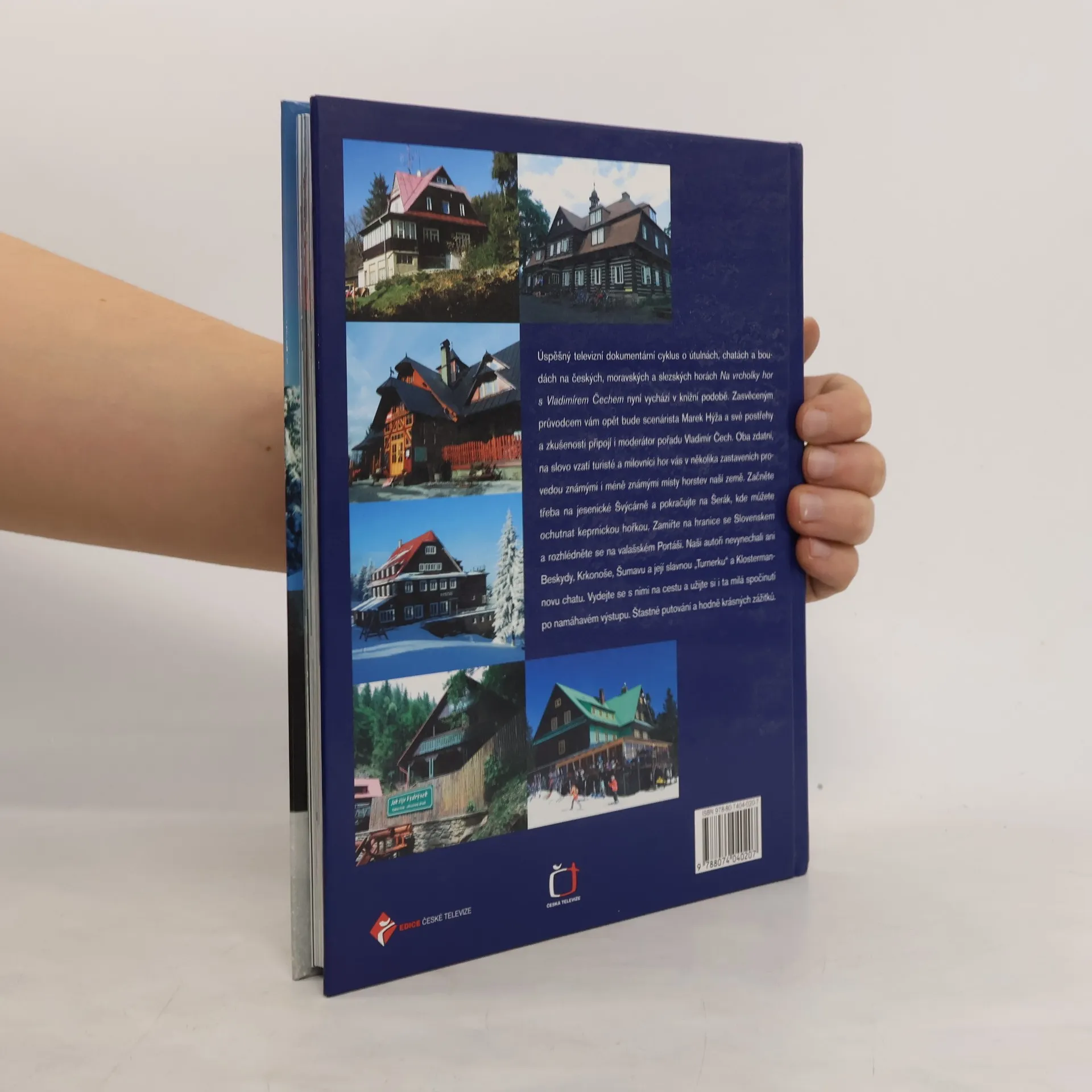 Úspěšný televizní dokumentární cyklus o útulnách, chatách a boudách na českých, moravských a slezských horách Na vrcholky hor s Vladimírem Čechem nyní vychází v knižní podobě. Zasvěceným průvodcem vám opět bude scenárista Marek Hýža a své postřehy a zkušenosti připojí i moderátor pořadu Vladimír Čech. Oba zdatní a na slovo vzatí turisté a milovníci hor vás v několika zastaveních provedou známými i méně známými místy horstev naší země. Začněte třeba na jesenické Švýcárně a pokračujte na Šerák, kde můžete ochutnat keprnickou hořkou. Zamiřte na hranice se Slovenskem a rozhlédněte se na valašském Portáši. Naši autoři nevynechali ani Beskydy, Krkonoše, Šumavu a její slavnou Turnerku a Klostermannovu chatu. Vydejte se s nimi na cestu a užijte si i ta milá spočinutí po namáhavém výstupu. Šťastné putování a hodně krásných zážitků.