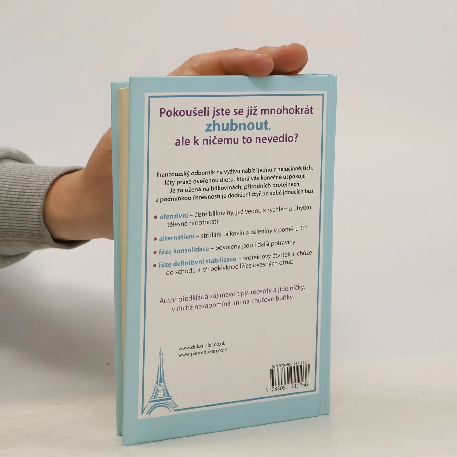 Pokoušeli jste se již mnohokrát zhubnout, ale k ničemu to nevedlo? Francouzský odborník na výživu nabízí jednu z nejúčinnějších, léty praxe ověřenou dietu, která vás konečně uspokojí! Je založená na bílkovinách, přírodních proteinech, a podmínkou úspěšnosti je dodržení čtyř po sobě jdoucích fází - ofenzivní – čisté bílkoviny, jež vedou k rychlému úbytku tělesné hmotnosti - alternativní – střídání bílkovin a zeleniny v poměru 1:1 - fáze konsolidace – povoleny jsou i další potraviny - fáze definitivní stabilizace – proteinový čtvrtek + chůze do schodů + tři polévkové lžíce ovesných otrub Ve své knize nabízí zajímavé tipy, recepty a jídelníčky, v nichž nezapomíná ani na chuťové buňky.