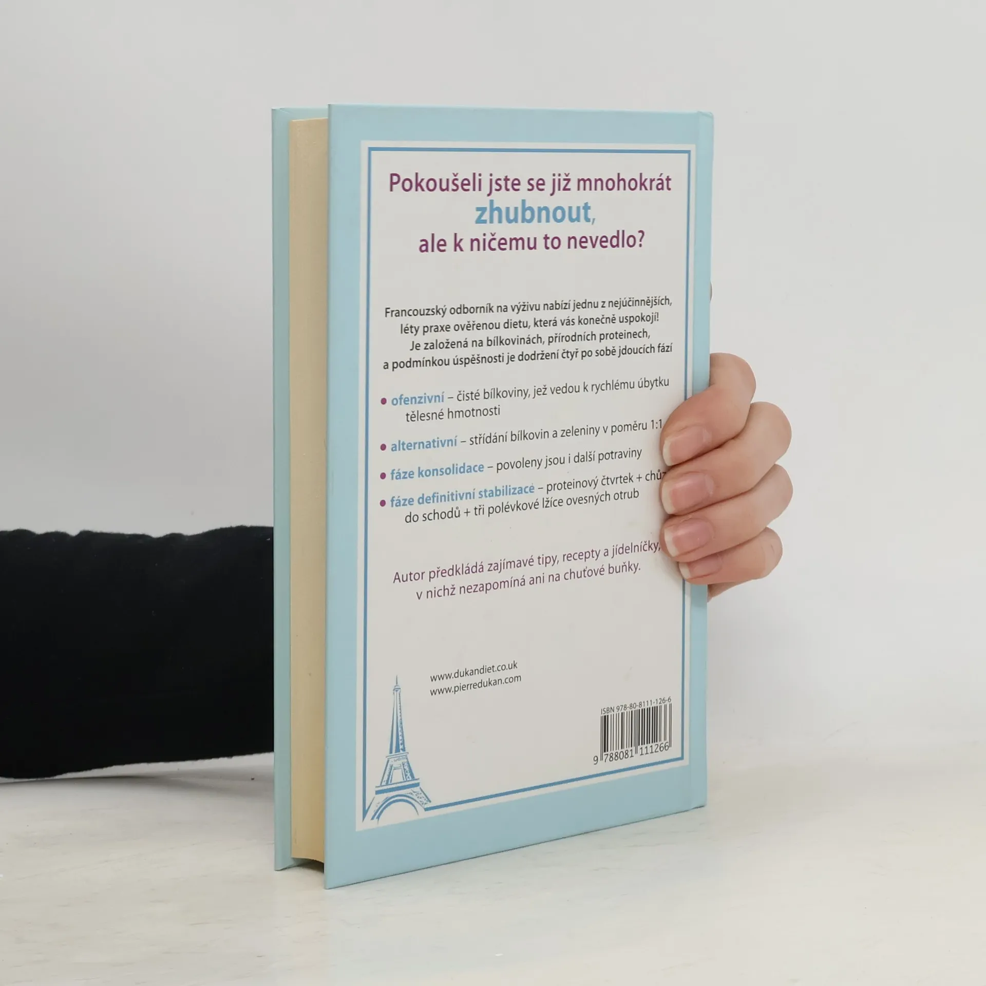 Pokoušeli jste se již mnohokrát zhubnout, ale k ničemu to nevedlo? Francouzský odborník na výživu nabízí jednu z nejúčinnějších, léty praxe ověřenou dietu, která vás konečně uspokojí! Je založená na bílkovinách, přírodních proteinech, a podmínkou úspěšnosti je dodržení čtyř po sobě jdoucích fází - ofenzivní – čisté bílkoviny, jež vedou k rychlému úbytku tělesné hmotnosti - alternativní – střídání bílkovin a zeleniny v poměru 1:1 - fáze konsolidace – povoleny jsou i další potraviny - fáze definitivní stabilizace – proteinový čtvrtek + chůze do schodů + tři polévkové lžíce ovesných otrub Ve své knize nabízí zajímavé tipy, recepty a jídelníčky, v nichž nezapomíná ani na chuťové buňky.