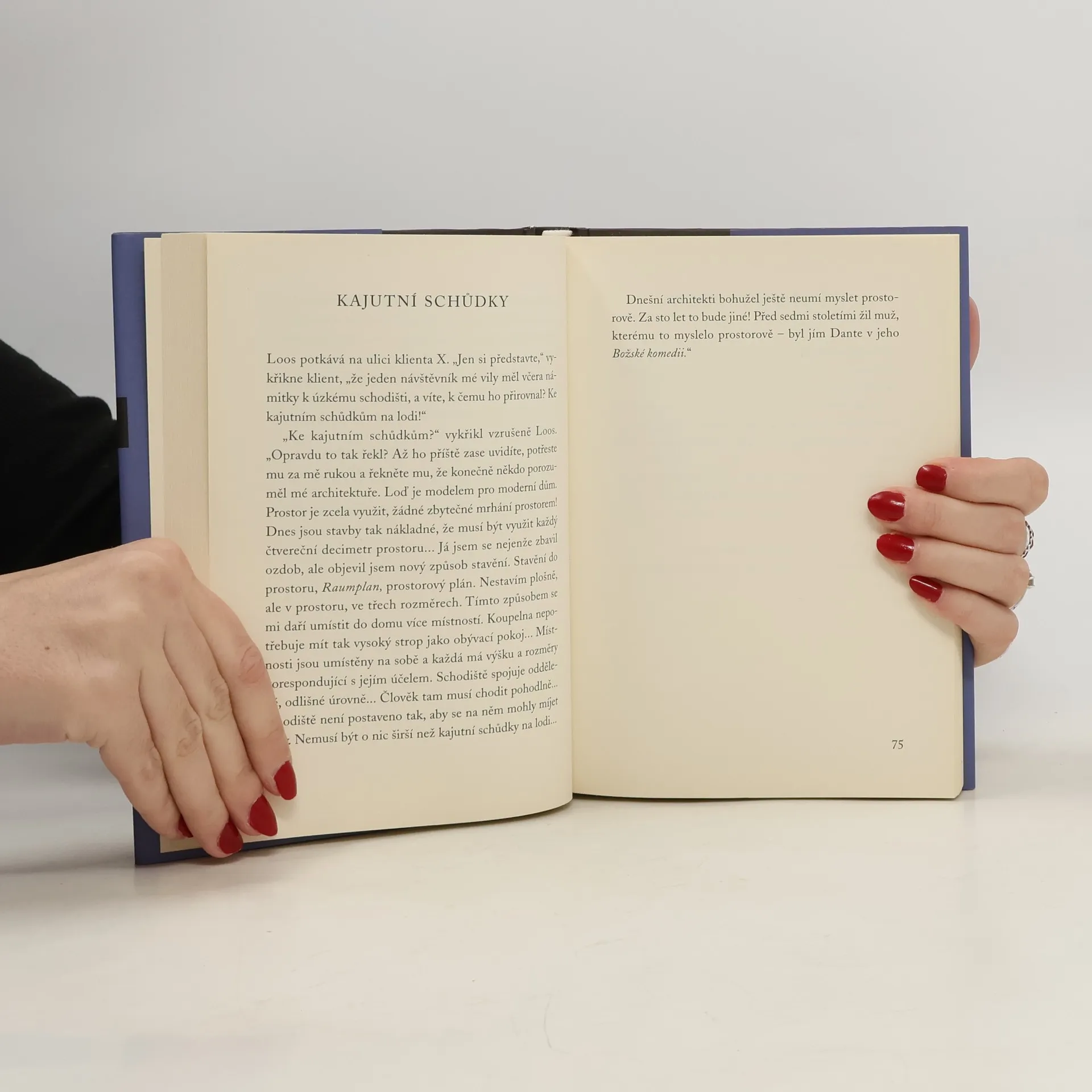 Díky Claire, poslední manželce Adolfa Loose, se můžeme seznámit s Loosem intimněji než ze záznamů znalců, historiků a i z jeho vlastních. Během společného života Claire a Loose slýchala jeho projevy citu, jeho opovržení, jeho aforismy a příběhy. Tato výjimečná kniha nabízí čtenáři možnost pochopit Loose jako člověka a architekta a je určena všem těm, kdo se zajímají o jednoho z největších světových moderních architektů.