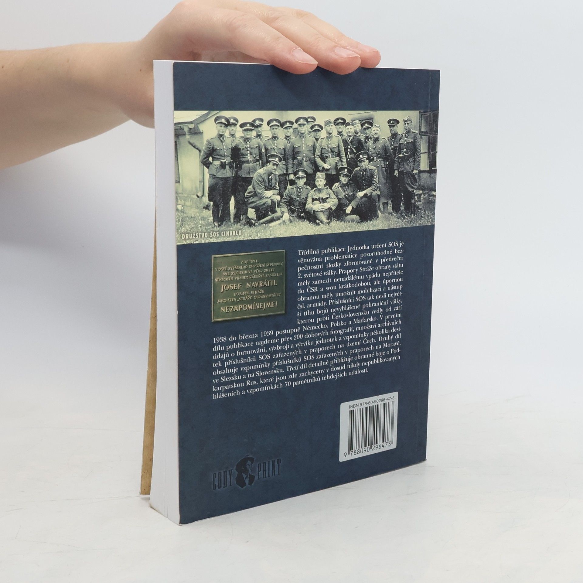 Třídílná publikace Jednotka určení SOS je věnována problematice pozoruhodné bezpečnostní složky zformované v předvečer 2. světové války. Prapory Stráže obrany státu měly zamezit nenadálému vpádu nepřítele do ČSR a svou krátkodobou, ale úpornou obranou měly umožnit mobilizaci a nástup čsl. armády. Příslušníci SOS tak nesli největší tíhu bojů nevyhlášené pohraniční války, kterou proti Československu vedly od září 1938 do března 1939 postupně Německo, Polsko a Maďarsko. V prvním dílu publikace najdeme přes 200 dobových fotografií, množství archivních údajů o formování, výzbroji a výcviku jednotek a vzpomínky několika desítek příslušníků SOS zařazených v praporech na území Čech. Druhý díl obsahuje vzpomínky příslušníků SOS zařazených v praporech na Moravě, ve Slezsku a na Slovensku. Třetí díl detailně přibližuje obranné boje o Podkarpatskou Rus, které jsou zde zachyceny v dosud nikdy nepublikovaných hlášeních a vzpomínkách 70 pamětníků tehdejších událostí.