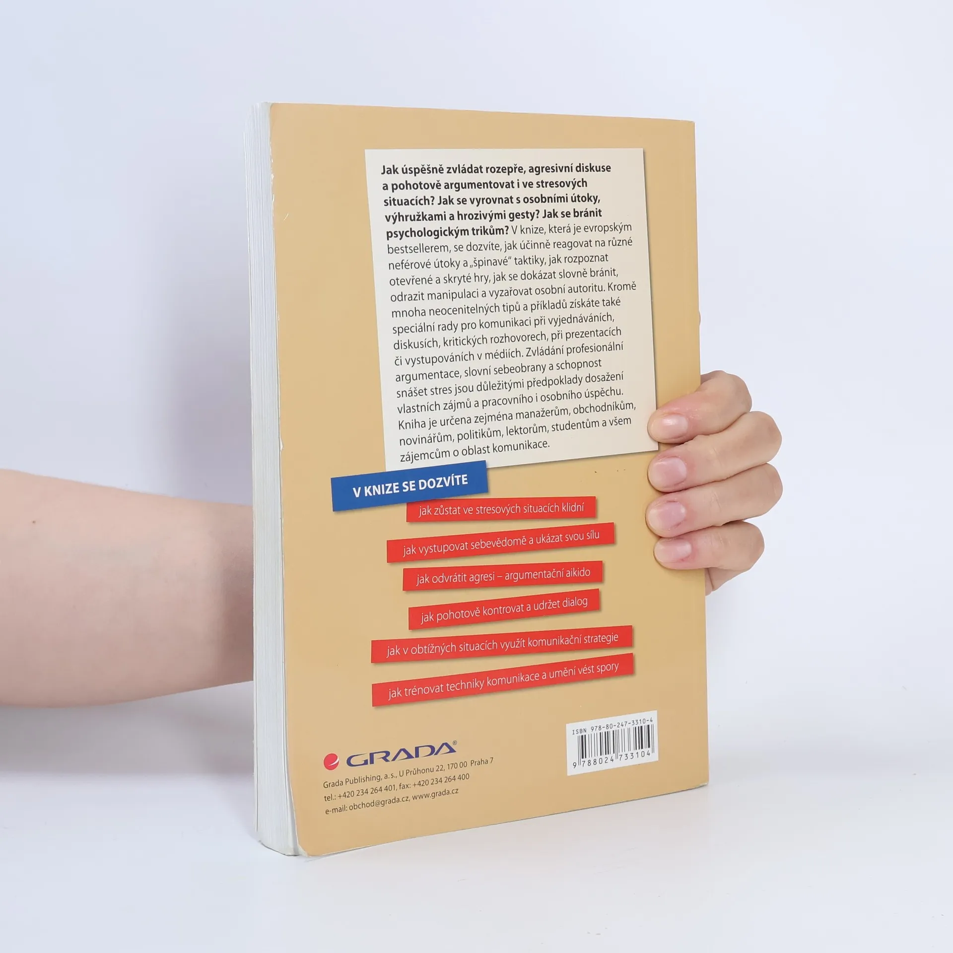 Jak úspěšně zvládat rozepře, agresivní diskuse a pohotově argumentovat i ve stresových situacích? Jak se vyrovnat s osobními útoky, výhružkami a hrozivými gesty? Jak se bránit psychologickým trikům? V knize, která je evropským bestsellerem, se dozvíte, jak účinně reagovat na různé neférové útoky a "špinavé" taktiky, jak rozpoznat otevřené a skryté hry, jak se dokázat slovně bránit, odrazit manipulaci a vyzařovat osobní autoritu. Kromě mnoha neocenitelných tipů a příkladů získáte také speciální rady pro komunikaci při vyjednáváních, diskusích, kritických rozhovorech, při prezentacích či vystupováních v médiích. Zvládání profesionální argumentace, slovní sebeobrany a schopnost snášet stres jsou důležitými předpoklady dosažení vlastních zájmů a pracovního i osobního úspěchu.