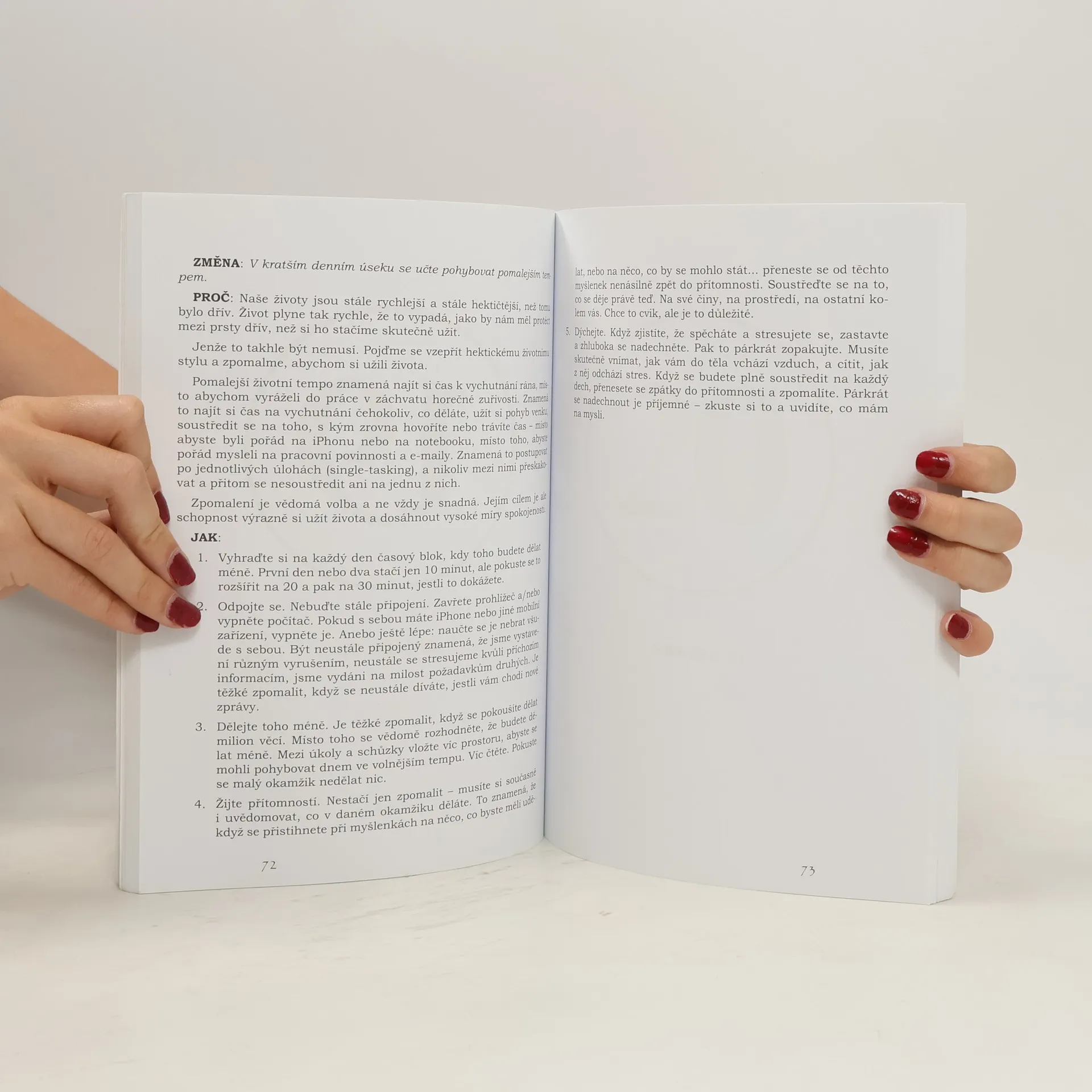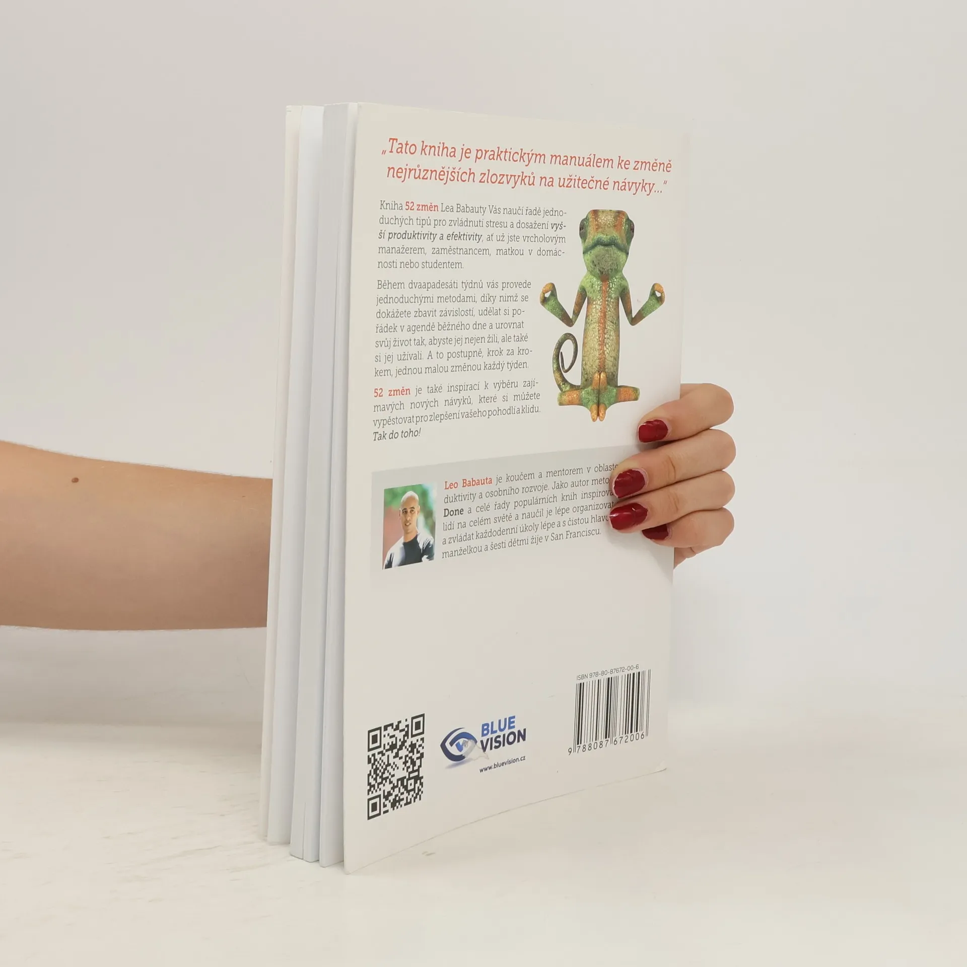 Kniha 52 změn Lea Babauty vás naučí řadě jednoduchých tipů pro zvládnutí stresu a dosažení vyšší produktivity a efektivity, ať už jste vrcholovým manažerem, zaměstnancem, matkou v domácnosti nebo studentem. Během dvaapadesáti týdnů vás provede jednoduchými metodami, díky nimž se dokážete zbavit závislostí, udělat si pořádek v agendě běžného dne a urovnat svůj život tak, abyste jej nejen žili, ale také si jej užívali. A to postupně, krok za krokem, jednou malou změnou každý týden. 52 změn je také k výběru zajímavých nových návyků, které si můžete vypěstovat pro zlepšení vašeho pohodlí a klidu. Tak do toho!