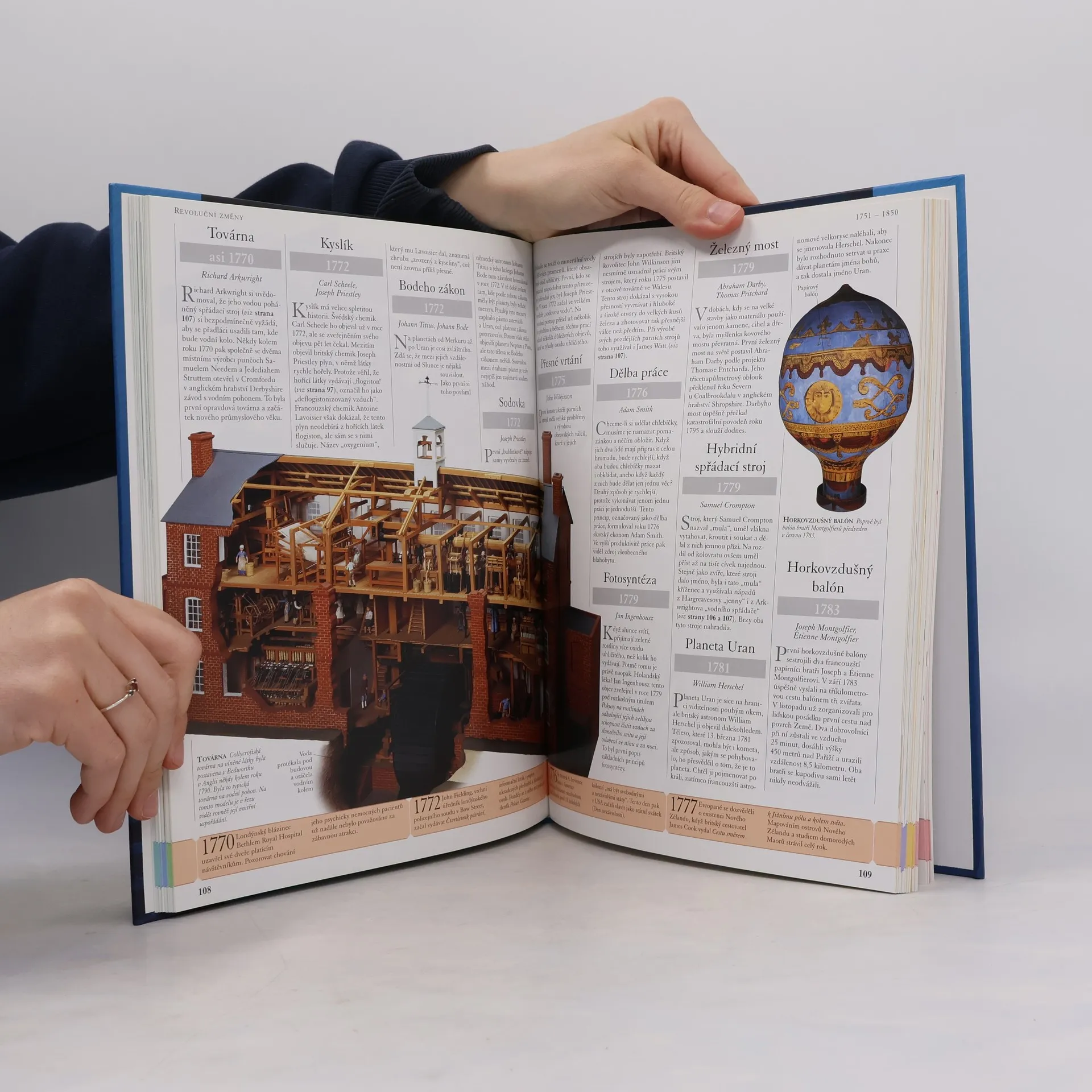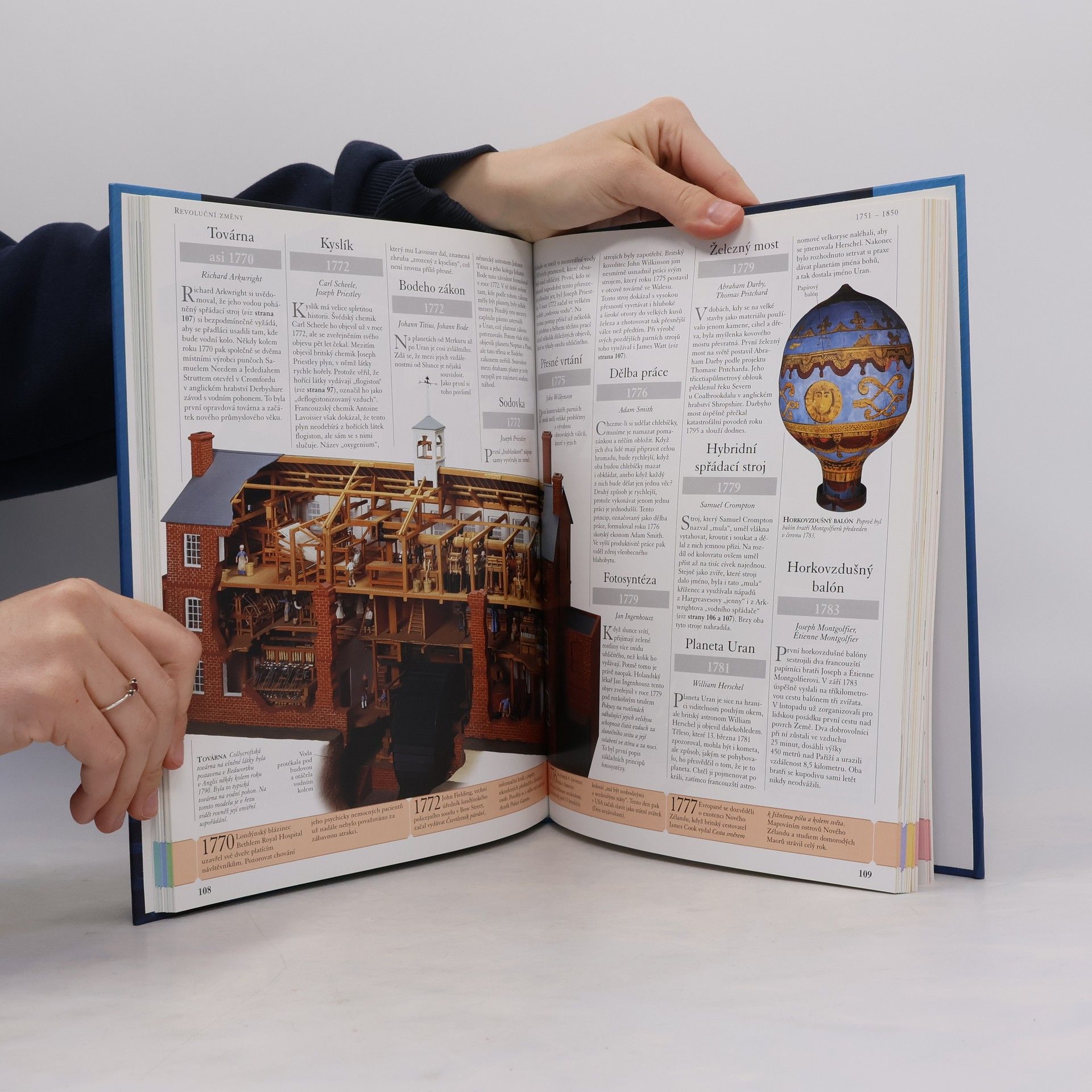 Ilustrovaná encyklopedie 1000 objevů a vynálezů nabízí skutečné příběhy pozoruhodných vynálezů a objevů počínaje okamžikem, kdy pravěký člověk poznal, jak založit oheň, až po nejnovější vývoj v genetickém inženýrství. Krátké odkazy v časovém sledu zároveň poskytují přehled klíčových událostí, které tvořily historické pozadí doby uskutečnění jednotlivých objevů a vynálezů, takže se čtenář v této výpravné publikaci snadno orientuje. Jasný chronologicky uspořádaný text a dvojstrany, jež přibližují život vynálezců a jejich cestu k objevům a vynálezům, doplňují skvělé obrázky a archivní materiály. Tato kniha zkrátka nemůže chybět v knihovničce žádného školáka, ale ani zvídavého dospělého čtenáře.