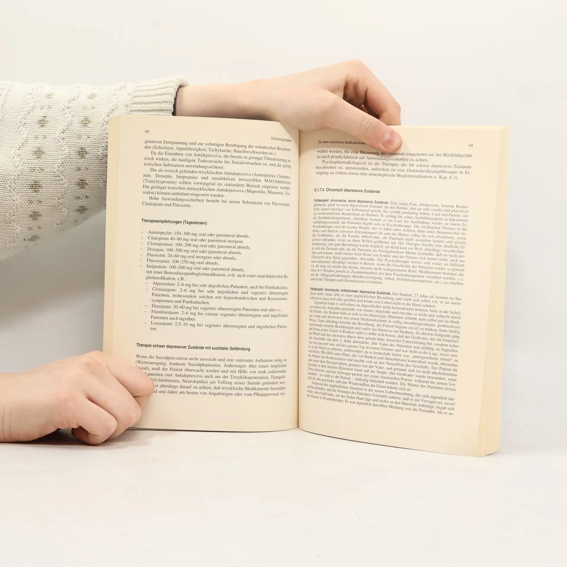 Dieses "klinisch ausgerichtete" Lehrbuch weist den jungen Klinikarzt in die psychopharmakologische Behandlung ein. Es verschweigt dabei nicht, welche Schwierigkeiten im Verlauf einer psychopharmakologischen Therapie entstehen k nnen. Au ergew hnlich viele Fallbeispiele machen das Buch lebendig und f hren von der trockenen Theorie sofort in das t gliche Arbeitsleben des behandelnden Arztes. Es wird praxisnah und nachvollziehbar dargestellt, in welcher Form Psychopharmakologie und Psychotherapie zusammenarbeiten m ssen. Bei der Diagnostik der einzelnen F lle wird jedem auffallen, da keine Schulen und keine psychopharmakologischen Hypothesen vertreten werden, sondern lediglich anwendungsgerechtes Therapieren. Schritt f r Schritt l t sich nachvollziehen, welche Entscheidungen der behandelnde Arzt nach klinischen Gesichtspunkten und therapeutischen berlegungen zu f llen hat.