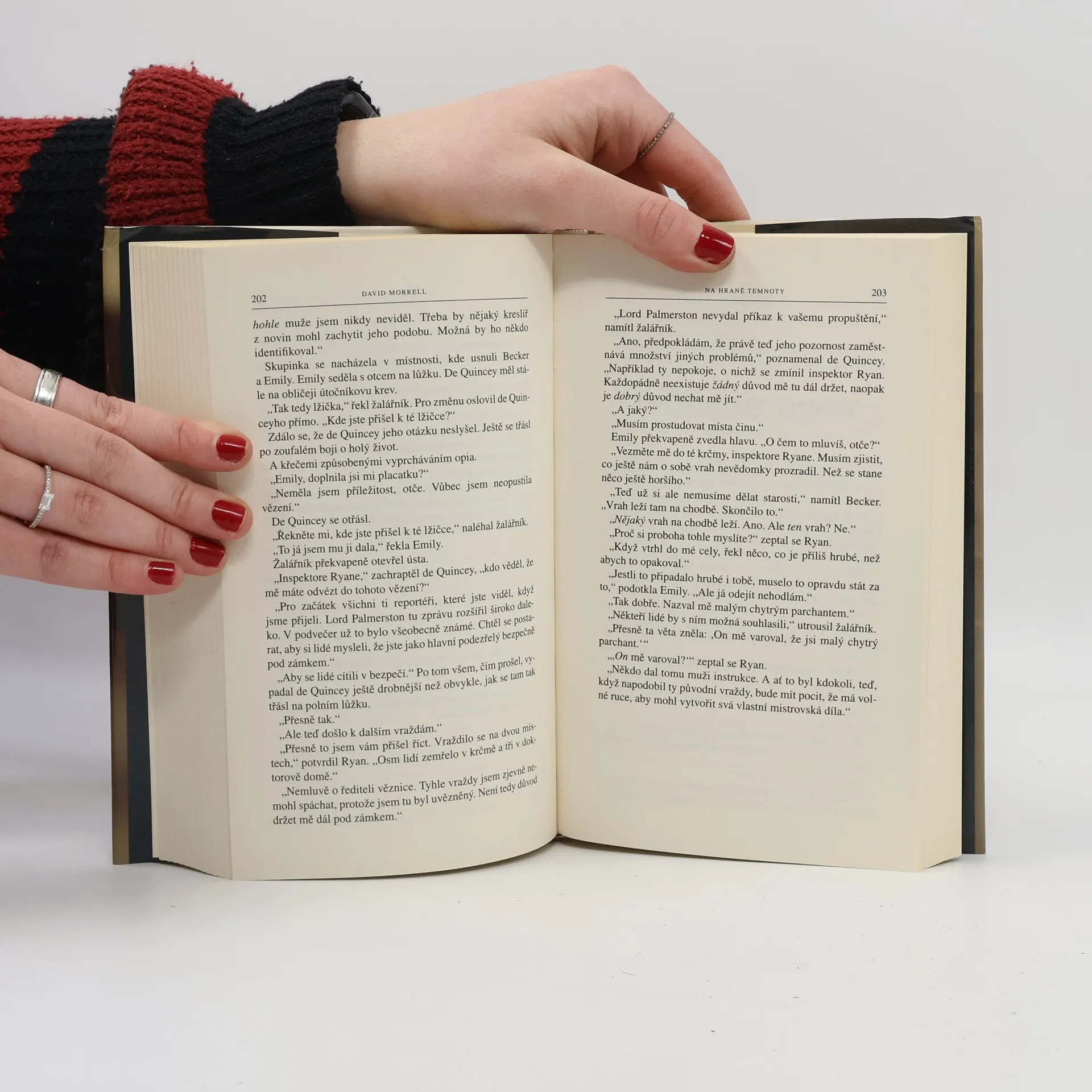 Na londýnském předměstí je hrůzným způsobem vyvražděna celá rodina a způsob se nápadně shoduje s neobjasněnými vraždami z roku 1811. Vrah jako by kopíroval knihu Thomase Quinceyho nazvanou Vražda jako umění. I proto se Quincey sám stane hlavním podezřelým. S pomocí dcery Emily musí odhalit pravdu dřív, než bude prolita další krev…