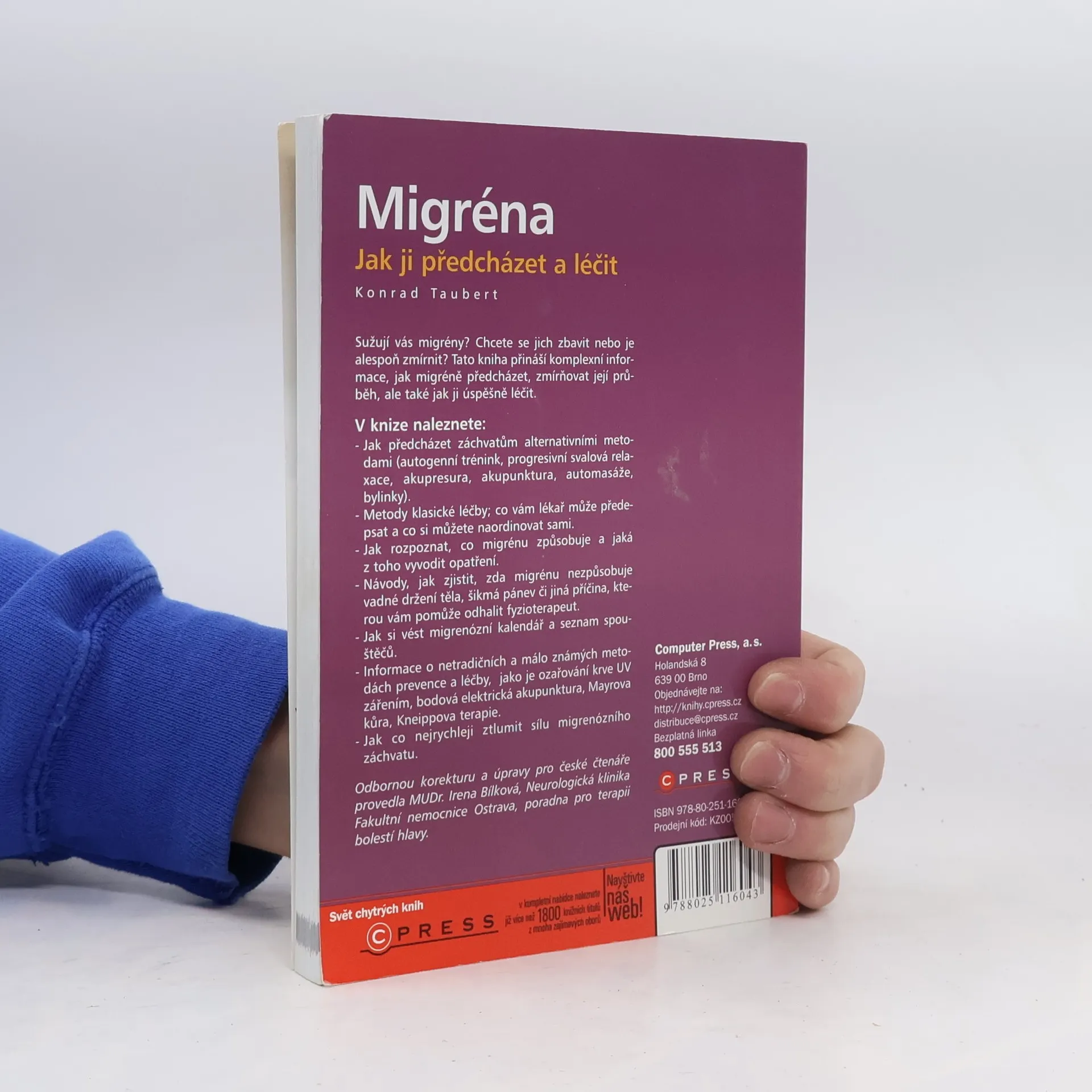 Jak předcházet migréně, zmírňovat její průběh a úspěšně ji léčit! Sužují vás migrény? Chcete se jich zbavit nebo je alespoň zmírnit? Tato kniha přináší komplexní informace, jak migréně předcházet, zmírňovat její průběh, ale také jak ji úspěšně léčit. V knize naleznete: - Jak předcházet záchvatům alternativními metodami (autogenní trénink, progresivní svalová relaxace, akupresura, akupunktura, automasáže, bylinky). - Metody klasické léčby; co vám lékař může předepsat a co si můžete naordinovat sami. - Jak rozpoznat, co migrénu způsobuje a jaká z toho vyvodit opatření. - Návody, jak zjistit, zda migrénu nezpůsobuje vadné držení těla, šikmá pánev či jiná příčina, kterou vám pomůže odhalit fyzioterapeut. - Jak si vést migrenózní kalendář a seznam spouštěčů. - Informace o netradičních a málo známých metodách prevence a léčby, jako je ozařování krve UV zářením, bodová elektrická akupunktura, Mayrova kůra, Kneippova terapie. - Jak co nejrychleji ztlumit sílu migrenózního záchvatu.