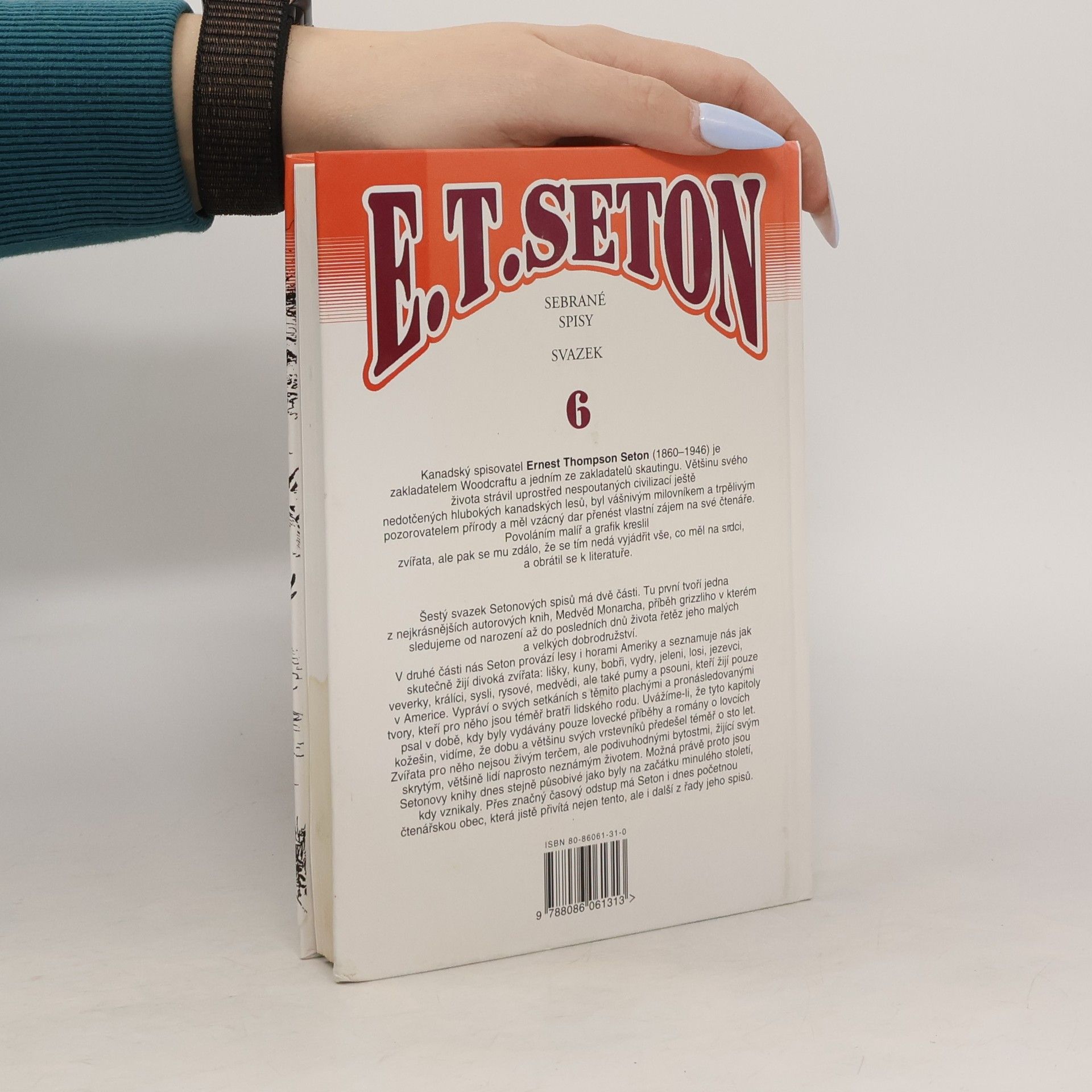 Šestý svazek Setonových spisů má dvě části. Tu první tvoří jedna z nejkrásnějších autorových knih, Medvěd Monarcha - příběh grizzliho, ve kterém sledujeme od narození až do posledních dnů života řetěz jeho malých a velkých dobrodružství. Ve druhé části nás autor provází lesy i horami Ameriky a seznamuje nás, jak skutečně žijí divoká zvířata.
