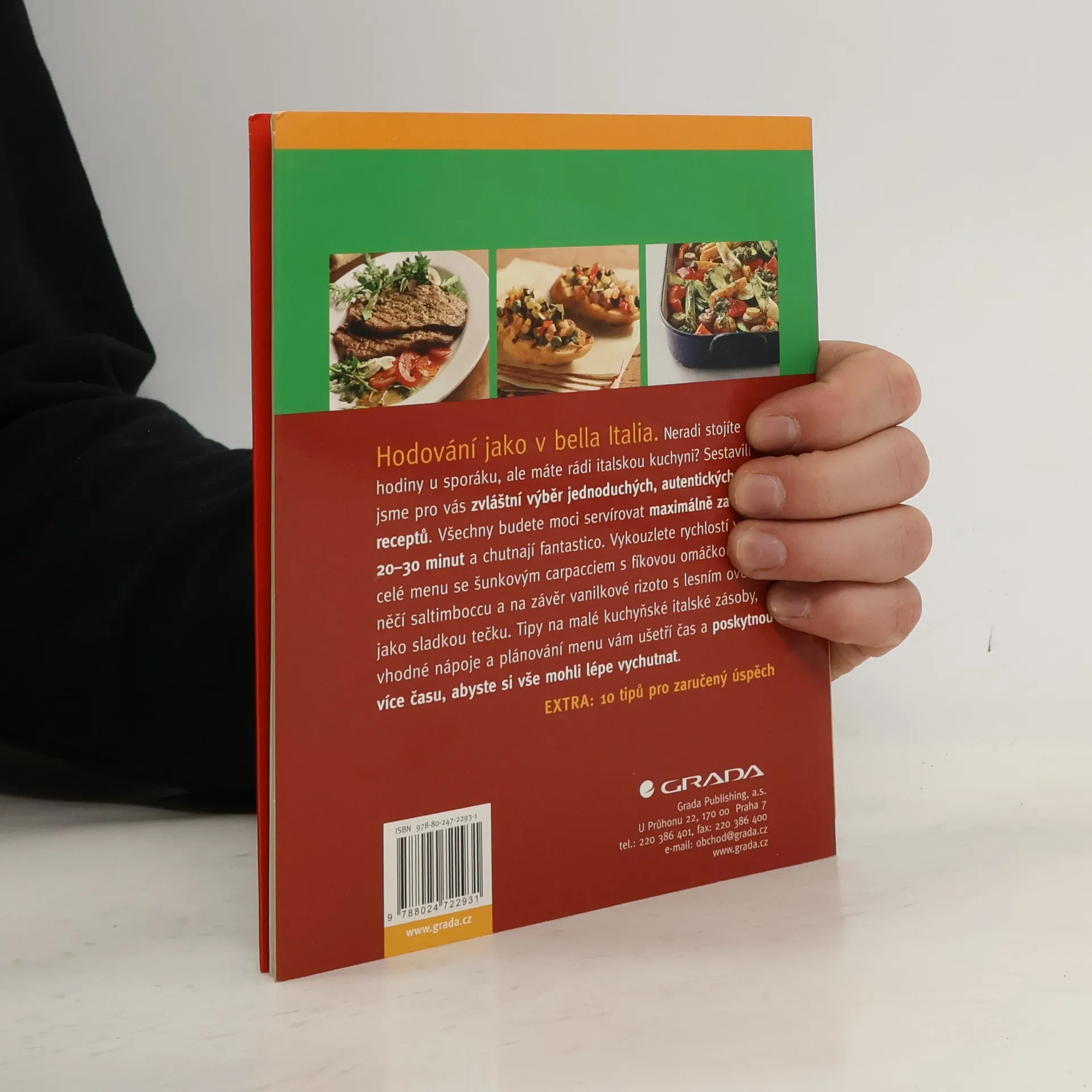 Stolování jako v Itálii Jednoduše, rafinovaně, tak vaří Itálie. Připadá vám to jako protiklad? Ani trochu! Italská kuchyně je jednoduchá, protože umožní přísadám, aby se plně uplatnily a je rafinovaná, protože kombinuje přísady nejlepší kvality tak, že nás vždy překvapí. Rychle hotové, lahodné pro všední den a překvapivé pro návštěvy – to byla kritéria pro výběr moderních italských jídel. Vznikla z toho sbírka receptů na nádherně barevné saláty, lákavé těstoviny a pokrmy z rýže, které se velmi dobře hodí pro všední dny, ale nabízí i celá rafinovaná menu. Vykouzlete během okamžiku lahodné jídlo pro dva nebo pro rodinu a nechte se našimi návrhy menu svést a hýčkejte své milé hosty. Italskou kuchyni milují všichni! Proto vám přejeme: Buon appetito!