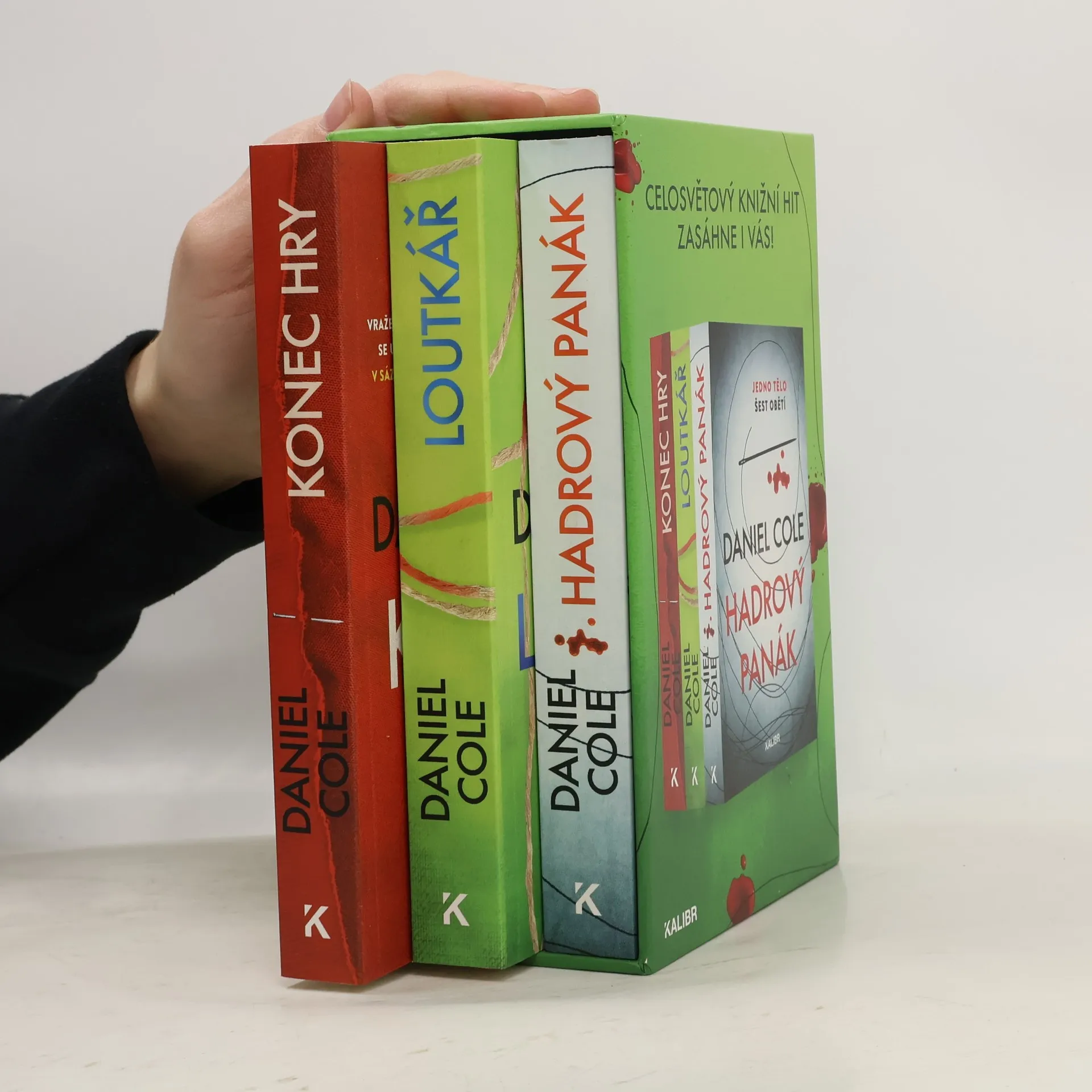 Jedno tělo, šest obětí. Vrah, který nemá co ztratit. V sázce je vše... Trilogie krimithrillerů, které šokovaly, vyděsily a napnuly čtenáře po celém světě, nyní speciálně v dárkovém boxu. Začalo to hrůzným Hadrovým panákem (2017), případem mrtvoly sešité z částí různých těl a nalezené v jednom londýnském bytě. Debut Daniela Colea vyšel ve více než třiceti jazycích a ve všech zemích atakoval nejvyšší příčky žebříčku bestsellerů. Pokračovalo to neméně úspěšným a brutálním Loutkářem (2018) o sérii nezvyklých vražd, jejichž oběti mají na hrudi vyřezané slovo „NÁVNADA“ a domnělí pachatelé slovo „LOUTKA“. A vyvrcholilo to Koncem hry (2019), kde se jedinečný vražedný kruh případů týmu kontroverzního detektiva Williama „Wolfa“ Fawkese a jeho kolegyně Emily Baxterové originálně uzavřel. Prozatím.