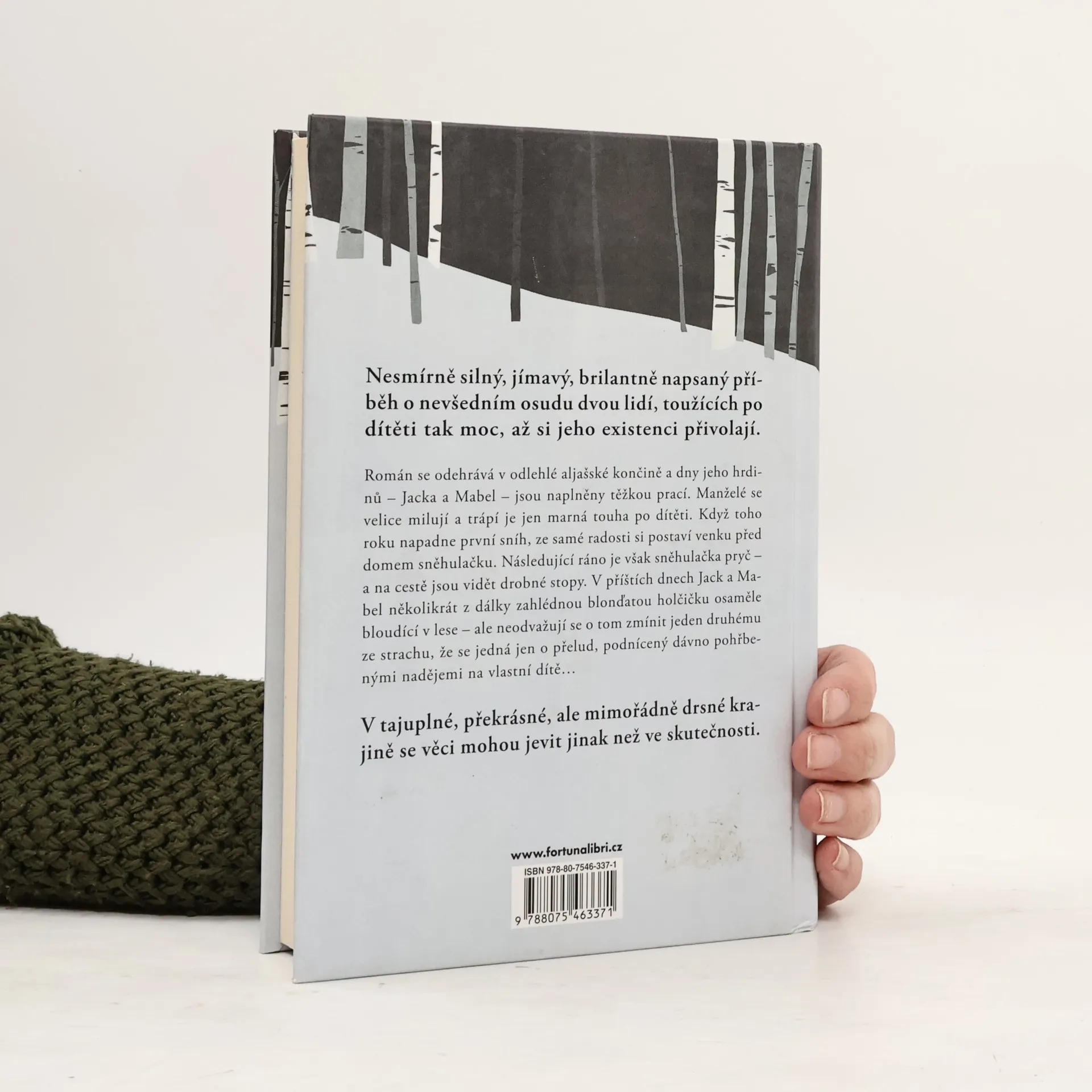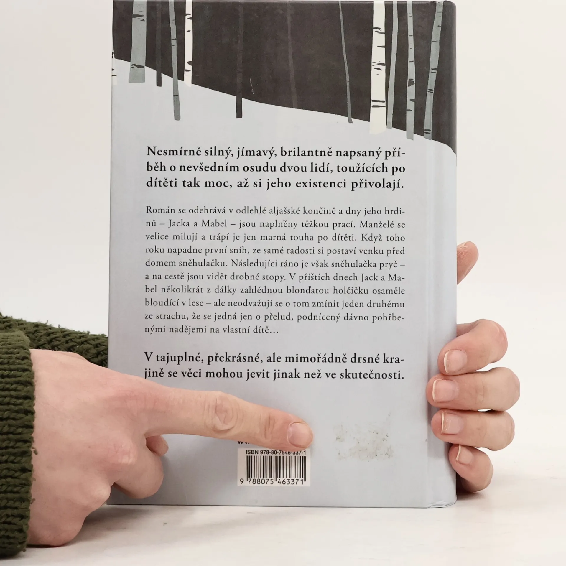 Nesmírně silný, jímavý, brilantně napsaný příběh o nevšedním osudu dvou lidí, toužících po dítěti tak moc, až si jeho existenci přivolají. Román se odehrává v odlehlé aljašské končině a dny jeho hrdinů – Jacka a Mabel – jsou naplněny těžkou prací. Manželé se velice milují a trápí je jen marná touha po dítěti. Když toho roku napadne první sníh, ze samé radosti si postaví venku před domem sněhulačku. Následující ráno je však sněhulačka pryč – a na cestě jsou vidět drobné stopy. V příštích dnech Jack a Mabel několikrát z dálky zahlédnou blonďatou holčičku osaměle bloudící v lese – ale neodvažují se o tom zmínit jeden druhému ze strachu, že se jedná jen o přelud, podnícený dávno pohřbenými nadějemi na vlastní dítě… V tajuplné, překrásné, ale mimořádně drsné krajině se věci mohou jevit jinak než ve skutečnosti.