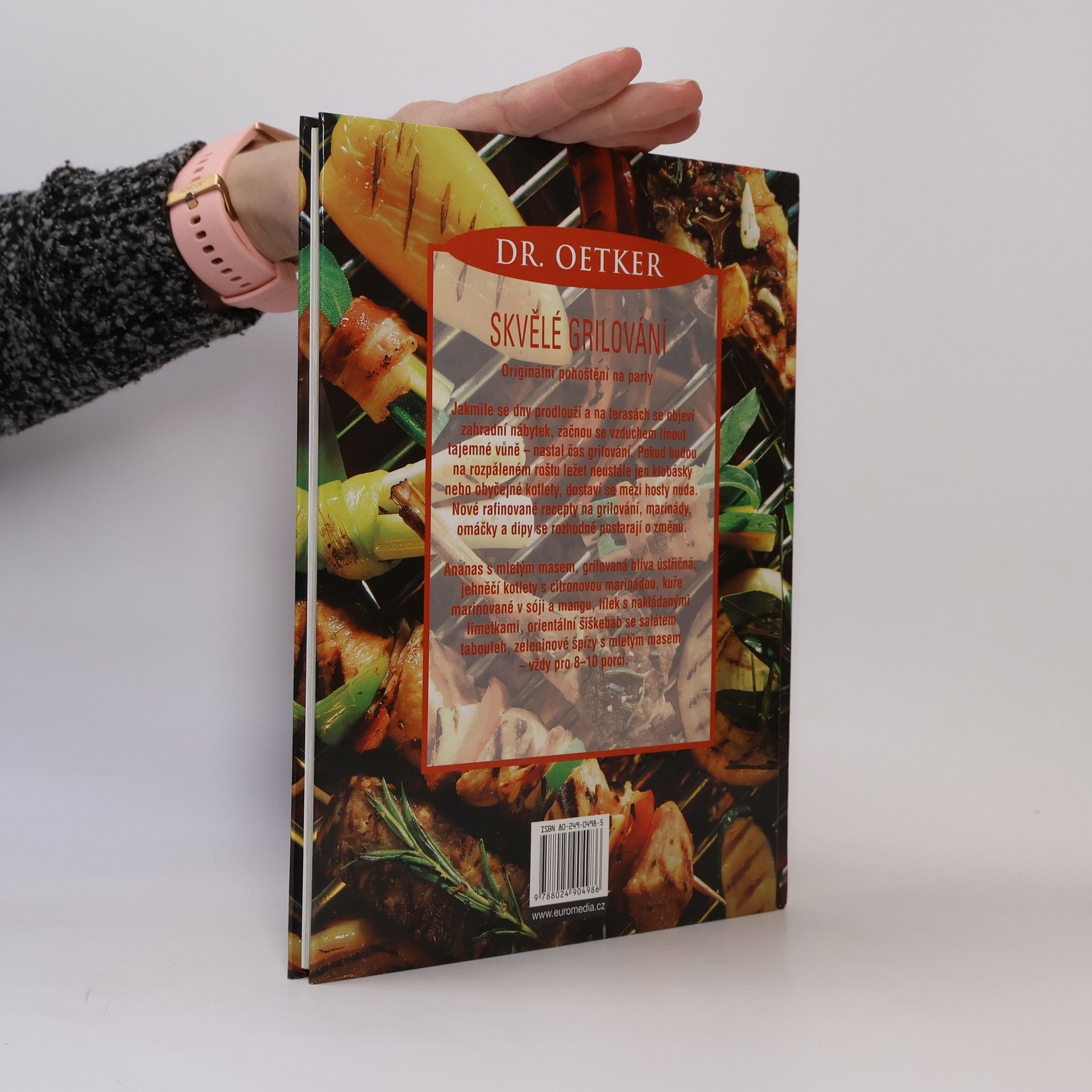 Originální pohoštění na party Jakmile se dny prodlouží a na terasách se objeví zahradní nábytek, začnou se vzduchem linout tajemné vůně - nastal čas grilování. Pokud budou na rozpáleném roštu ležet neustále jen klobásky nebo obyčejné kotlety, dostaví se mezi hosty nuda. Nové rafinované recepty na grilování, marinády, omáčky a dipy se rozhodně postarají o změnu. Ananas s mletým masem, grilovaná hlíva ústřičná, jehněčí kotlety s citronovou marinádou, kuře marinované v sóji a mangu, lilek s nakládanými limetkami, orientální šiškebab se salátem tabouleh, zeleninové špízy s mletým masem - vždy pro 8-10 porcí.