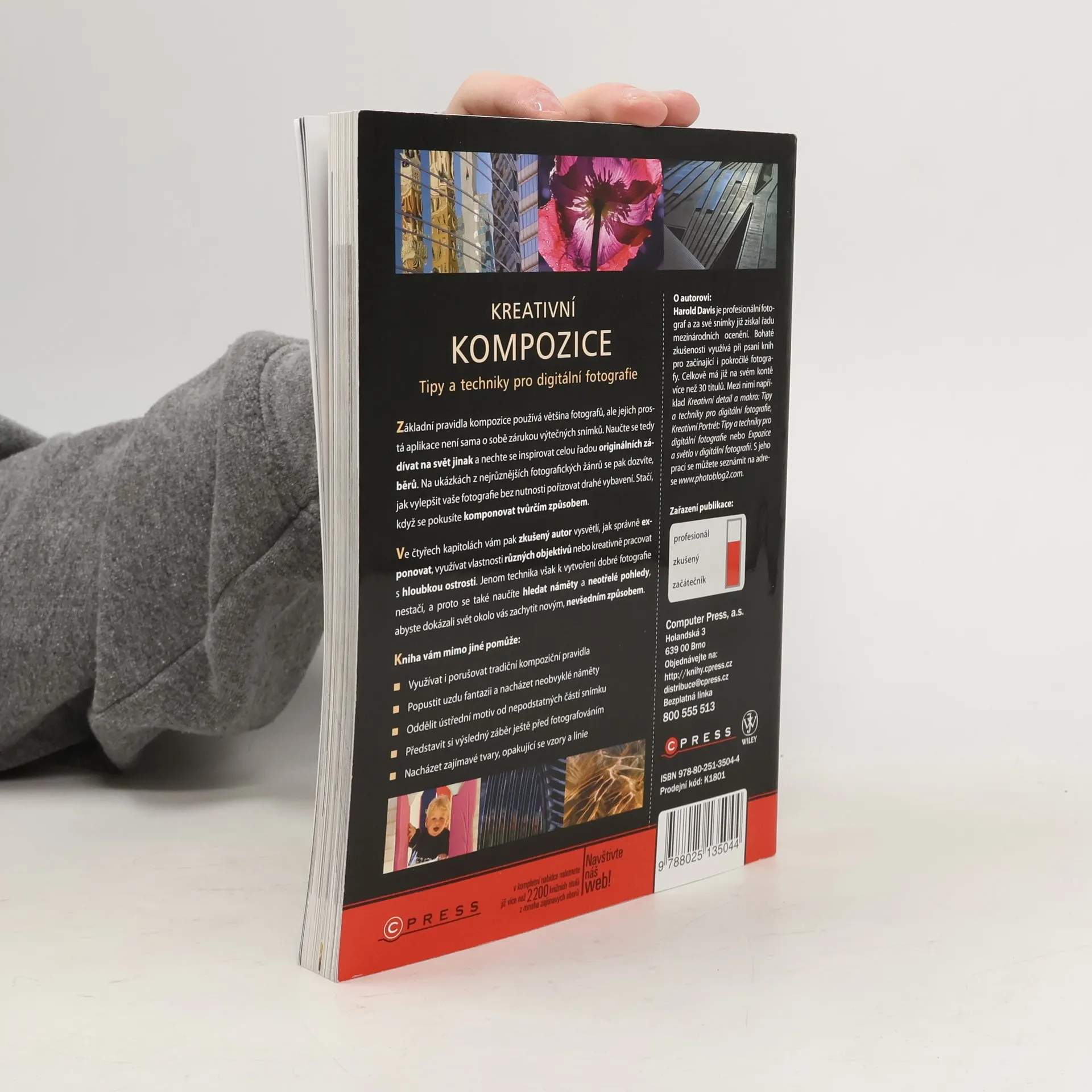 Základní pravidla kompozice používá většina fotografů, ale jejich prostá aplikace není sama o sobě zárukou výtečných snímků. Naučte se tedy dívat na svět jinak a nechte se inspirovat ceou řadou originálních záběrů. Na ukázkách z nejrůznějších fotografických žánrů se pak dozvíte, jak vylepšit vaše fotografie bez nutnosti pořizovat drahé vybavení. Stačí, když se pokusíte komponovat tvůrčím způsobem Ve čtyřech kapitolách vám pak zkušený autor vysvětlí, jak správně exponovat, využívat vlastnosti různých objektivů nebo kreativně pracovat s hloubkou ostrosti. Jenom technika však k vytvoření dobré fotografie nestačí, a proto se také naučíte hledat náměty a neotřelé pohledy, abyste dokázali svět okolo vás zachytit novým, nevšedním způsobem.