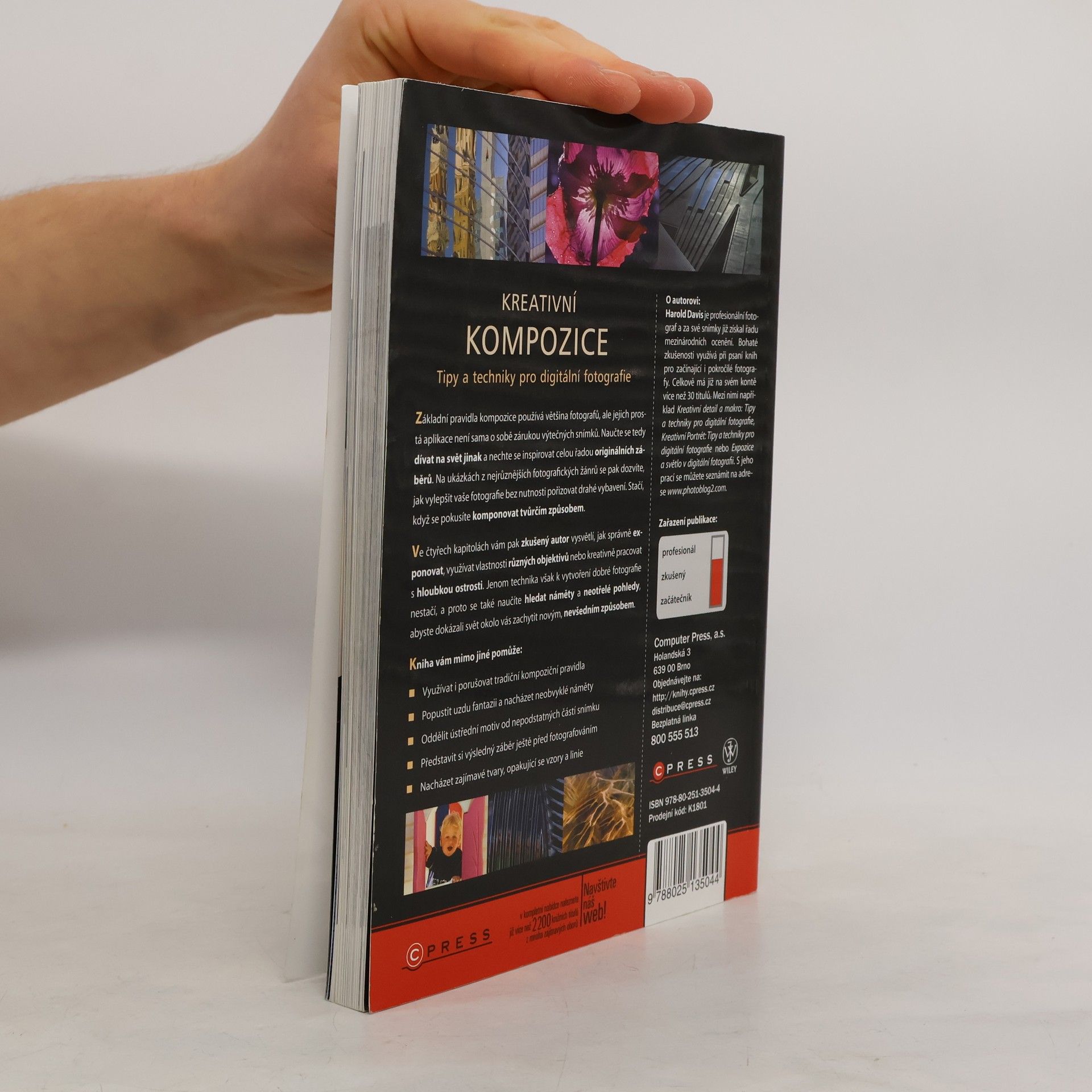Základní pravidla kompozice používá většina fotografů, ale jejich prostá aplikace není sama o sobě zárukou výtečných snímků. Naučte se tedy dívat na svět jinak a nechte se inspirovat ceou řadou originálních záběrů. Na ukázkách z nejrůznějších fotografických žánrů se pak dozvíte, jak vylepšit vaše fotografie bez nutnosti pořizovat drahé vybavení. Stačí, když se pokusíte komponovat tvůrčím způsobem Ve čtyřech kapitolách vám pak zkušený autor vysvětlí, jak správně exponovat, využívat vlastnosti různých objektivů nebo kreativně pracovat s hloubkou ostrosti. Jenom technika však k vytvoření dobré fotografie nestačí, a proto se také naučíte hledat náměty a neotřelé pohledy, abyste dokázali svět okolo vás zachytit novým, nevšedním způsobem.