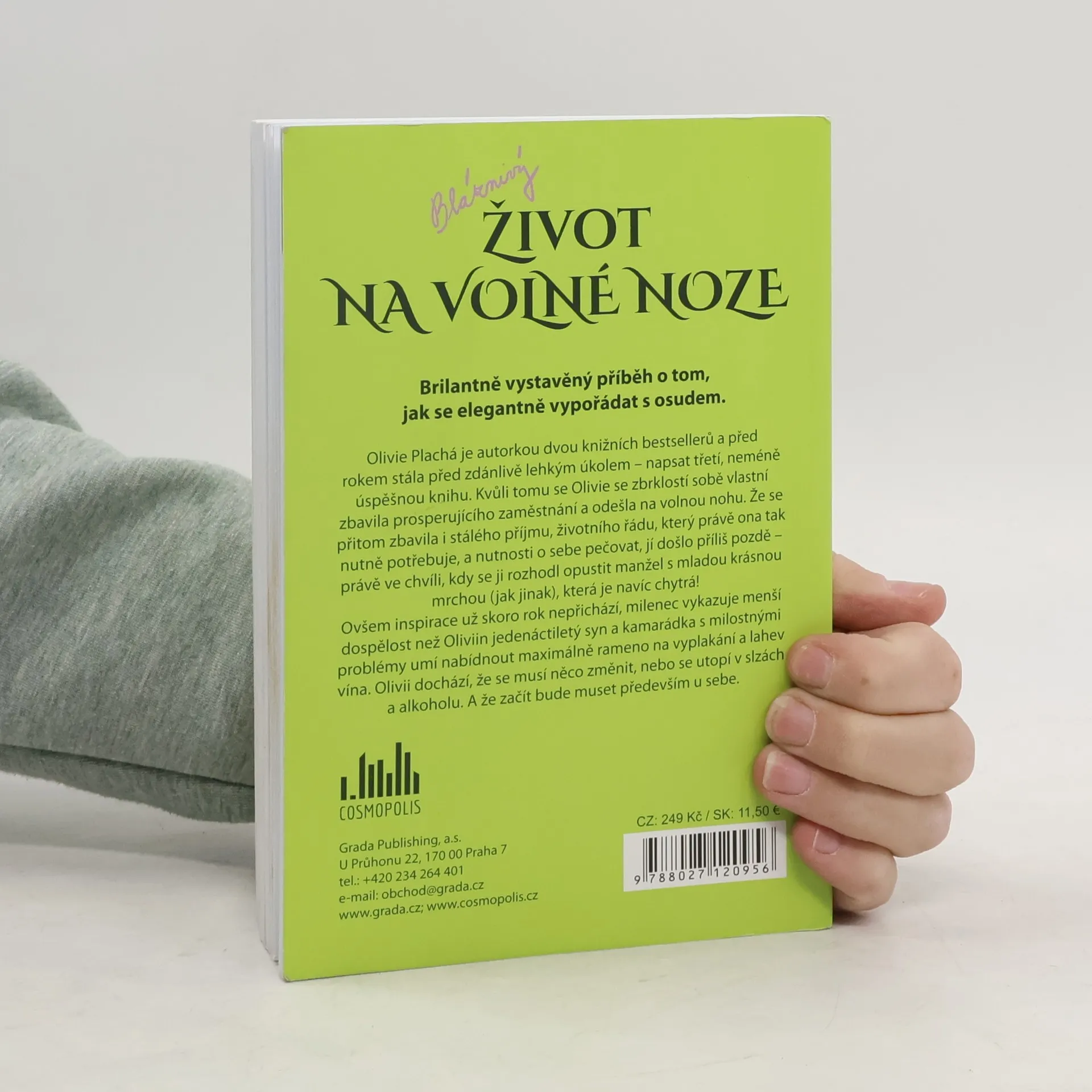 Brilantně vystavěný příběh o tom, jak se elegantně vypořádat s osudem. Olivie Plachá je autorkou dvou knižních bestsellerů a před rokem stála před zdánlivě lehkým úkolem – napsat třetí, neméně úspěšnou knihu. Kvůli tomu se Olivie se zbrklostí sobě vlastní zbavila prosperujícího zaměstnání a odešla na volnou nohu. Že se přitom zbavila i stálého příjmu, životního řádu, který právě ona tak nutně potřebuje, a nutnosti o sebe pečovat, jí došlo příliš pozdě – právě ve chvíli, kdy se ji rozhodl opustit manžel s mladou krásnou mrchou (jak jinak), která je navíc chytrá! Ovšem inspirace už skoro rok nepřichází, milenec vykazuje menší dospělost než Oliviin jedenáctiletý syn a kamarádka s milostnými problémy umí nabídnout maximálně rameno na vyplakání a lahev vína. Olivii dochází, že se musí něco změnit, nebo se utopí v slzách a alkoholu. A že začít bude muset především u sebe.