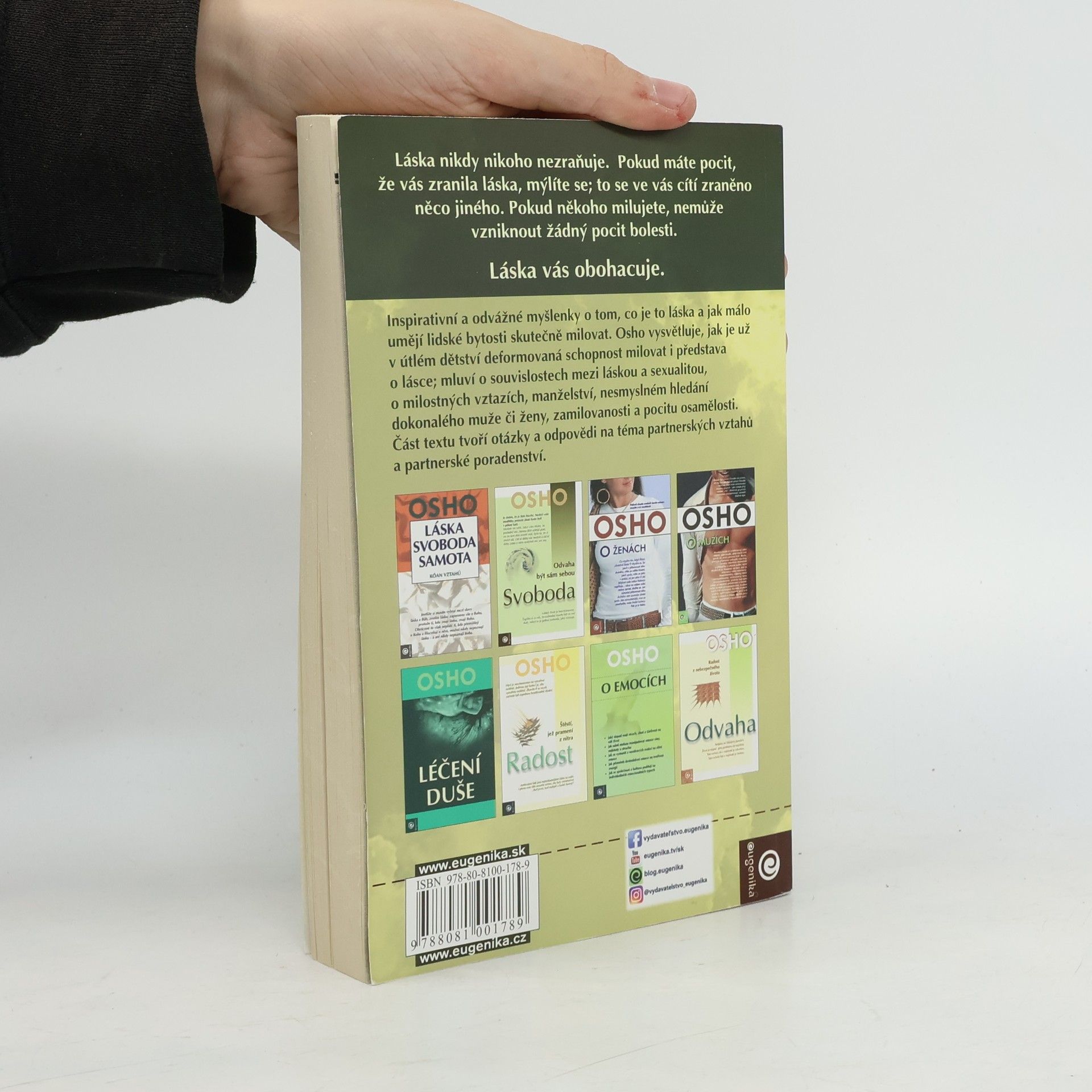 Inspirativní a odvážné myšlenky o tom, co je to láska a jak málo umějí lidské bytosti skutečně milovat. Osho vysvětluje, jak je už v útlém dětství deformovaná schopnost milovat i představa o lásce; mluví o souvislostech mezi láskou a sexualitou, o milostných vztazích, manželství, nesmyslném hledání dokonalého muže či ženy, zamilovanosti a pocitu osamělosti. Část textu tvoří otázky a odpovědi na téma partnerských vztahů a partnerské poradenství.