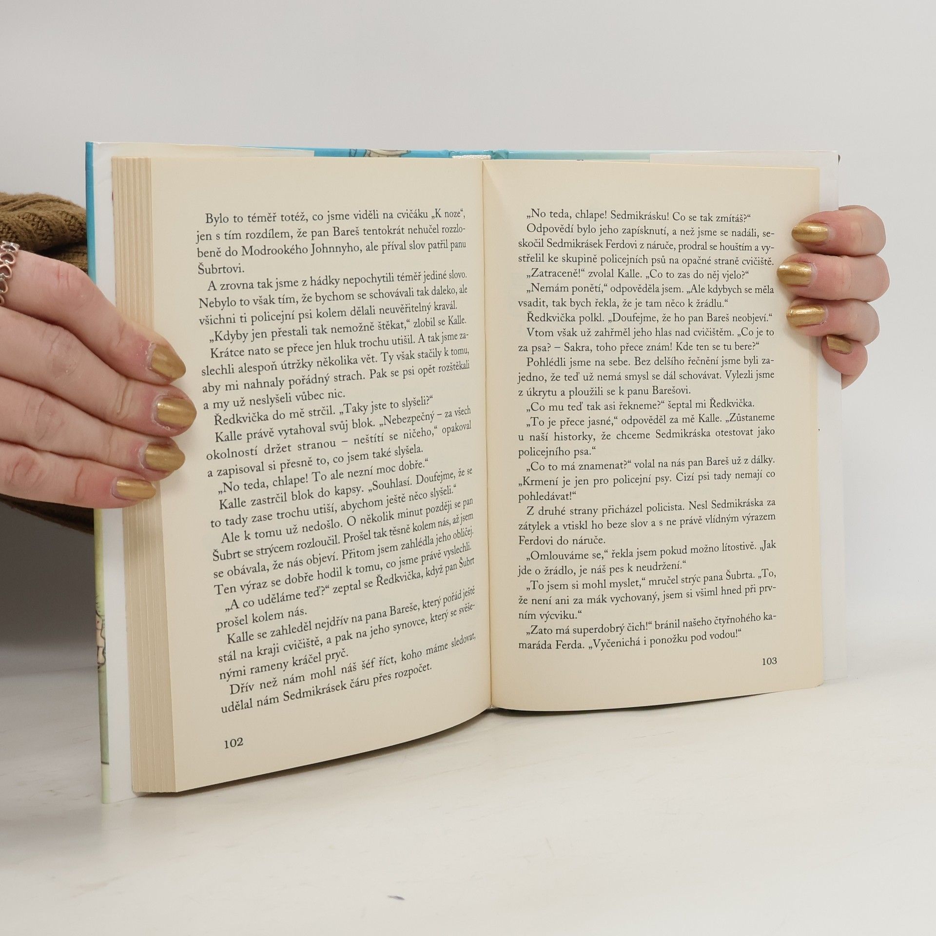 Z pronásledovatelů se stávají pronásledovaní. Kalle, Ferda, Štefka a Ředkvička objeví na trhu stánek se značkovými šaty, které se tam ale prodávají za méně než polovinu obvyklé ceny. Kalle hned zavětří nový případ! A protože pes slavných dětských detektivů Sedmikrásek má konečně začít chodit do psí školy, Kalle tentokrát věří, že jim pes v pátrání doopravdy pomůže. Ale to se hodně přepočítal. Nejen že Sedmikrásek dožene psího cvičitele k zuřivosti, ale pak zcela nečekaně zmizí. A Kallovi a jeho kamarádům jsou náhle v patách prodavači z podezřelého stánku. Z pronásledovatelů se stávají pronásledovaní a čtyři kamarádi zažívají se Sedmikráskem dobrodružství, o kterém se jim doopravdy ani nesnilo. Další román ze slavné série zaujme rychlým spádem, dobrodružnou zápletkou a nečekanými humornými zvraty, které rozesmějí malé i velké čtenáře.