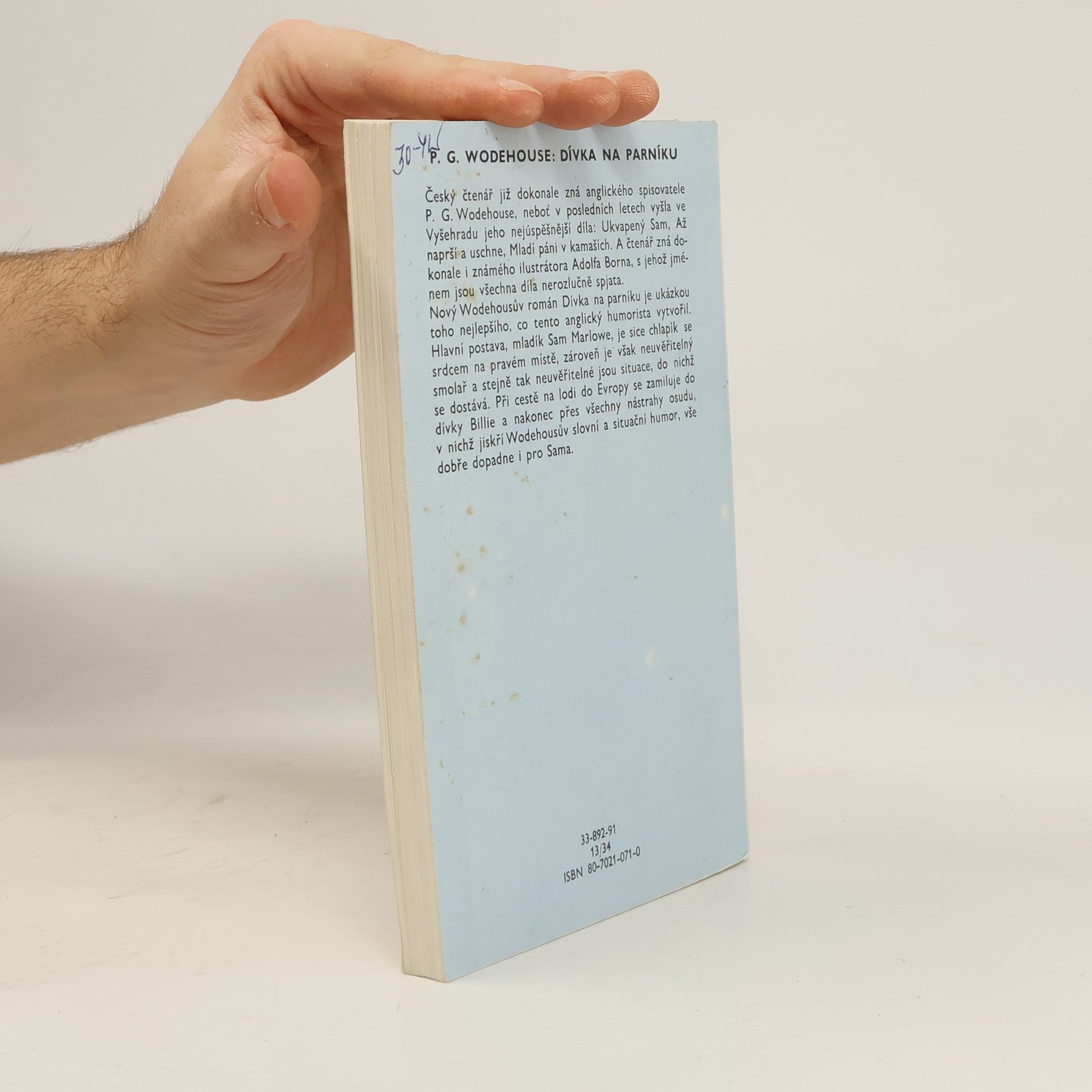 Hlavní postava, mladík Sam Marlowe, je sice chlapík se srdcem na pravém místě, zároveň je však neuvěřitelný smolař a stejně tak neuvěřitelné jsou situace, do nichž se dostává. Při cestě na lodi do Evropy se zamiluje do dívky Billie a nakonec přes všechny nástrahy osudu, v nichž jiskří Wodehousův slovní a situační humor, vše dobře dopadne i pro Sama. Ilustrace na obálce je opět dílem Adolfa Borna, s jehož jménem jsou všechny Wodehouseovy knížky vydané ve Vyšehradu nerozlučně spjaty.
